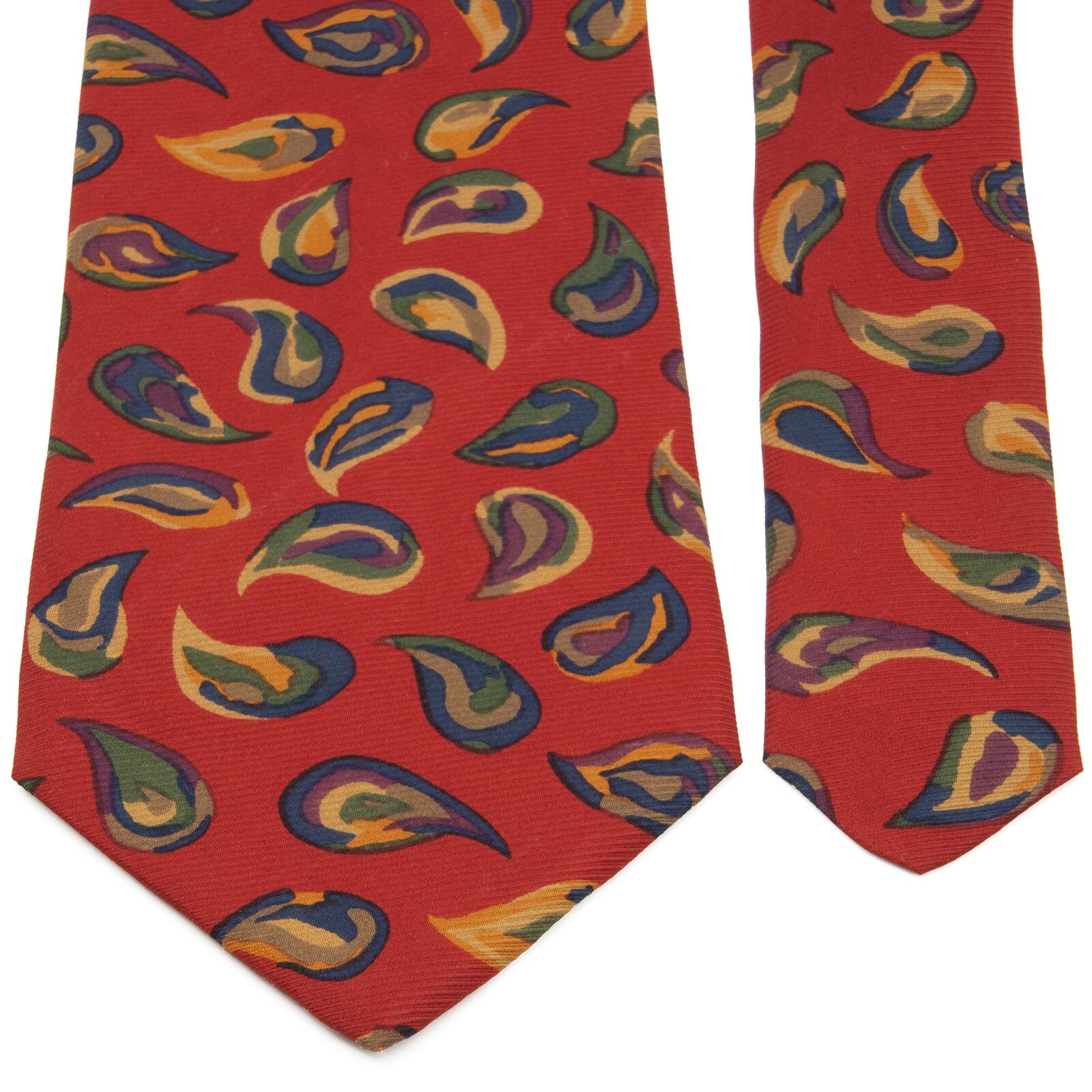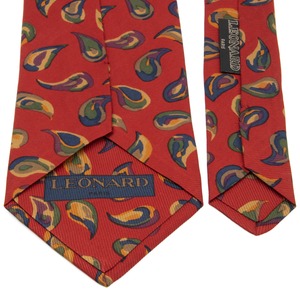 こちらは、情熱的なレッドにペイズリーが踊るような、レオナールのネクタイでございます。