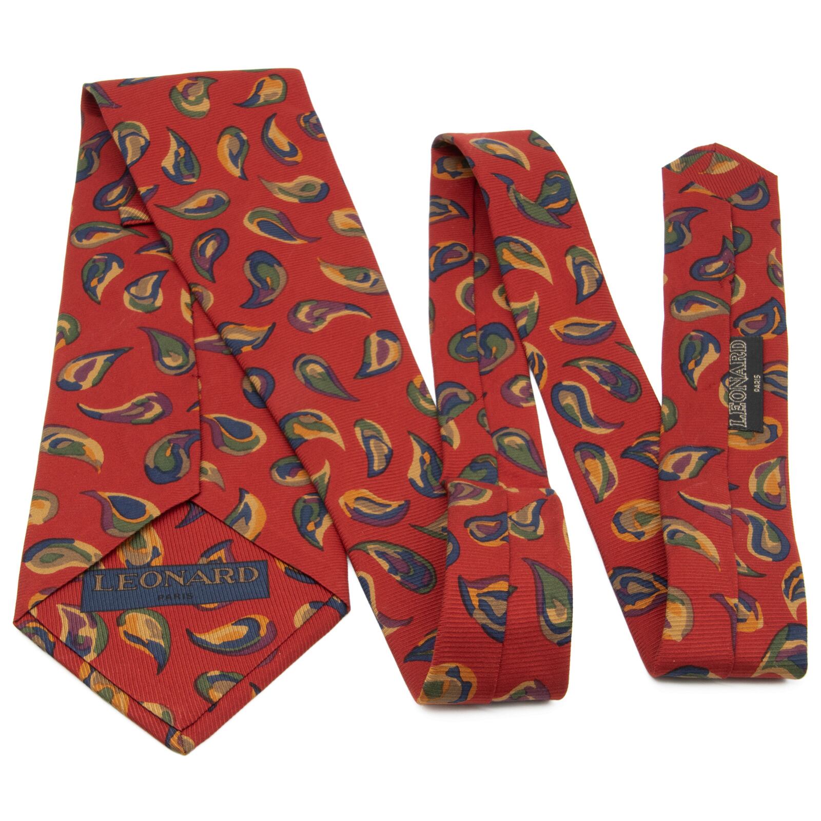送料無料 レオナール ネクタイ レギュラータイ 新品 シルク 赤 ネイビーブルー 緑 オレンジ 紫 ペイズリー ブランド イタリア製 綺麗 N745