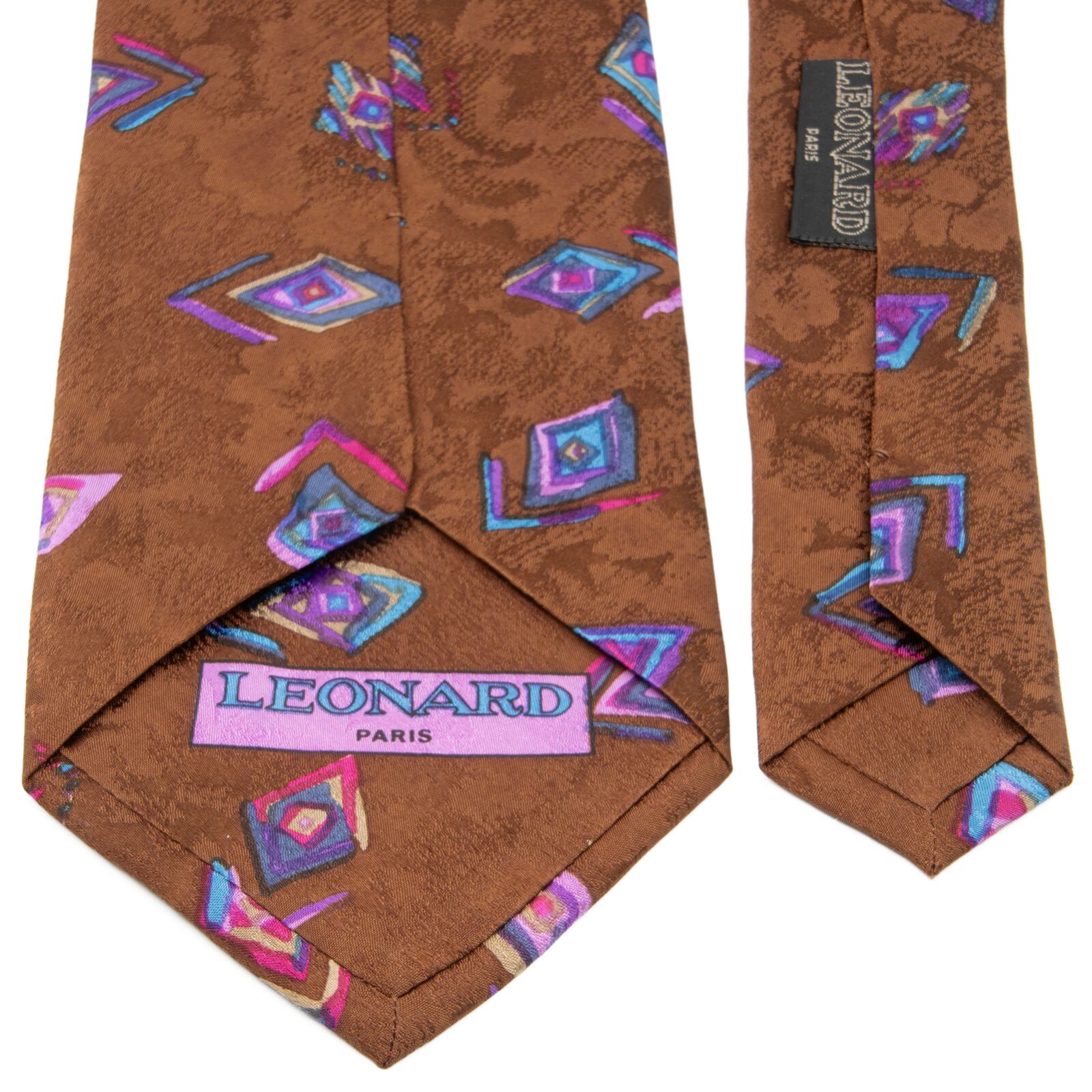送料無料 レオナール ネクタイ レギュラータイ 新品 シルク 茶色 ブラウン 青 紫 ピンク ベージュ 四角 マーク ブランド イタリア製 N769