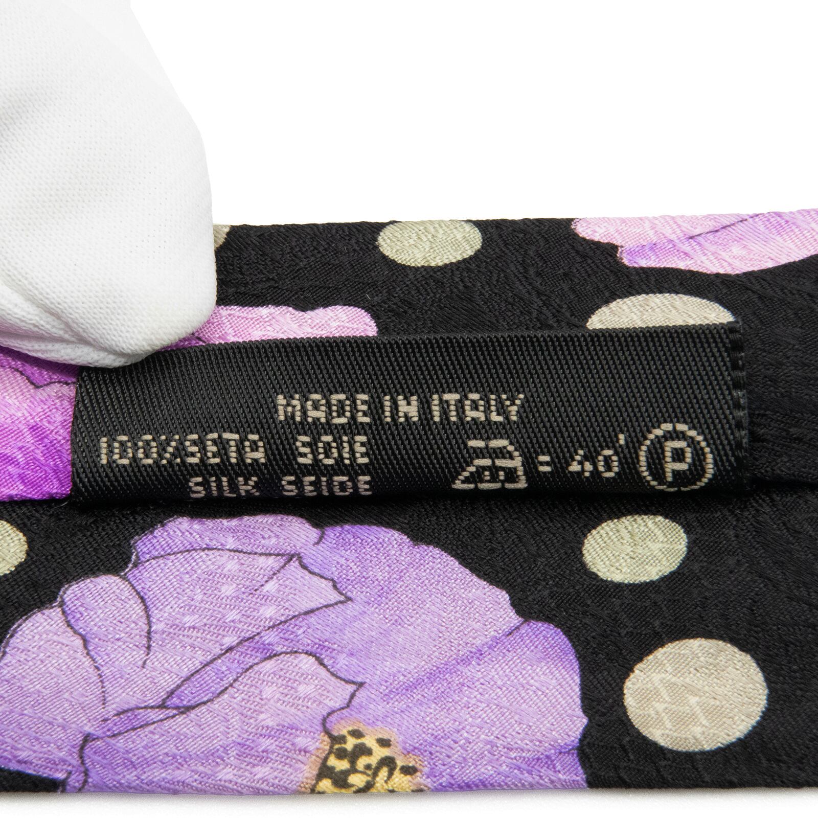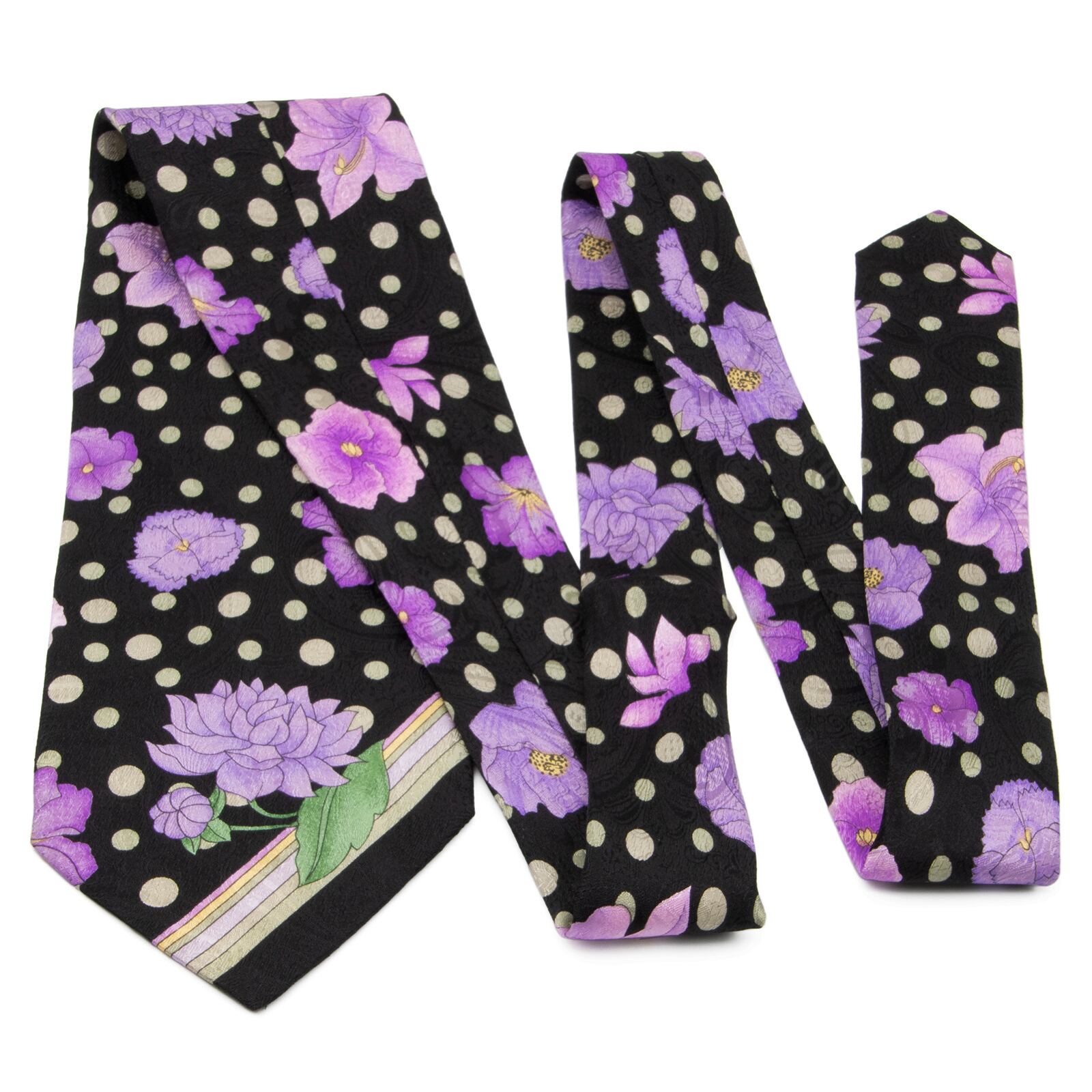 艶のあるブラックの地に、高貴なパープルの花々とアイボリーのドットが美しく映える一本でございます。