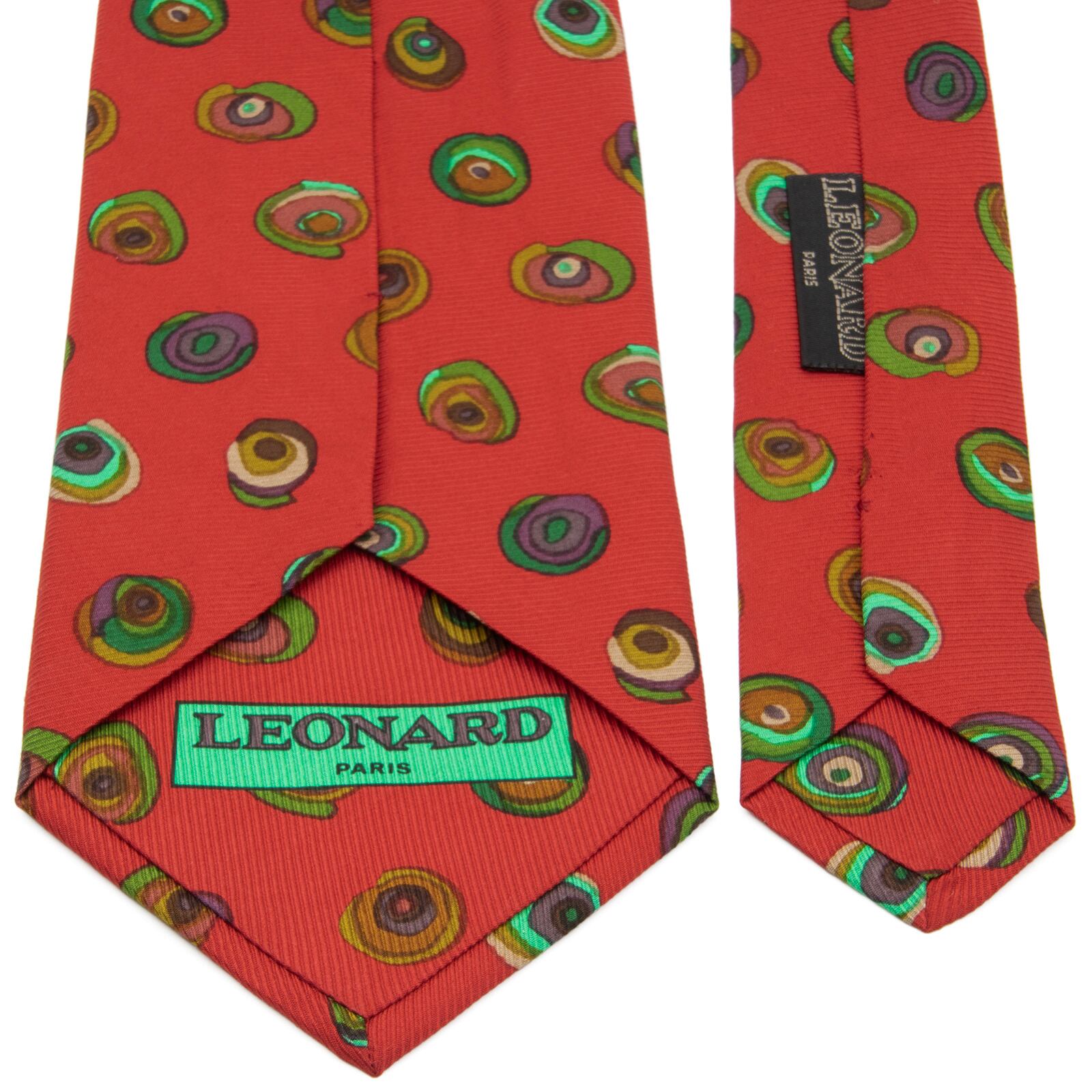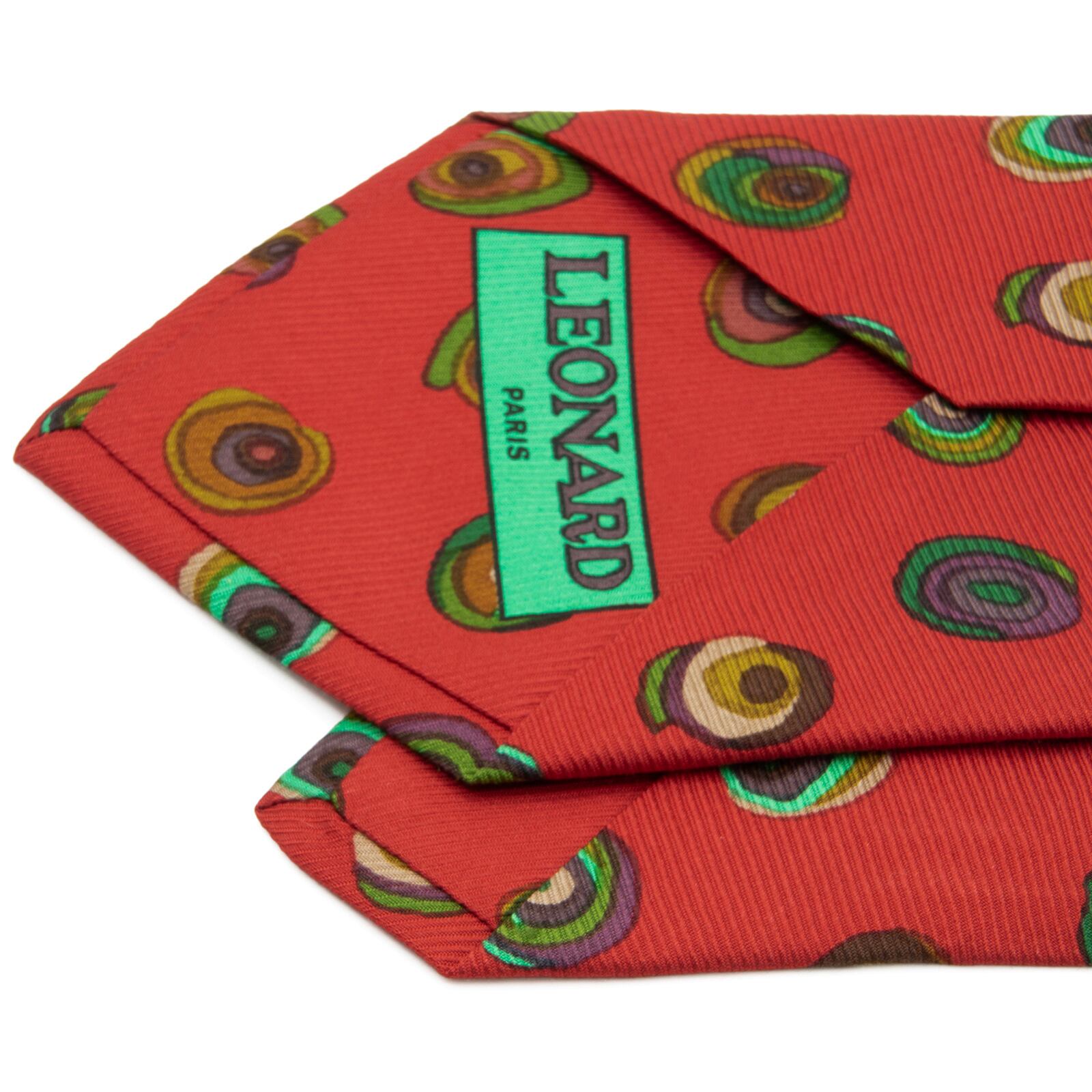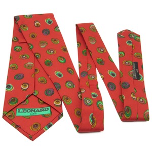 送料無料 レオナール ネクタイ レギュラータイ 新品 シルク 赤 黄緑色 グリーン 茶色 紫 サークル マーク ブランド イタリア製 綺麗 N776