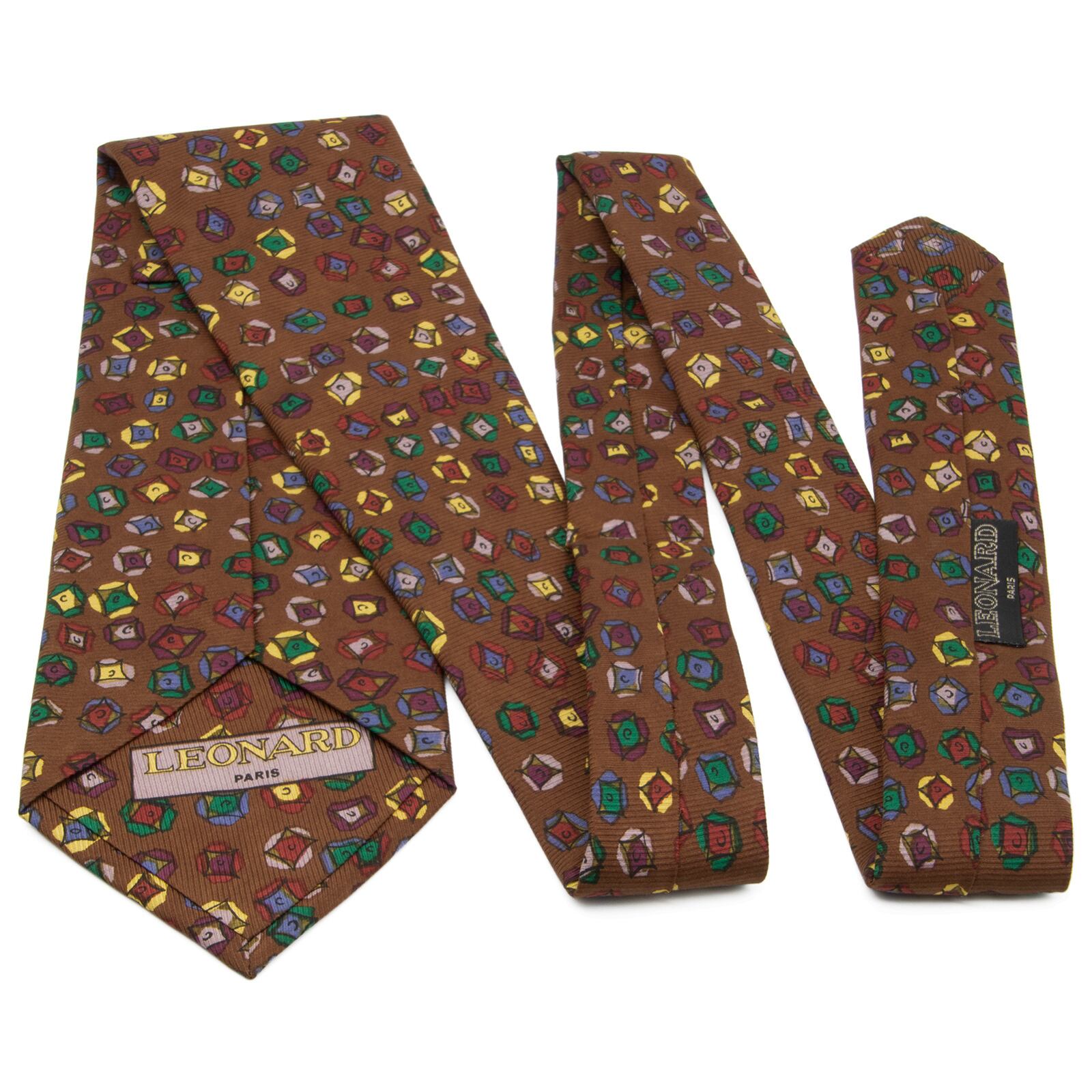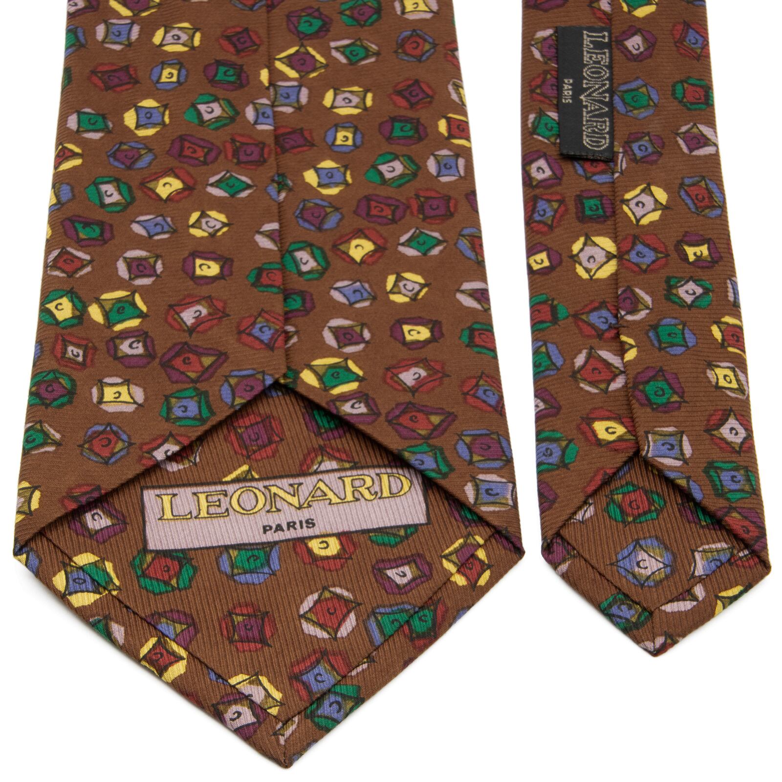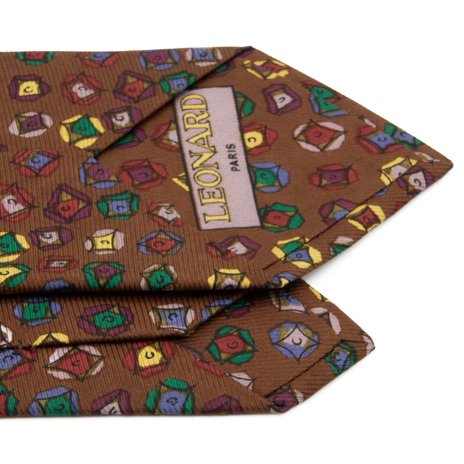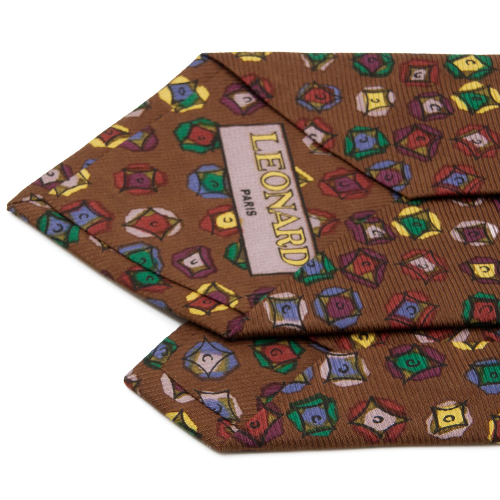 送料無料 レオナール ネクタイ レギュラータイ 新品 シルク 茶色 黄色 紫 緑 青 ピンク ひし形 ダイヤ マーク ブランド イタリア製 N795