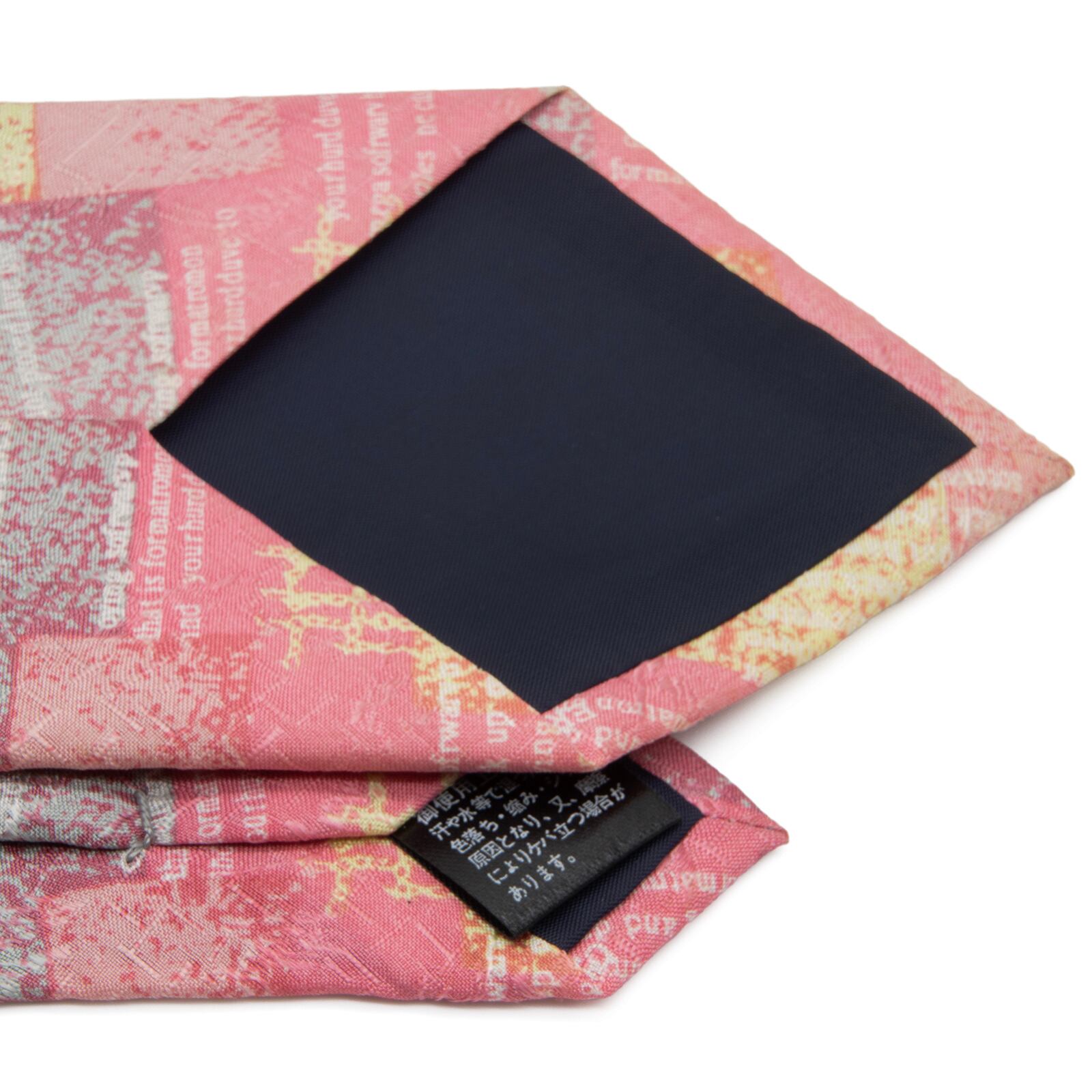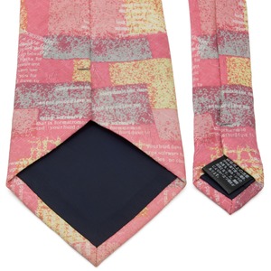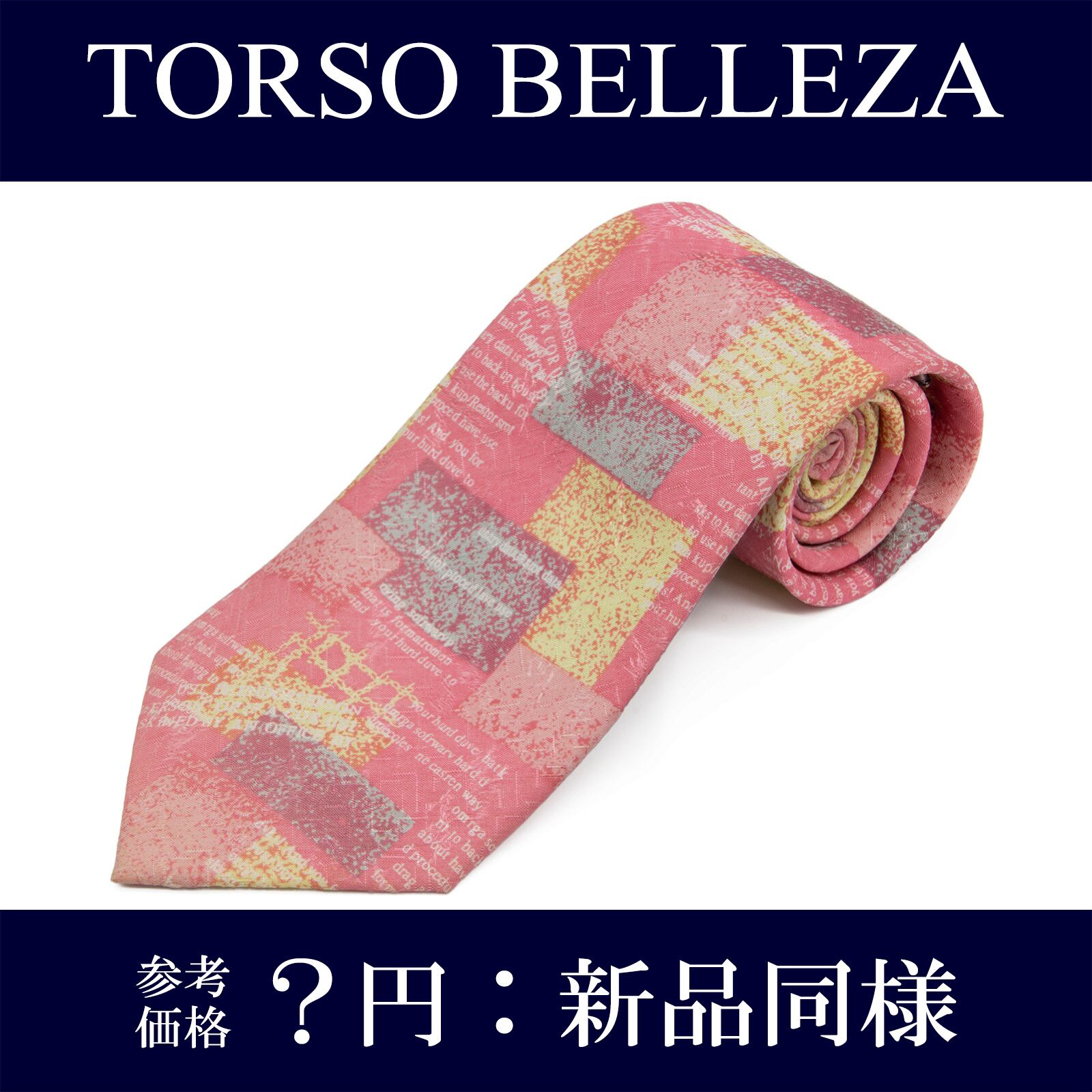 送料無料 トルソーベレッサ ネクタイ レギュラータイ 新品同様 シルク ピンク ベージュ 黄色 紫 グレー 英字 フォント 四角 ブランド P062