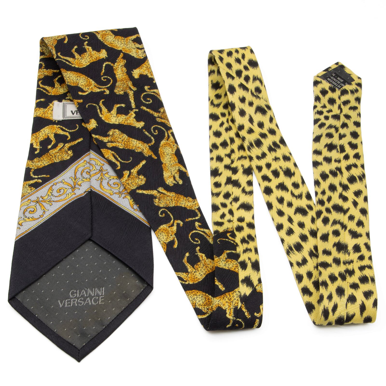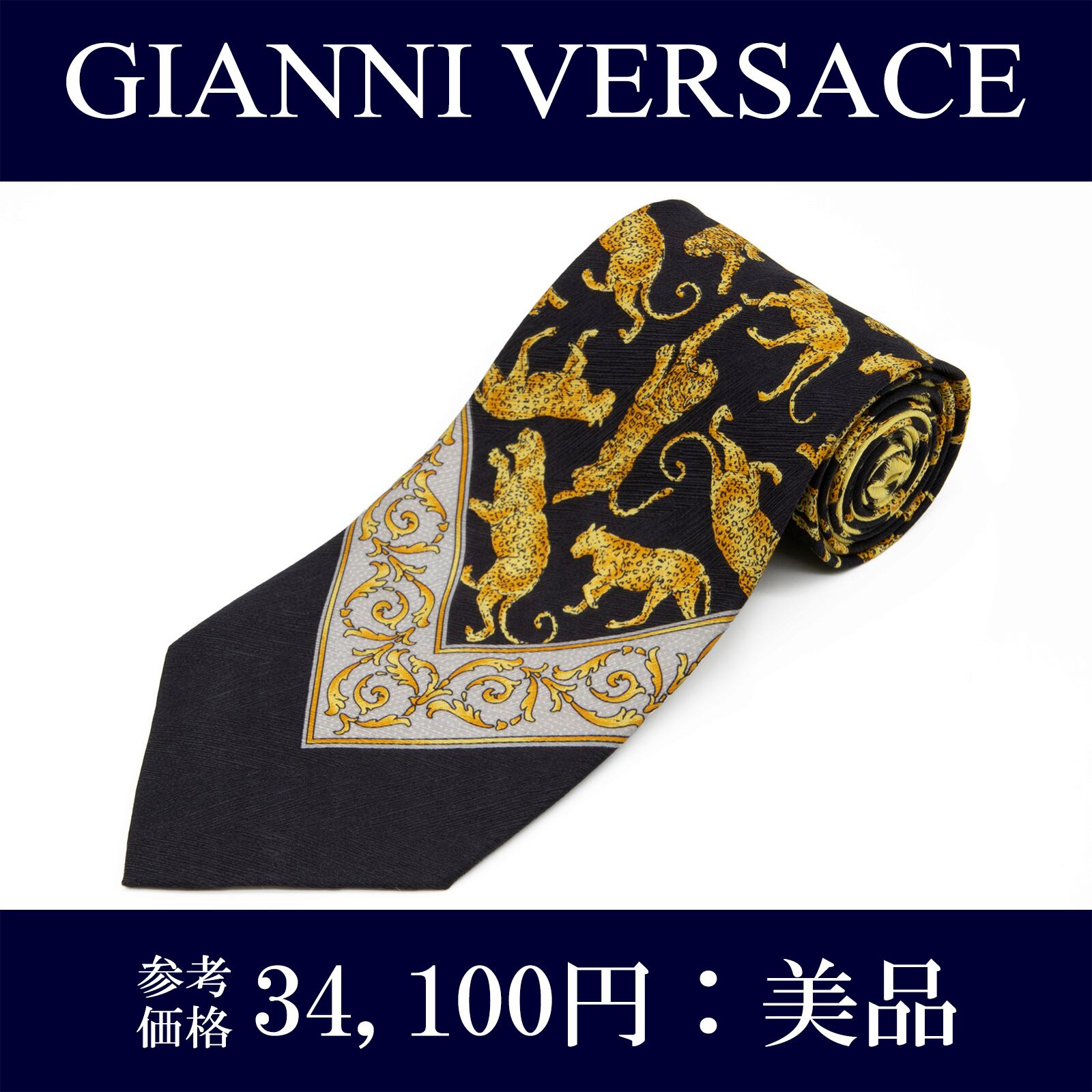 送料無料 ジャンニヴェルサーチェ ネクタイ クレリックタイ シルク 黒 黄色 グレー ビジネス カジュアル 動物 豹 レオパード ブランド P085