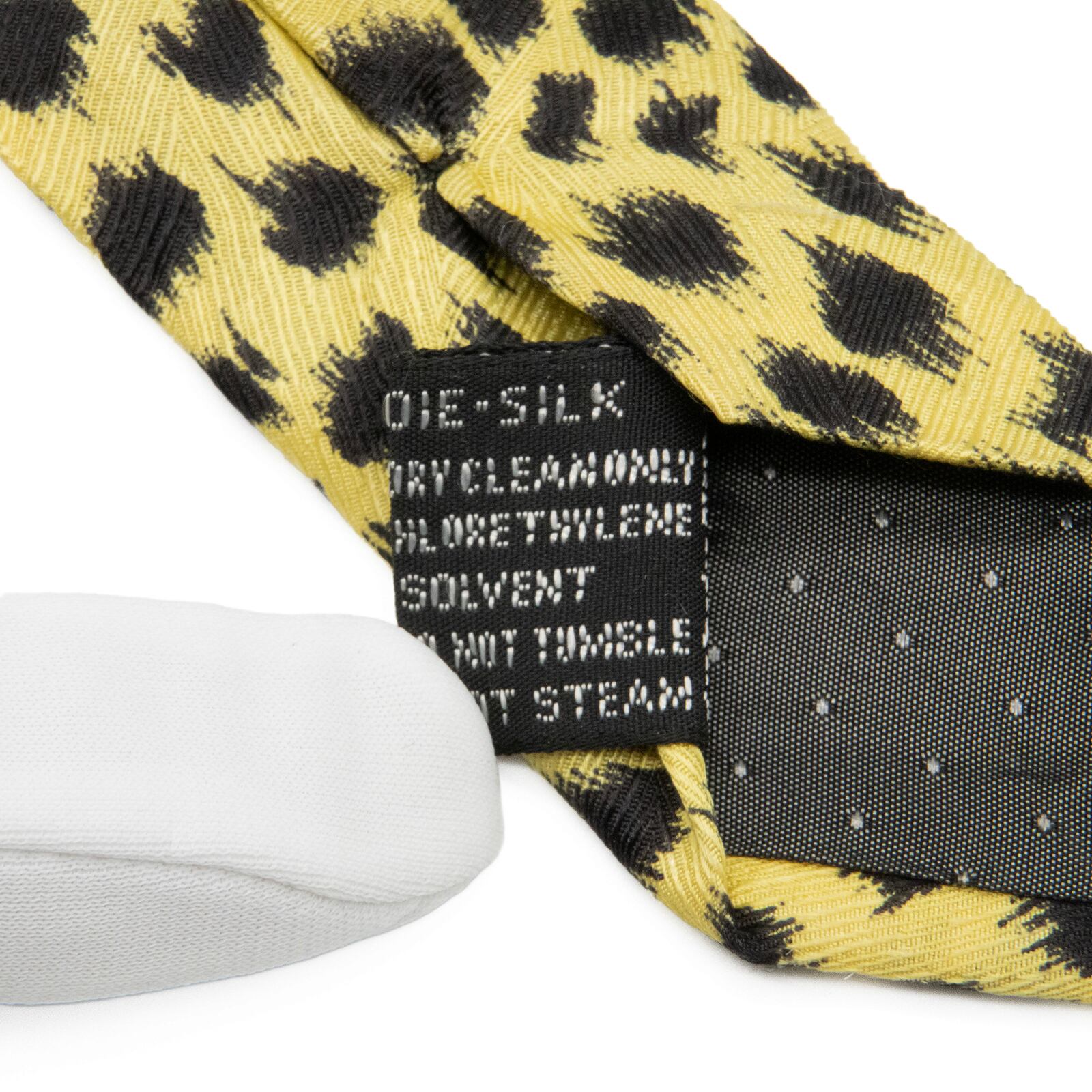 漆黒のシルク地に、黄金に輝く豹たちが躍動感たっぷりに描かれた、ブランドの真髄を感じる一本でございます。