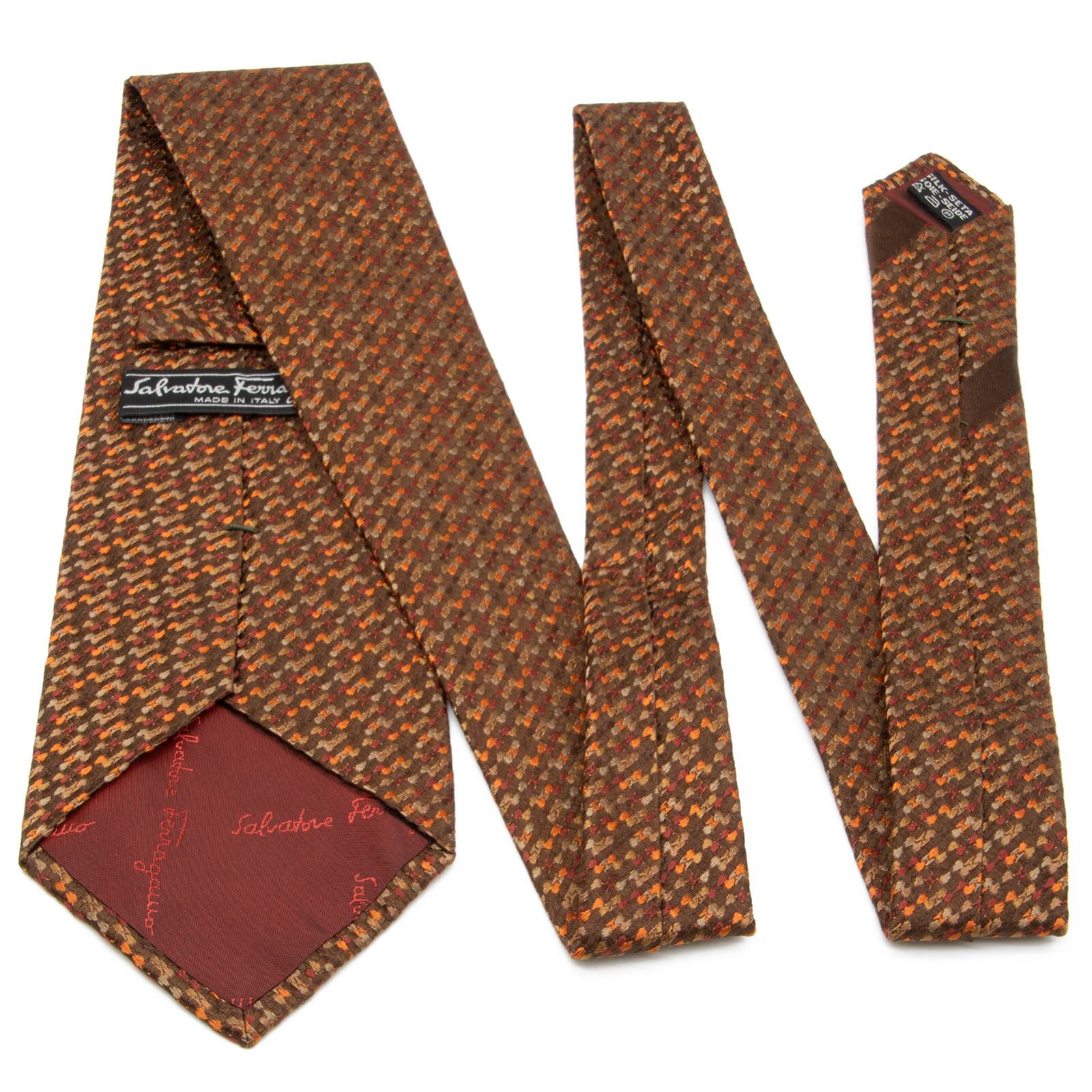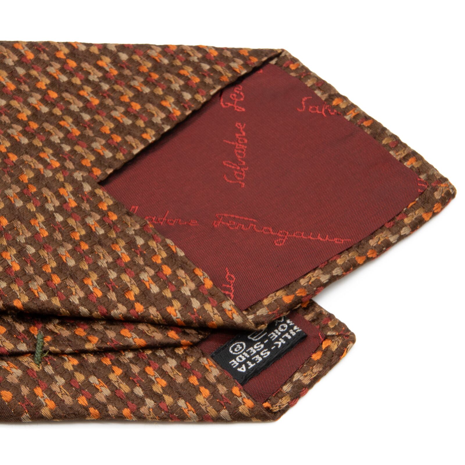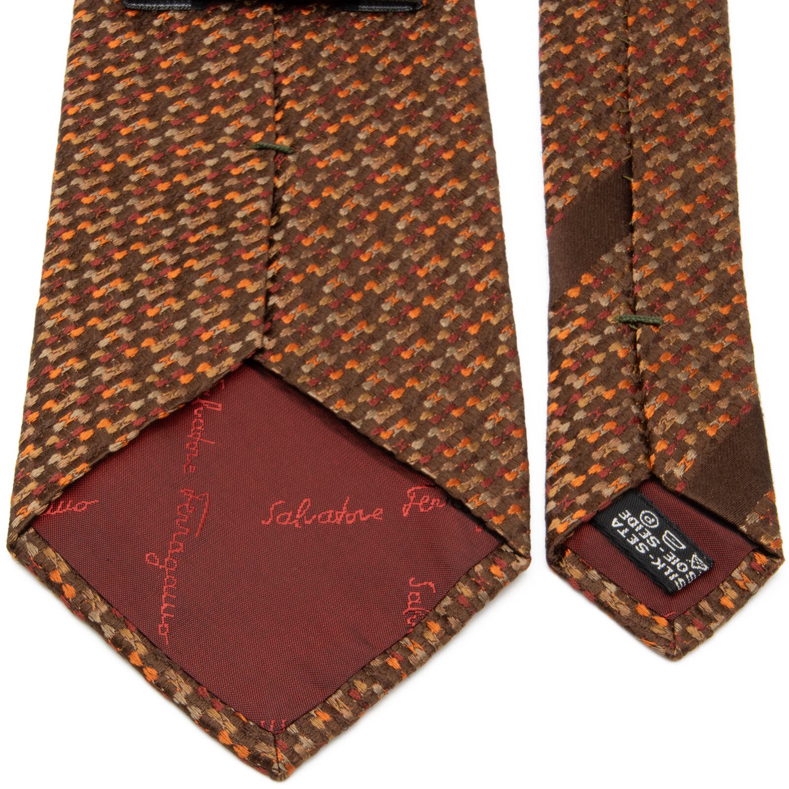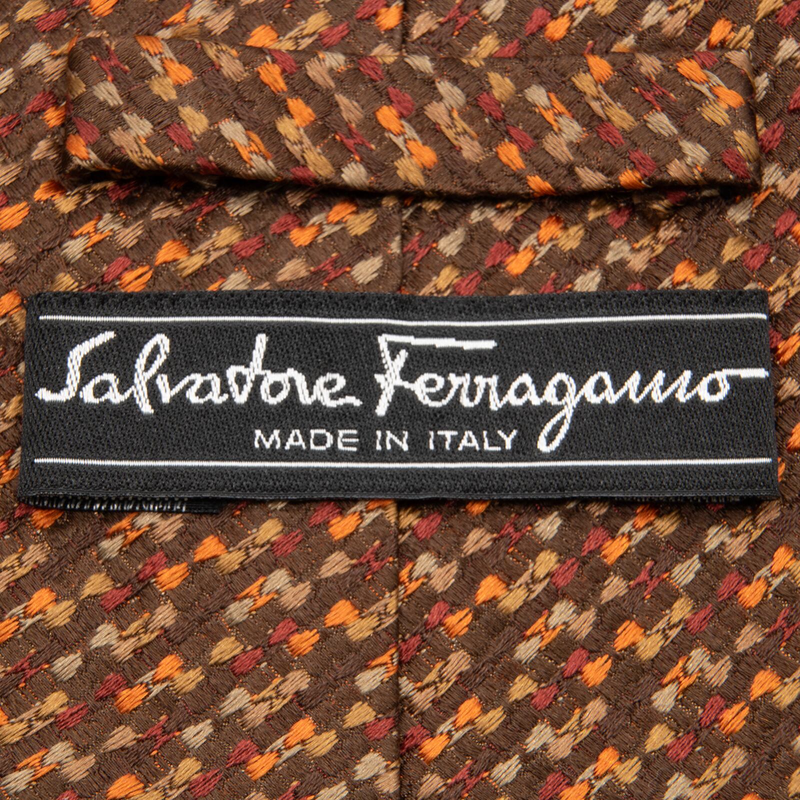 送料無料 フェラガモ ネクタイ ジャガードタイ 新品同様 シルク 茶色 オレンジ 赤 ベージュ ビジネス カジュアル 光沢 ブランド 綺麗 P123