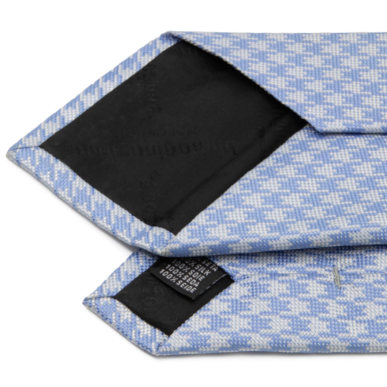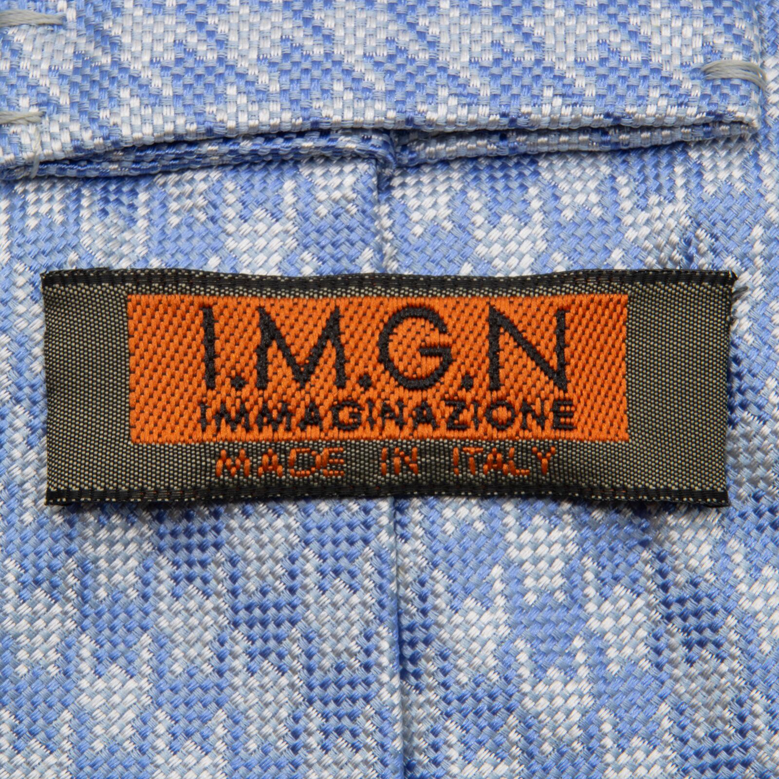 送料無料 イマジナチオーネ ネクタイ レギュラータイ ジャガード 水色 シルバー チェック ハウンドトゥース ブランド イタリア製 綺麗 P172