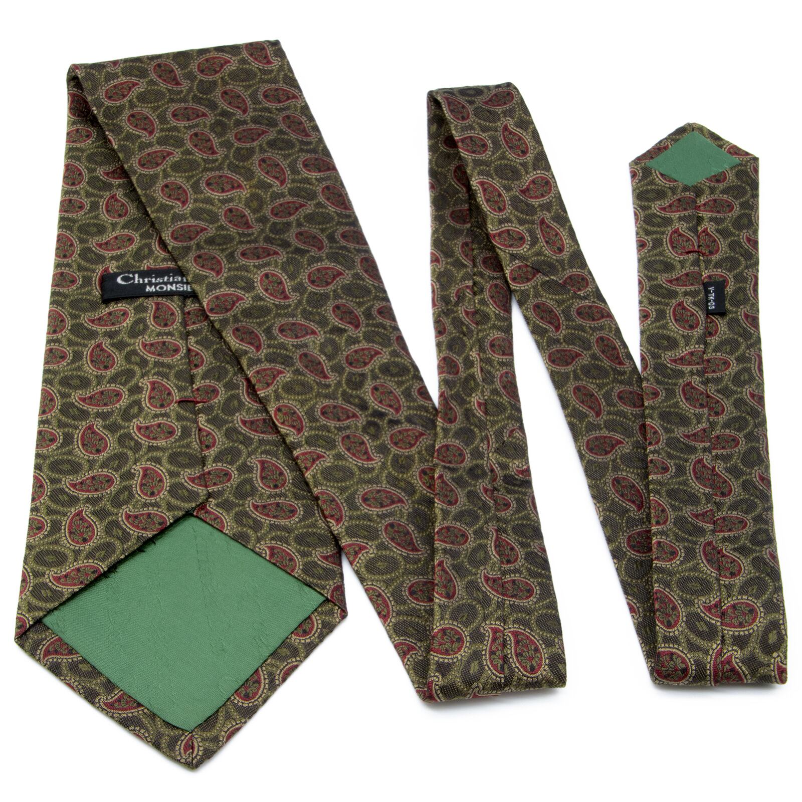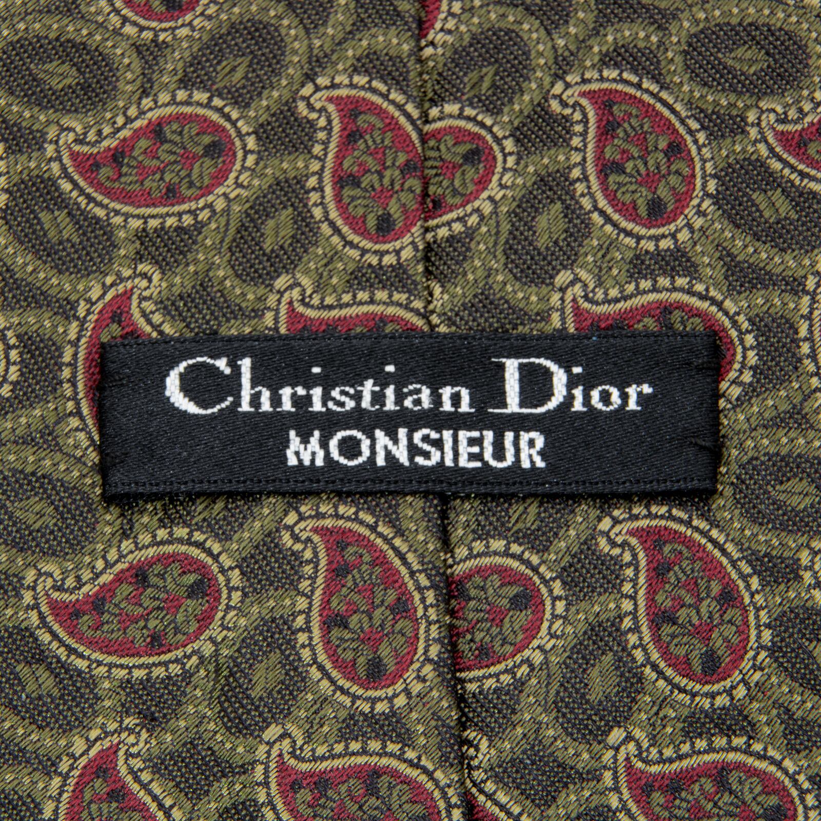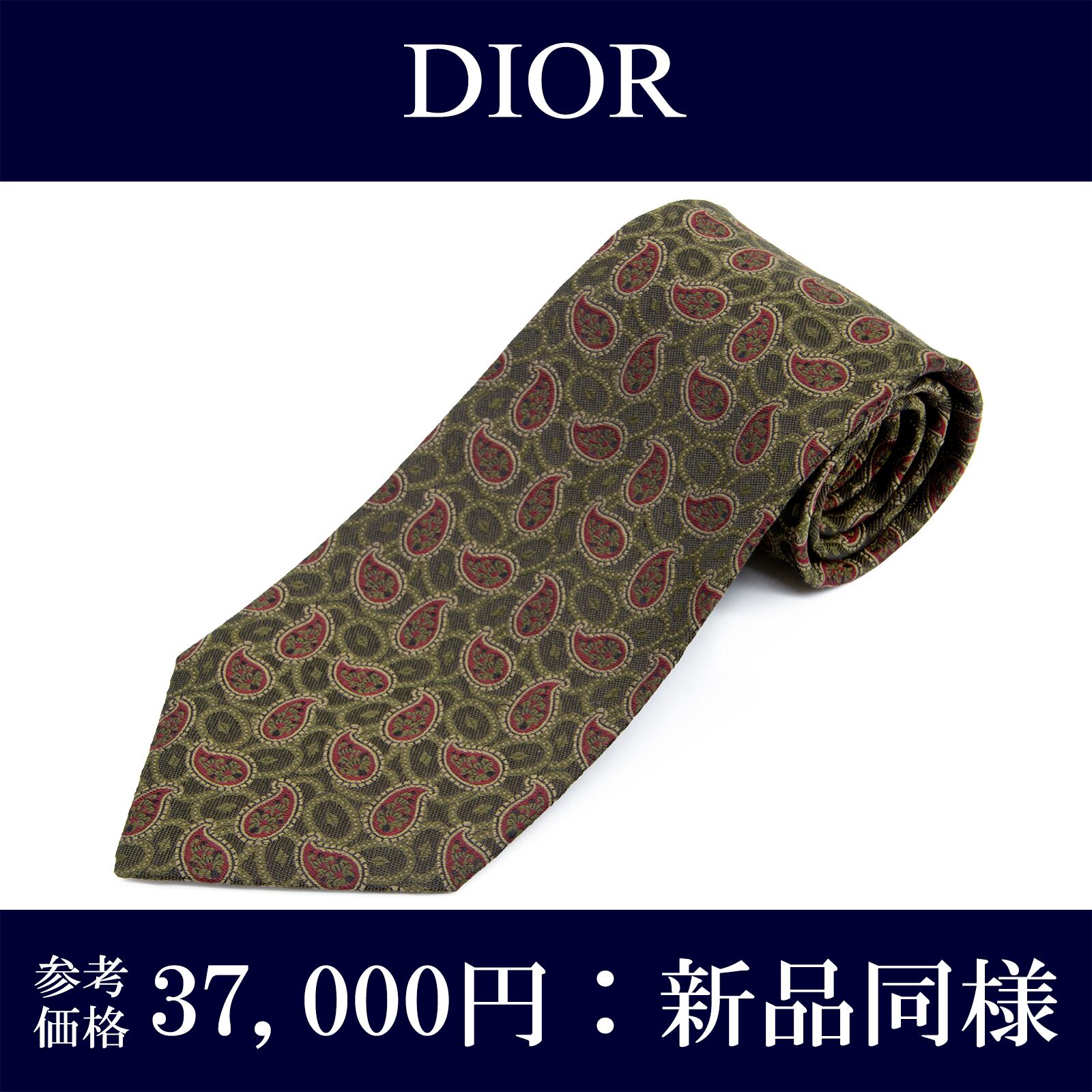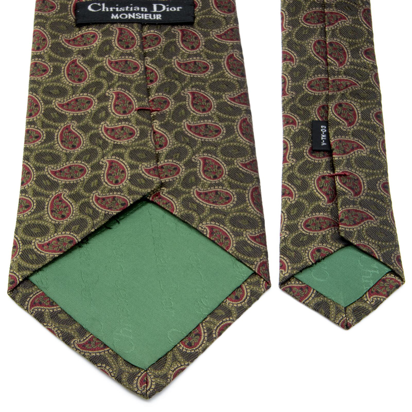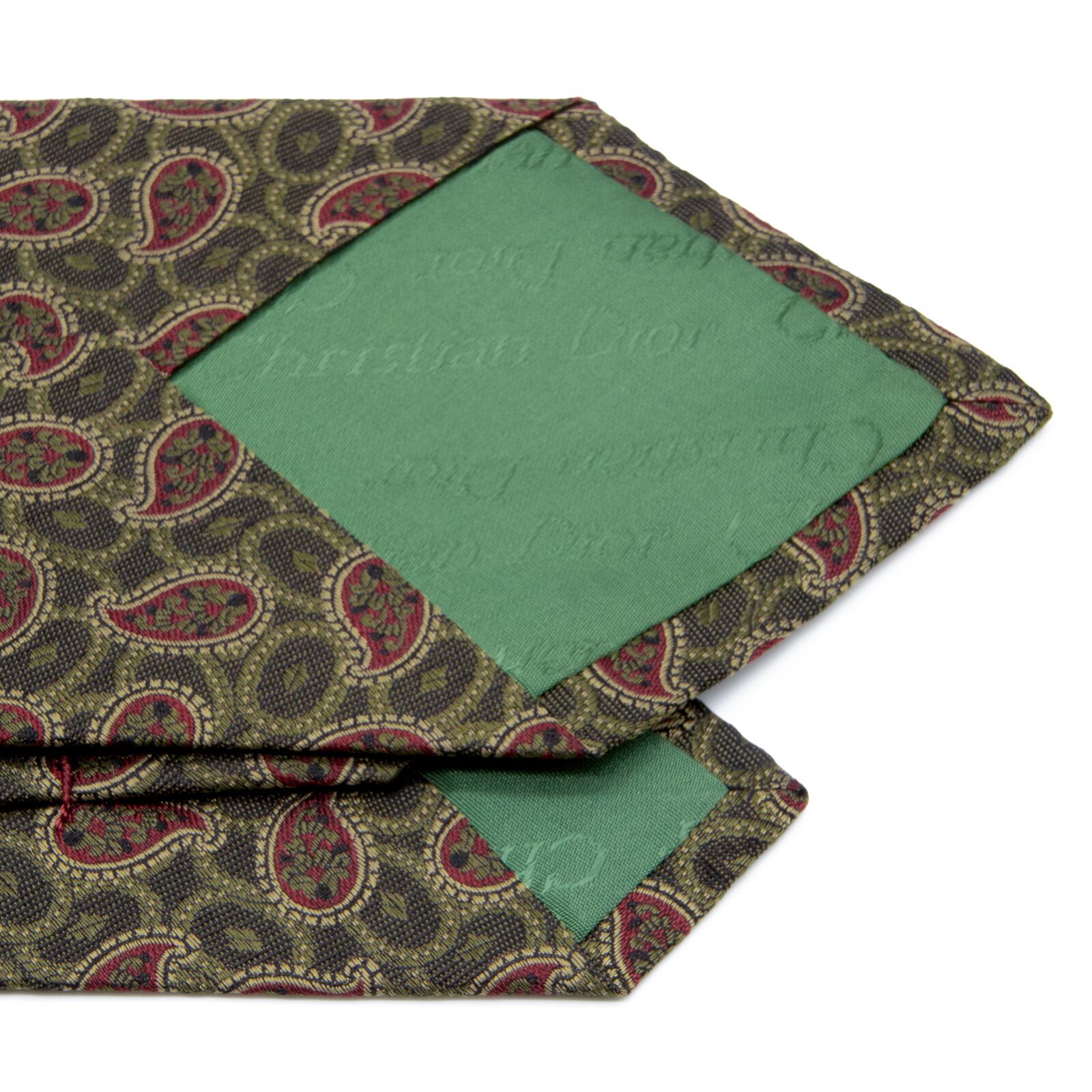 送料無料 ディオール ネクタイ レギュラータイ ジャガードタイ 新品同様 シルク 緑 赤 ゴールド ペイズリー 光沢 ブランド おしゃれ P108