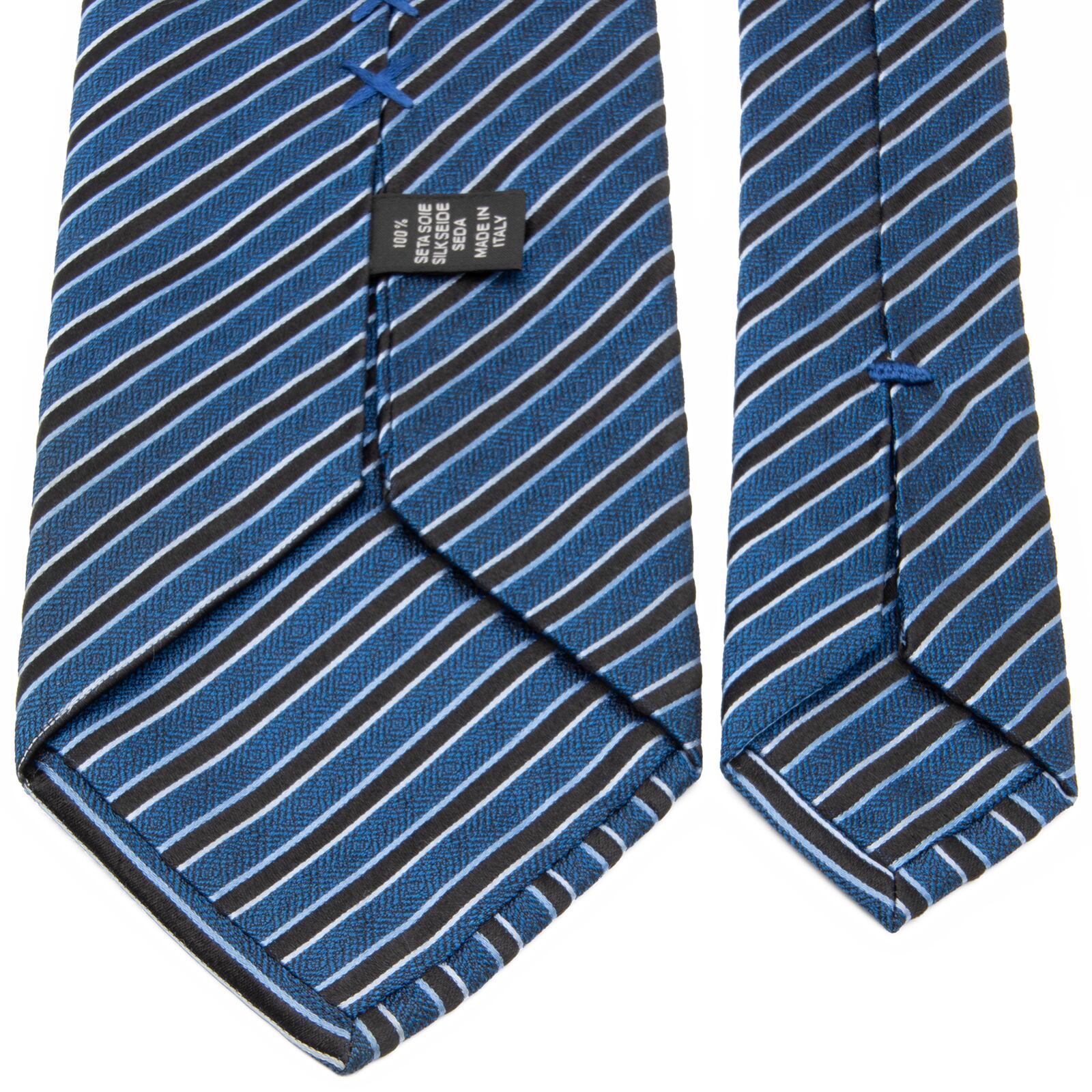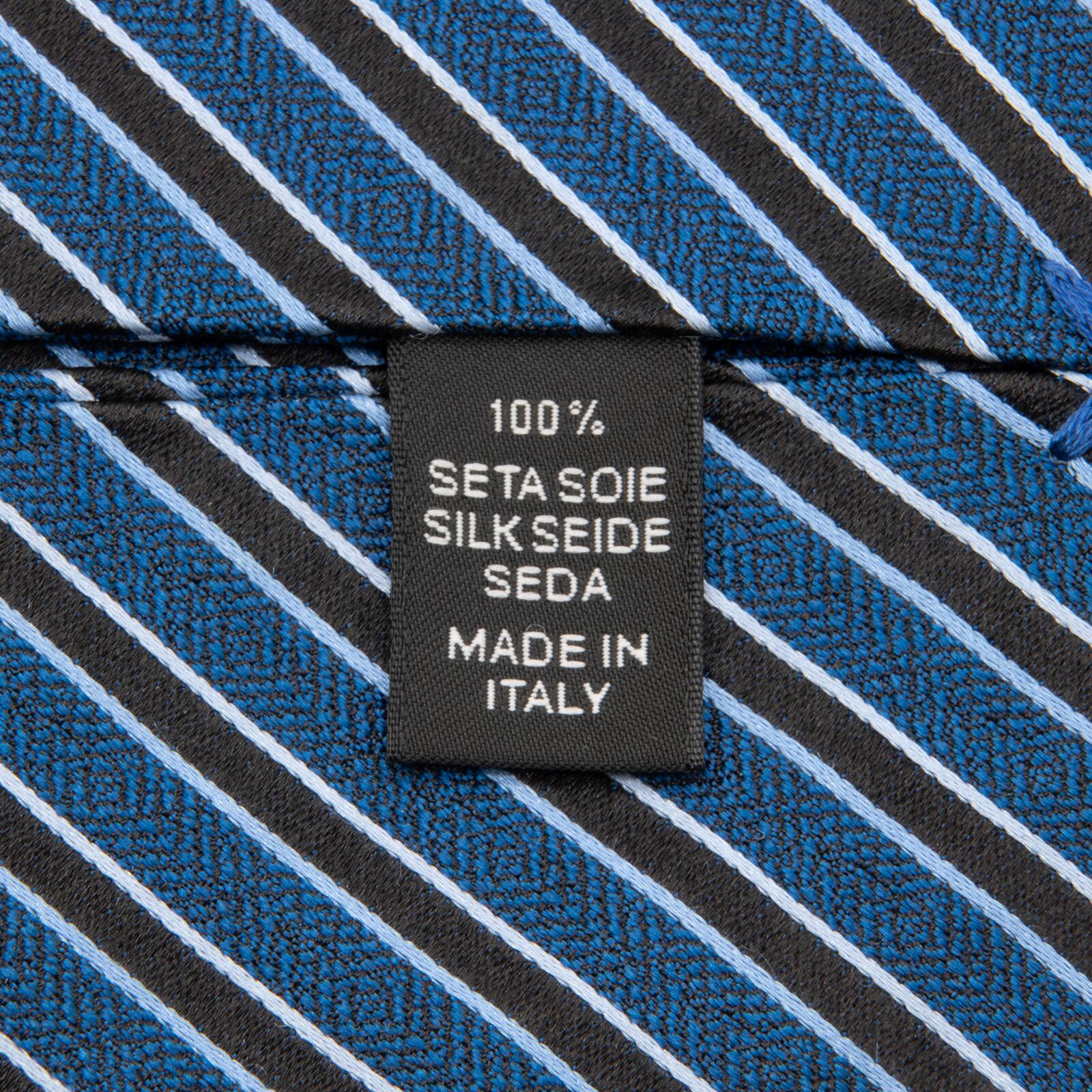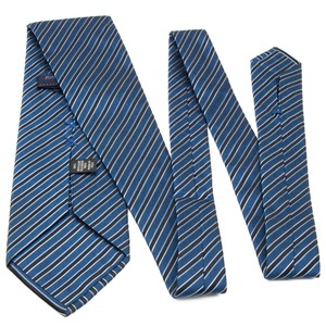 送料無料 ゼニア ネクタイ レギュラータイ ジャガード 新品同様 シルク 青 ブルー 黒 水色 シルバー ストライプ ブランド イタリア製 P121