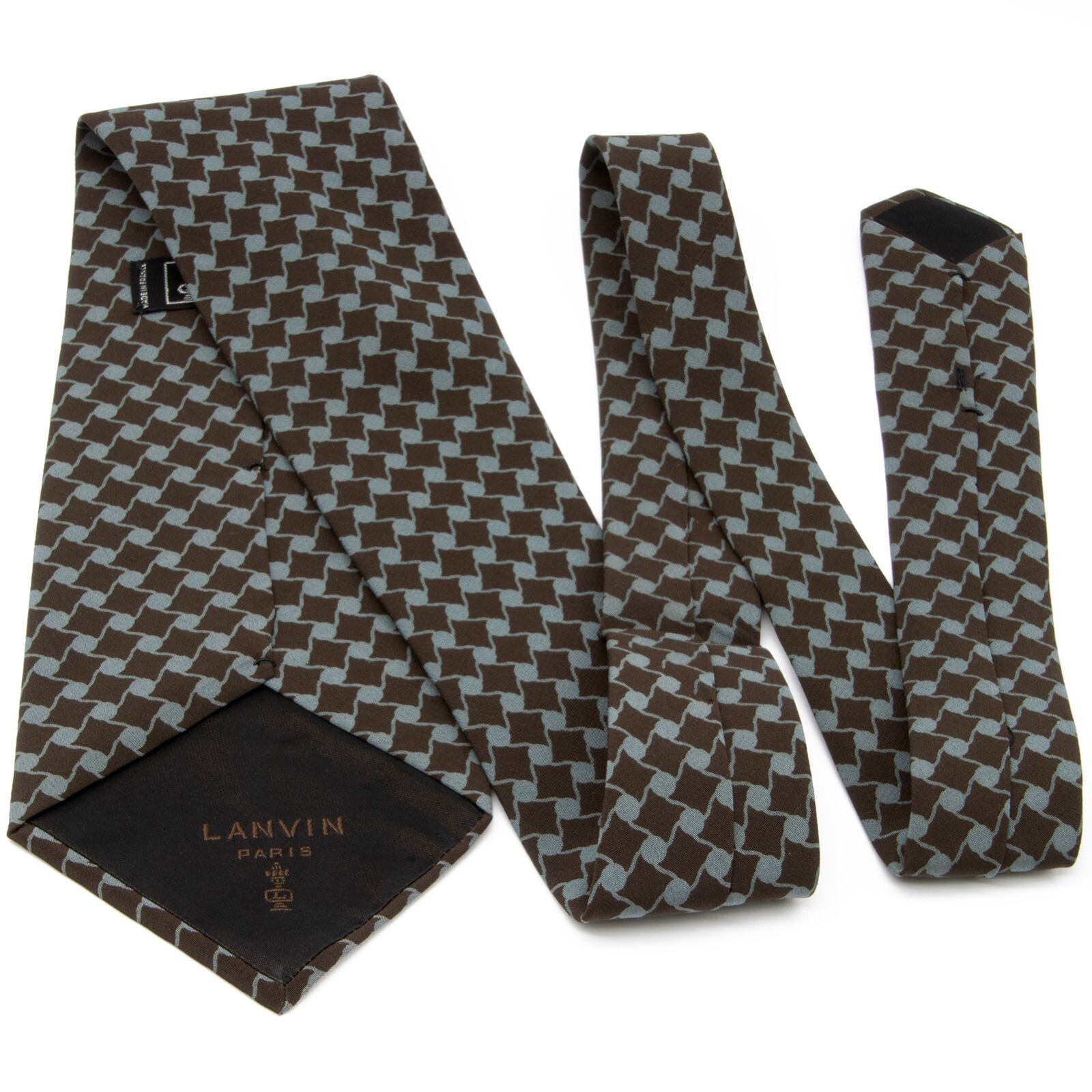 送料無料 ランバン ネクタイ シルク 青 ブルーグレー 茶色 ブラウン ビジネス カジュアル マーク ブランド おしゃれ フランス製 綺麗 P129