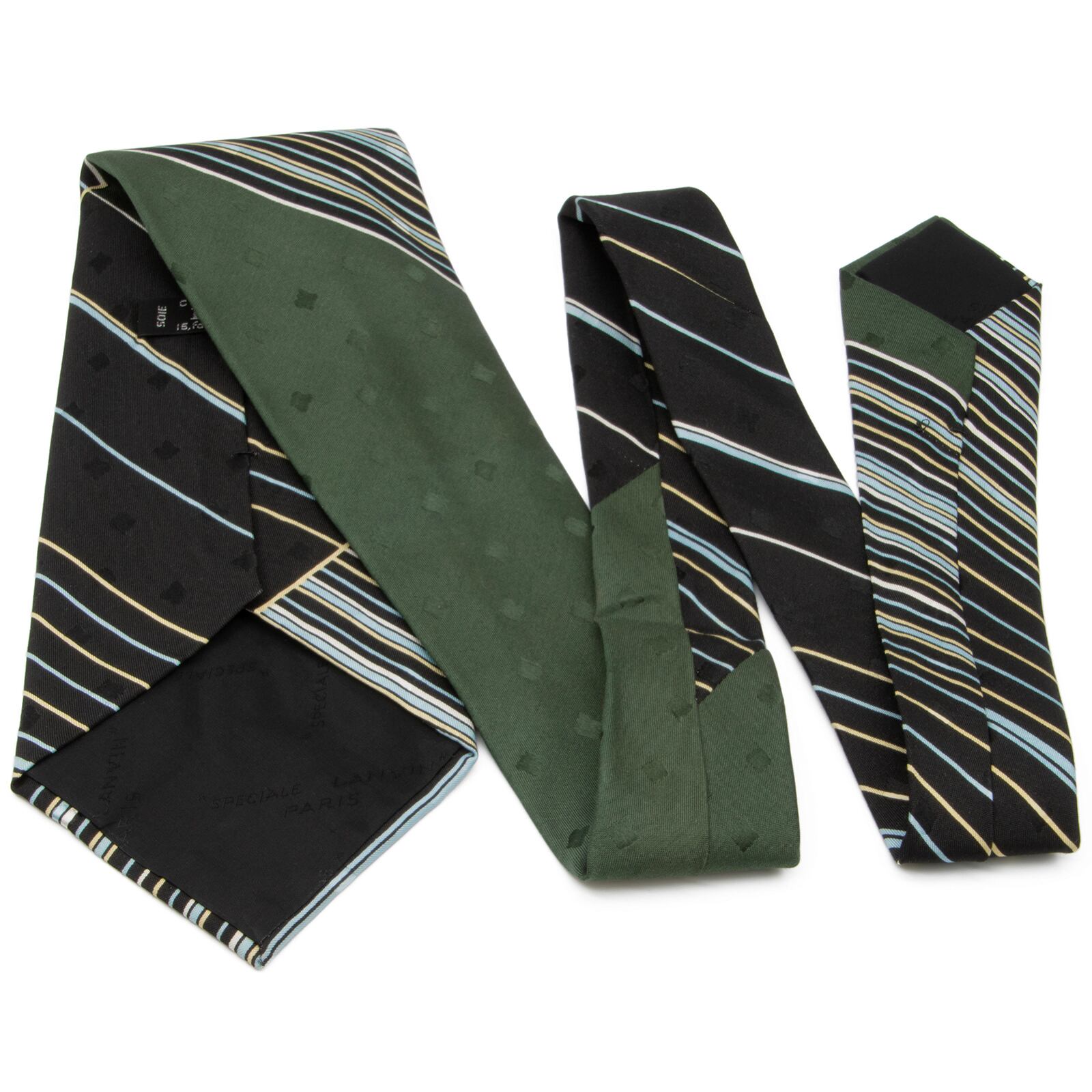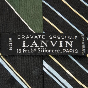 送料無料 ランバン ネクタイ クレリックタイ シルク 黒 ブラック 緑 白 水色 黄色 ビジネス ストライプ ブランド おしゃれ フランス製 P136