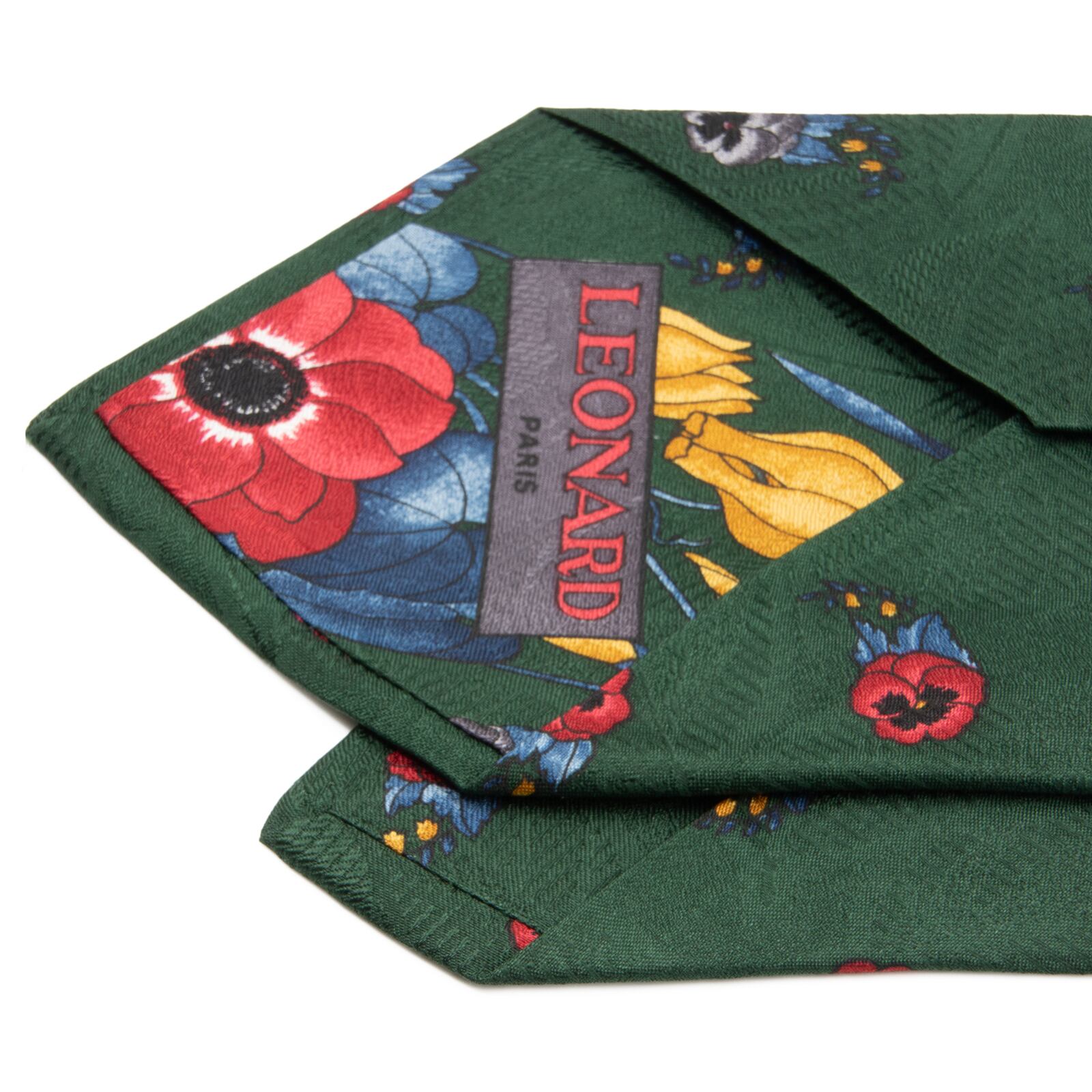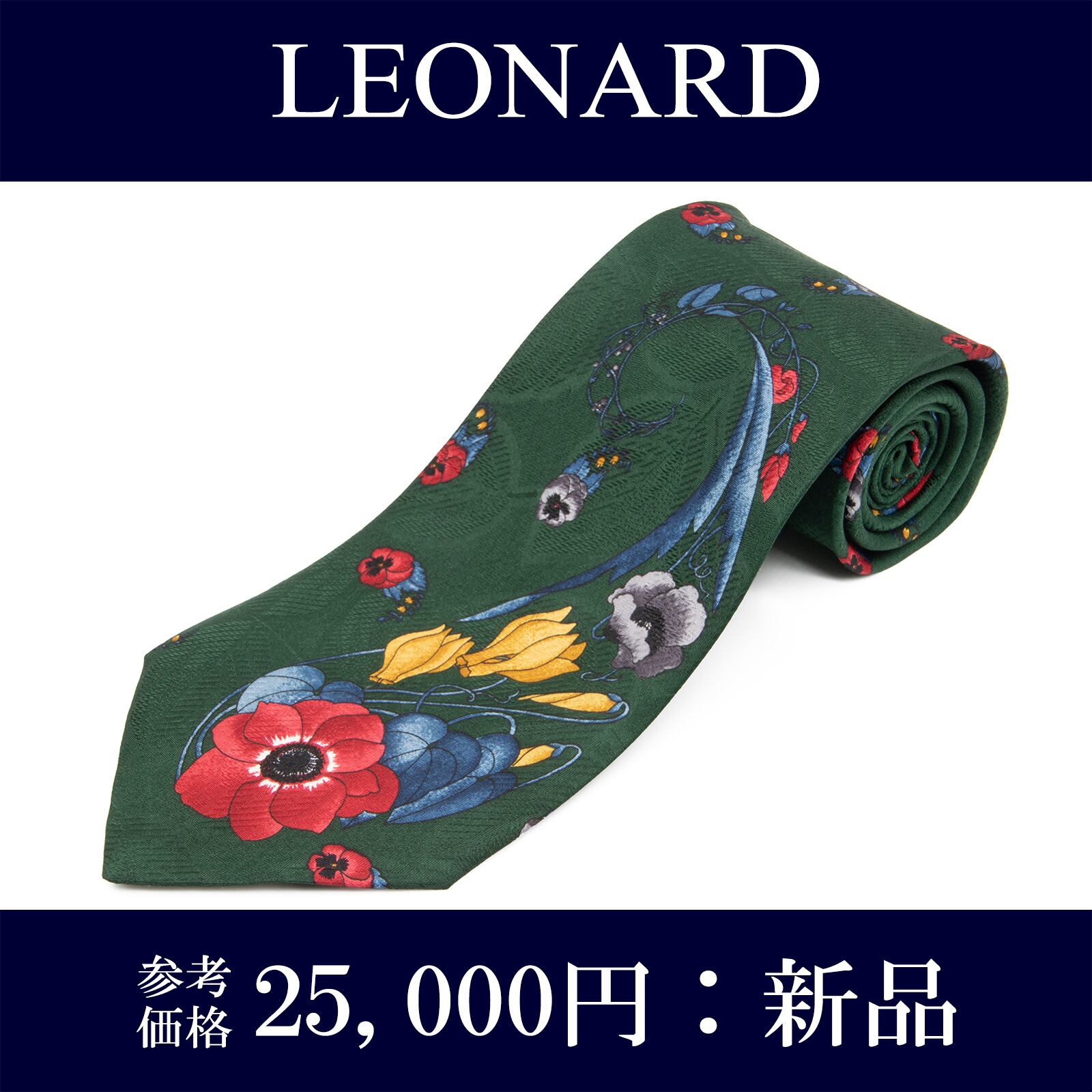 送料無料 レオナール ネクタイ レギュラータイ 新品 シルク 緑 赤 青 グレー 黒 黄色 花 パンジー 葉 ブランド おしゃれ イタリア製 N764