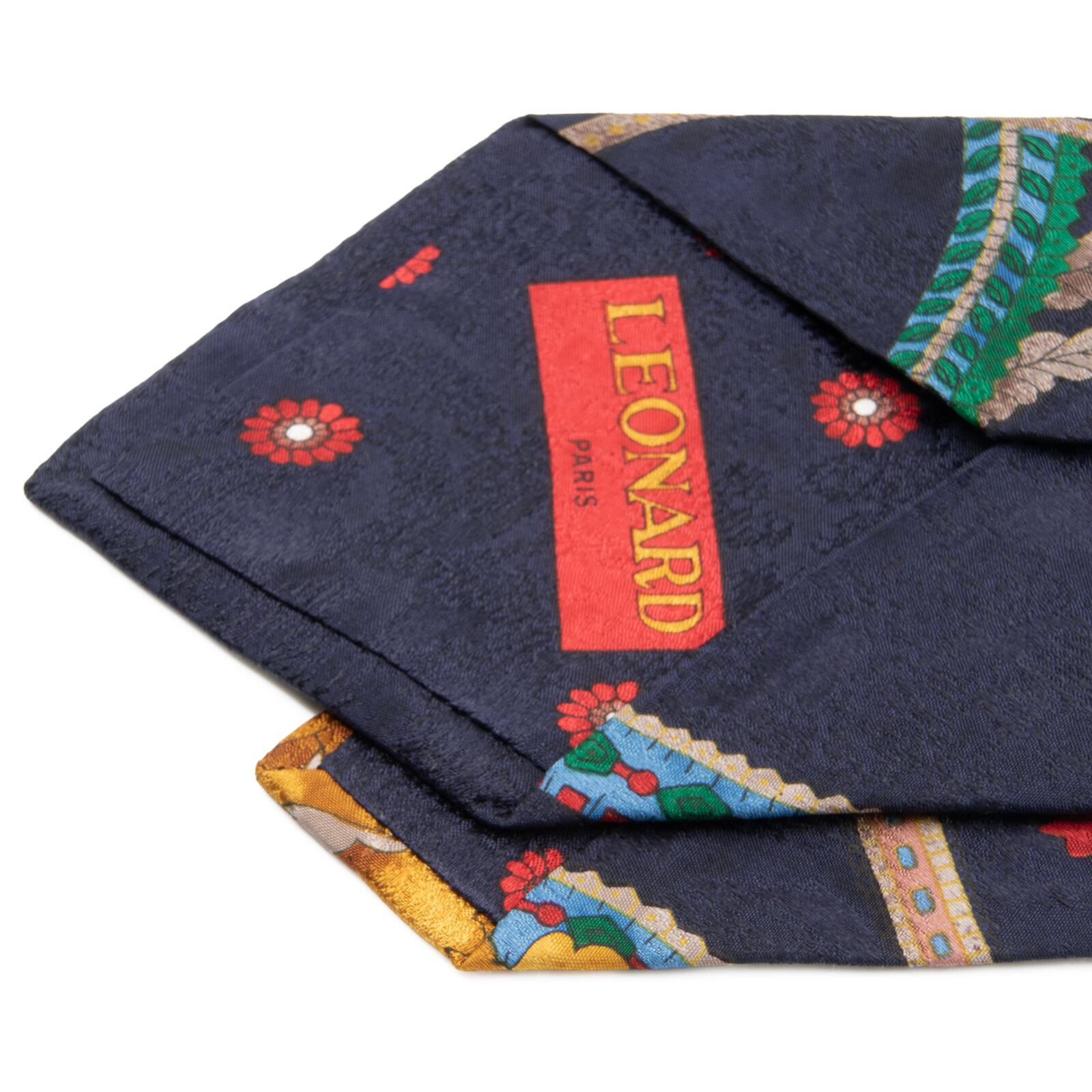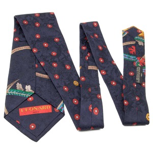 送料無料 レオナール ネクタイ レギュラータイ 新品 シルク ネイビーブルー ゴールド 赤 水色 緑 茶色 花 マーク ブランド イタリア製 N767