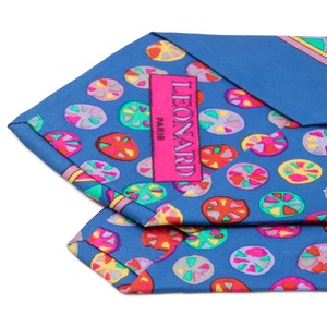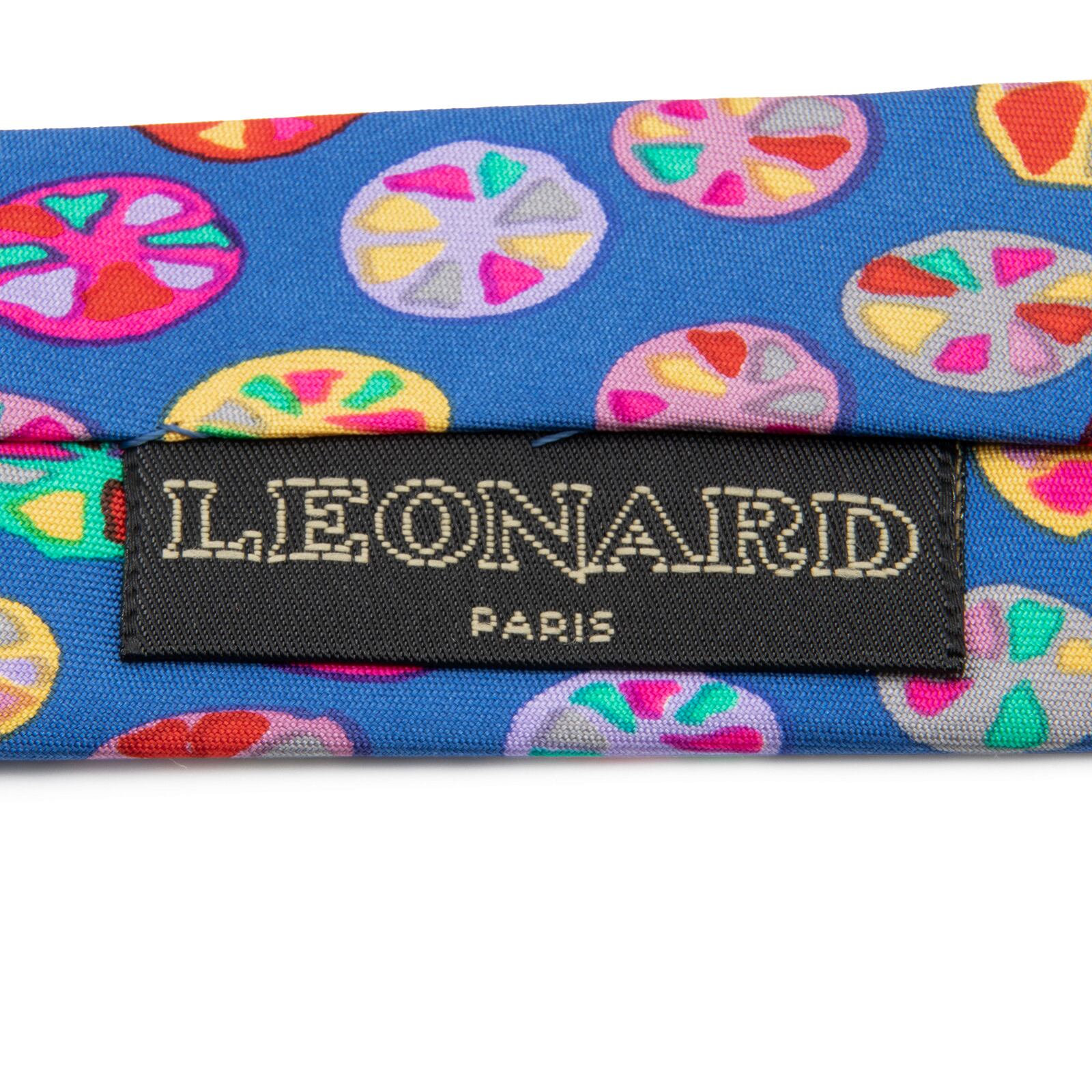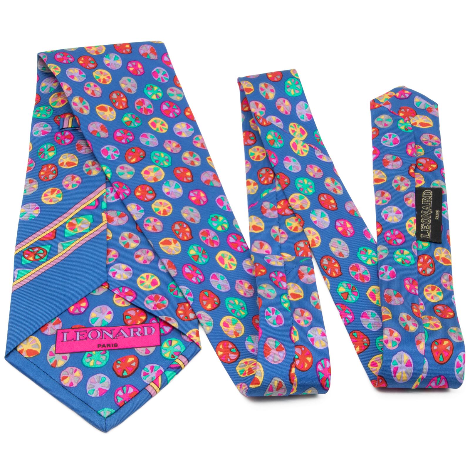 送料無料 レオナール ネクタイ 新品 シルク 青 ブルー 赤 黄色 紫 青緑 グレー 果物 フルーツ マーク カラフル ブランド イタリア製 N801
