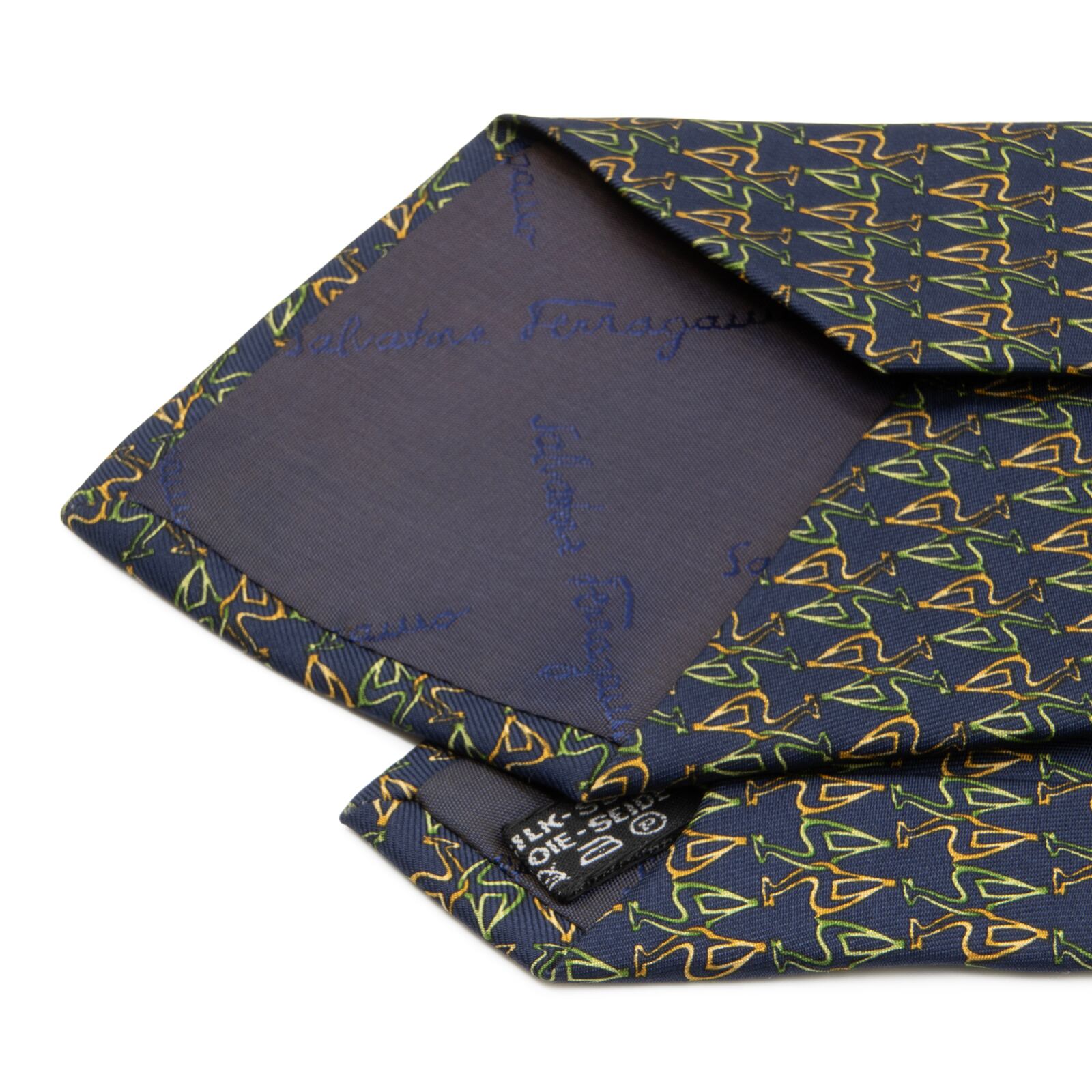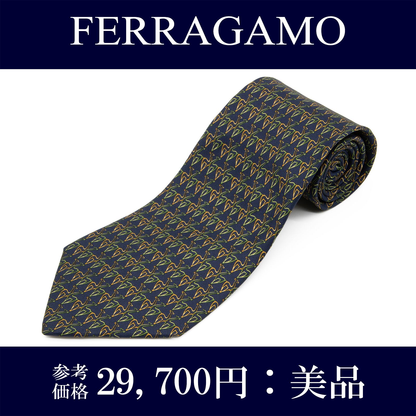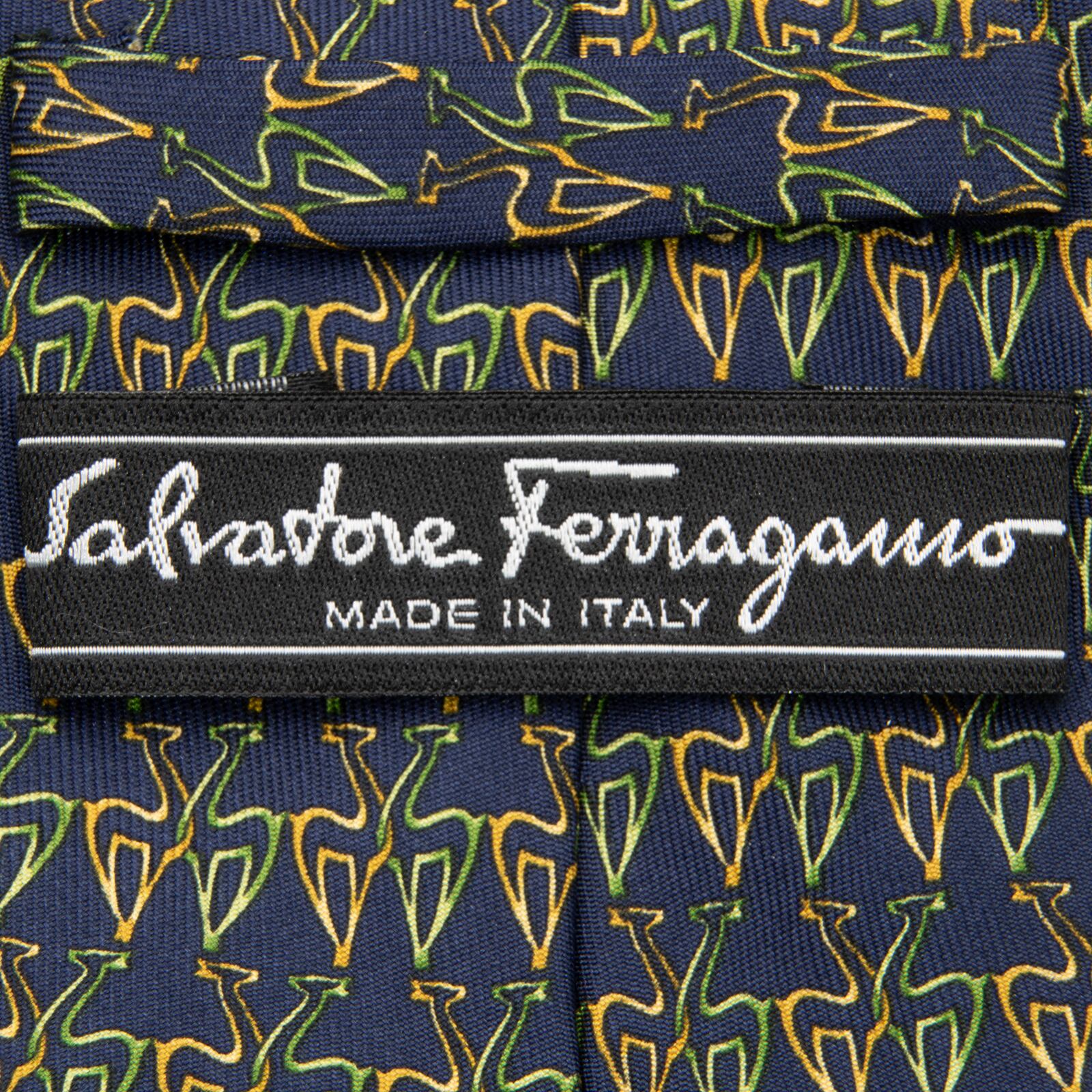 送料無料 フェラガモ ネクタイ シルク 青 ネイビーブルー 緑 オレンジ 動物 アニマル マーク ブランド 珍しい おしゃれ イタリア製 N834