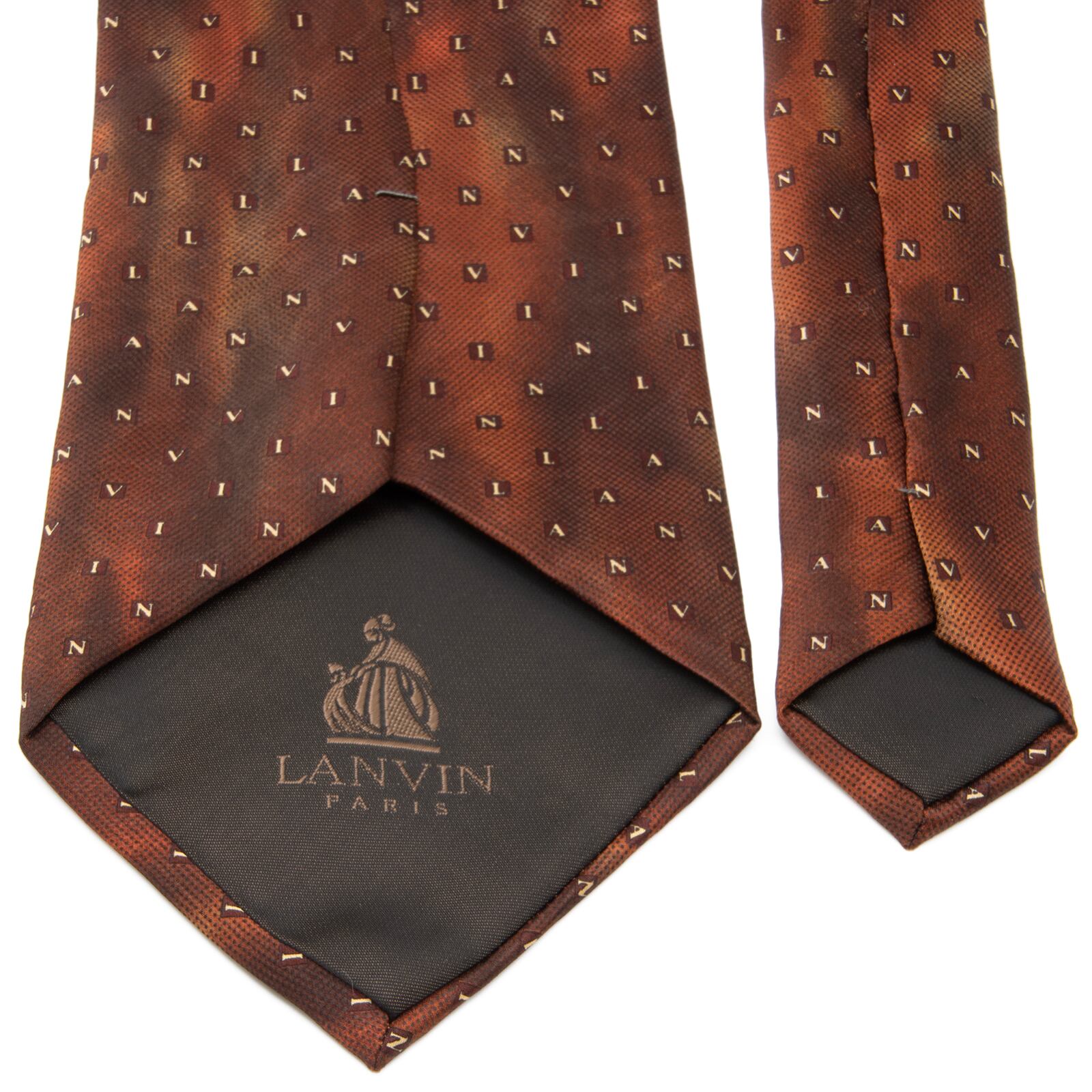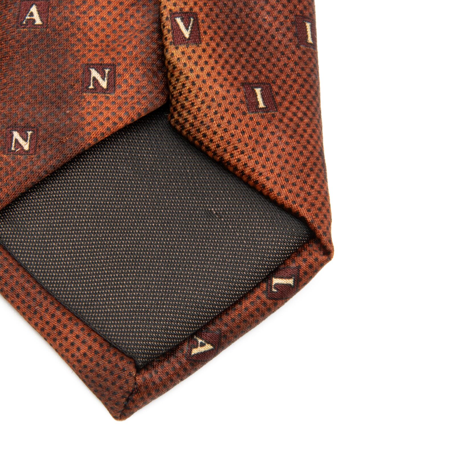 送料無料 ランバン ネクタイ シルク 茶色 ブラウン オレンジ ベージュ ビジネス ロゴ マーク 花 フラワー 光沢 ブランド フランス製 P125