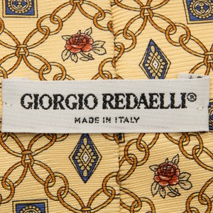送料無料 ジョルジオレダエリ ネクタイ シルク 黄色 オレンジ 青 赤 花 フラワー 四角 スクエア チェーン ブランド イタリア製 綺麗 P154