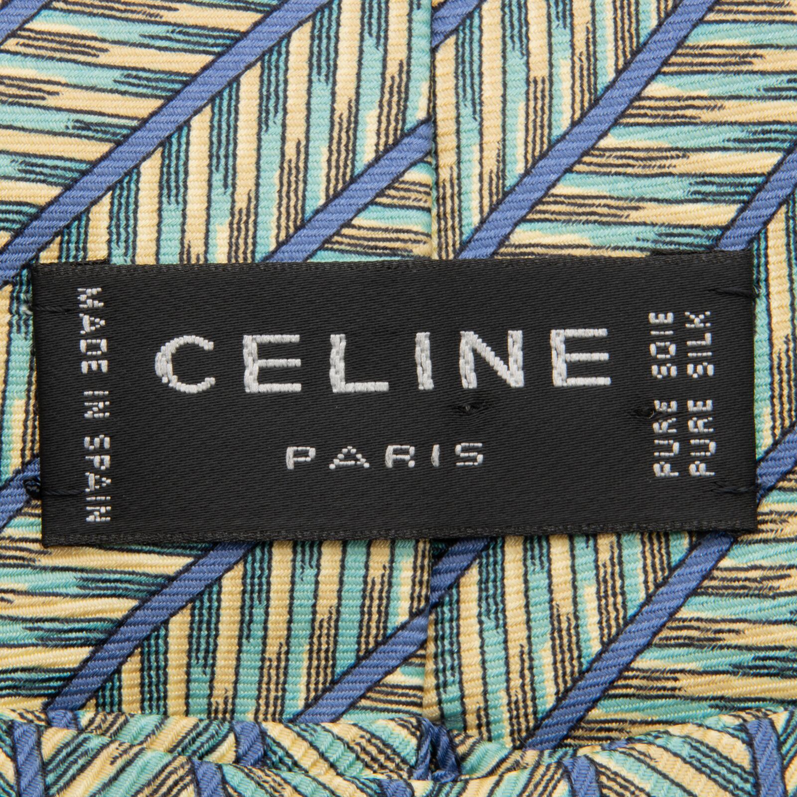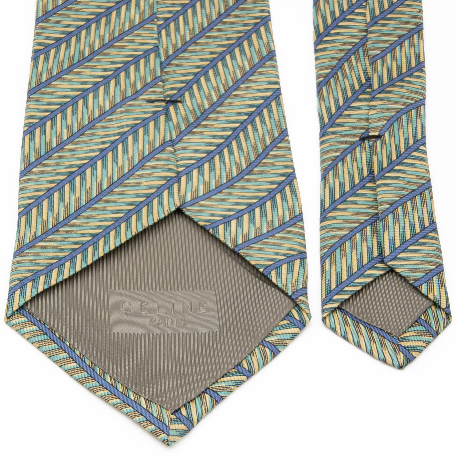 送料無料 セリーヌ ネクタイ シルク 青 ブルー 水色 ベージュ 黄色 ビジネス ストライプ マーク ブランド おしゃれ スペイン製 綺麗 P157
