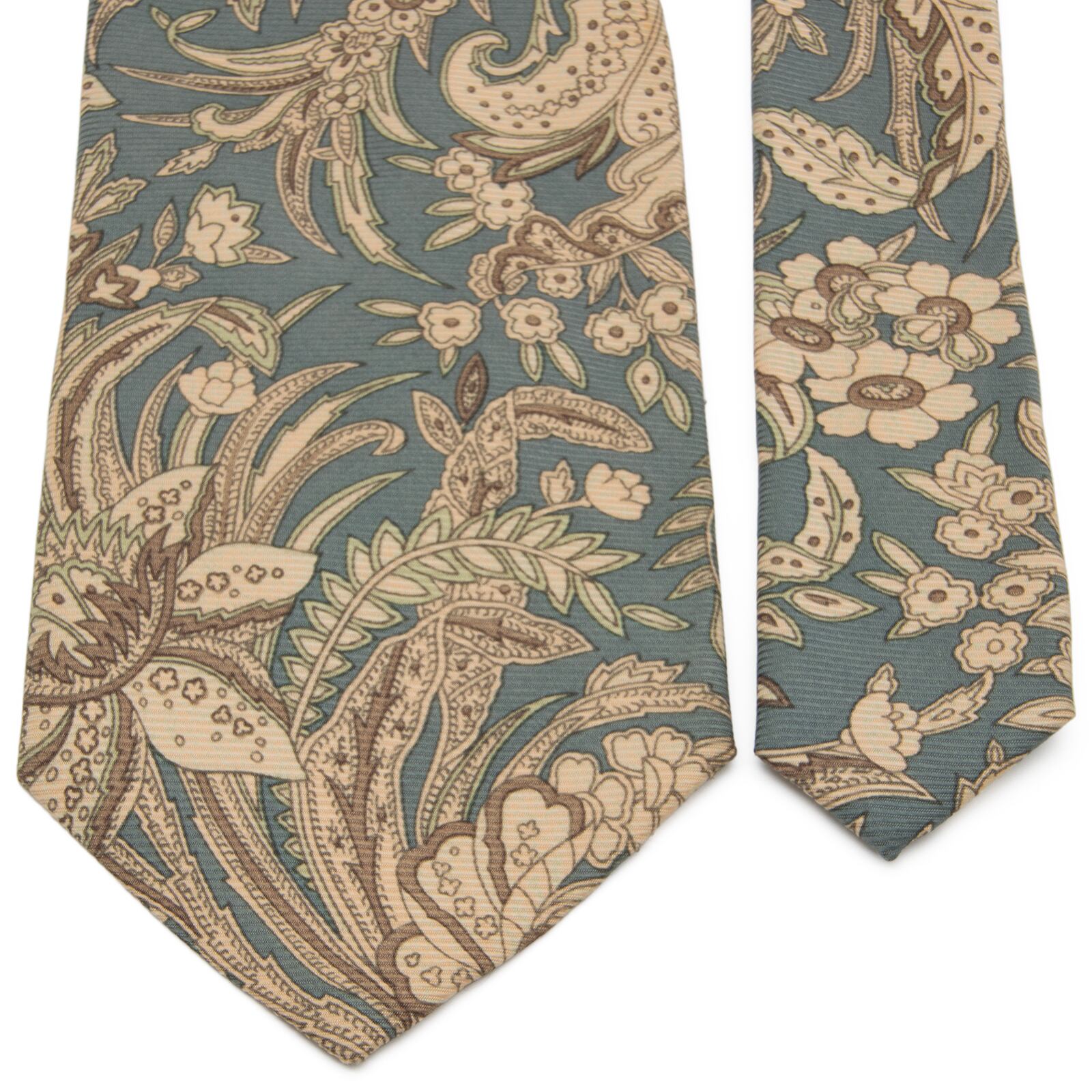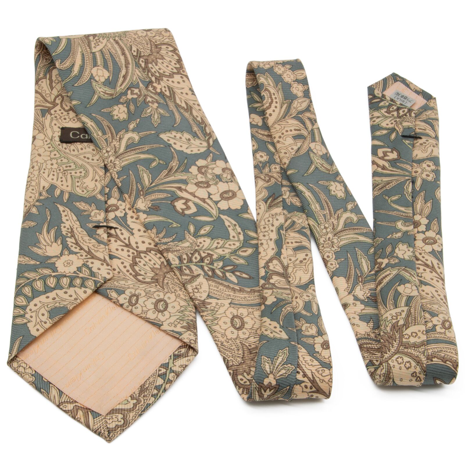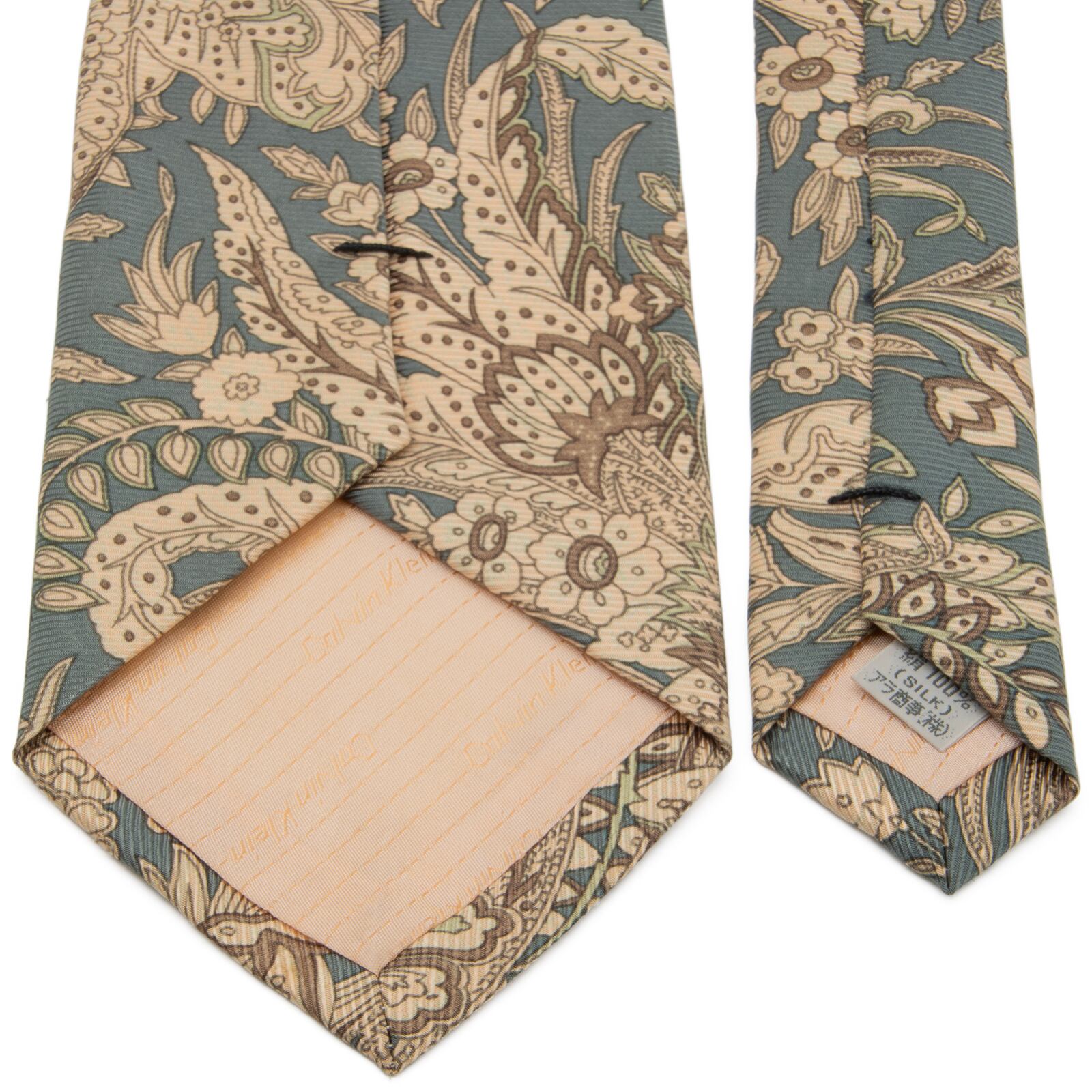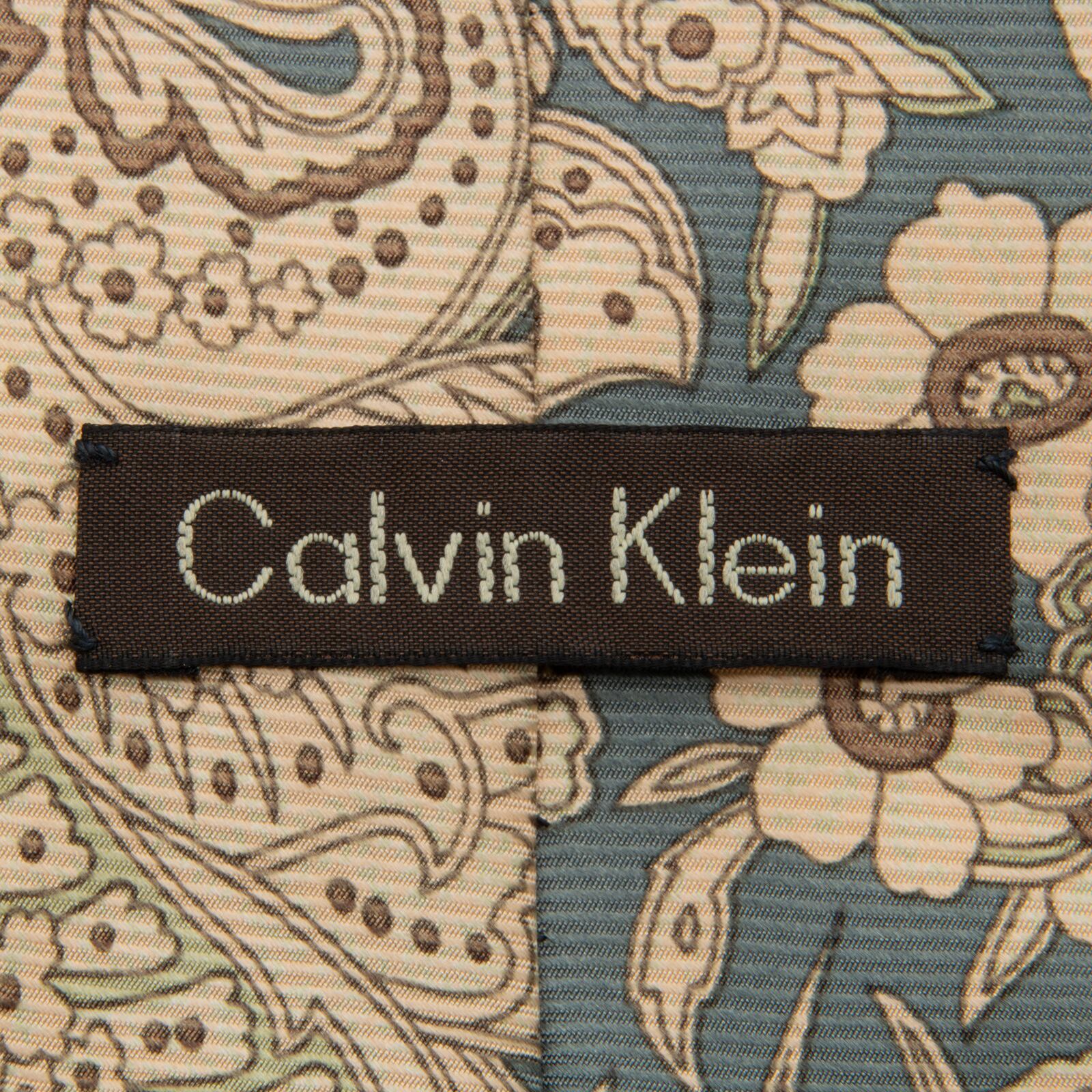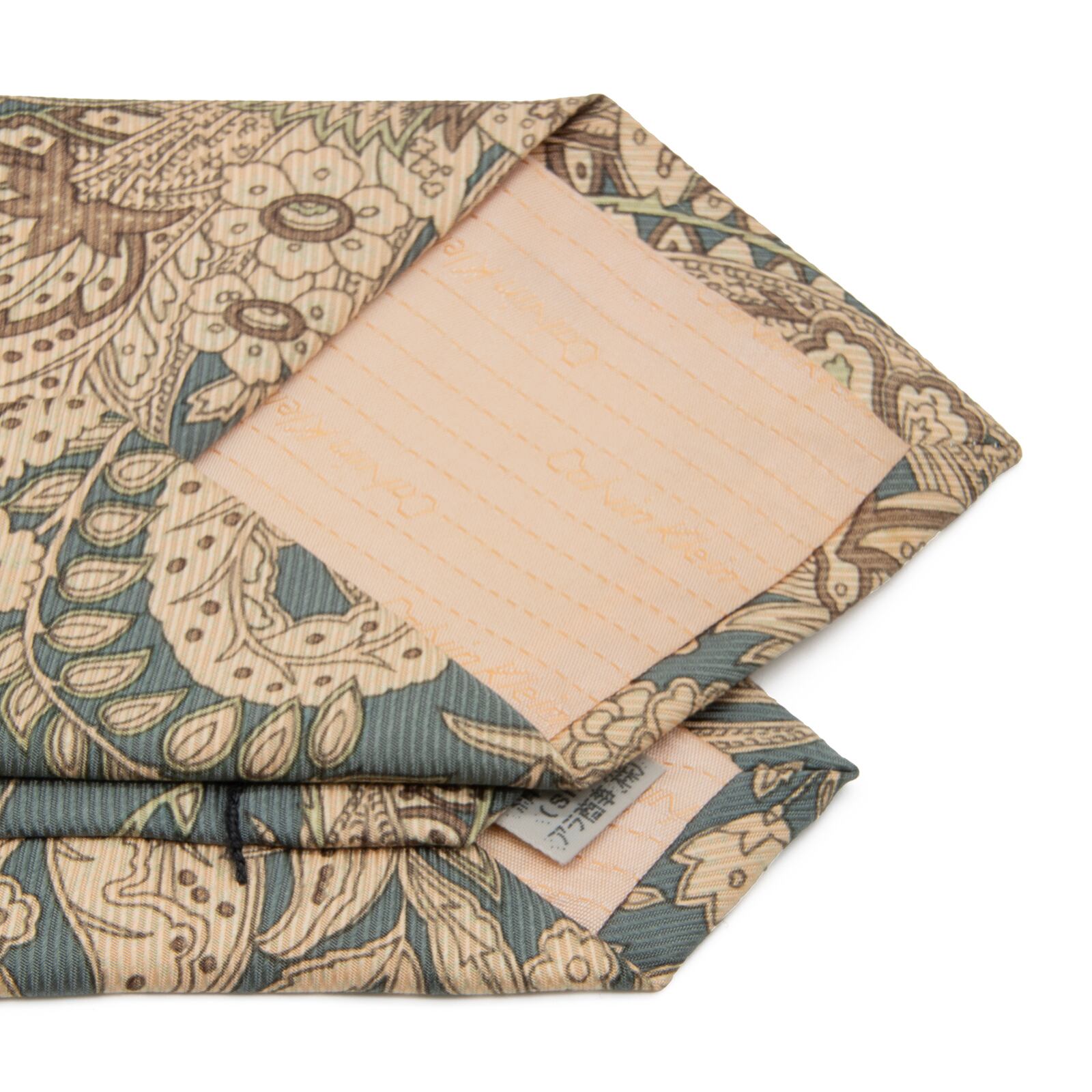 送料無料 カルバンクライン ネクタイ レギュラータイ 新品同様 シルク 青 グレーブルー ベージュ 茶色 黄緑色 花 葉 リーフ ブランド P163