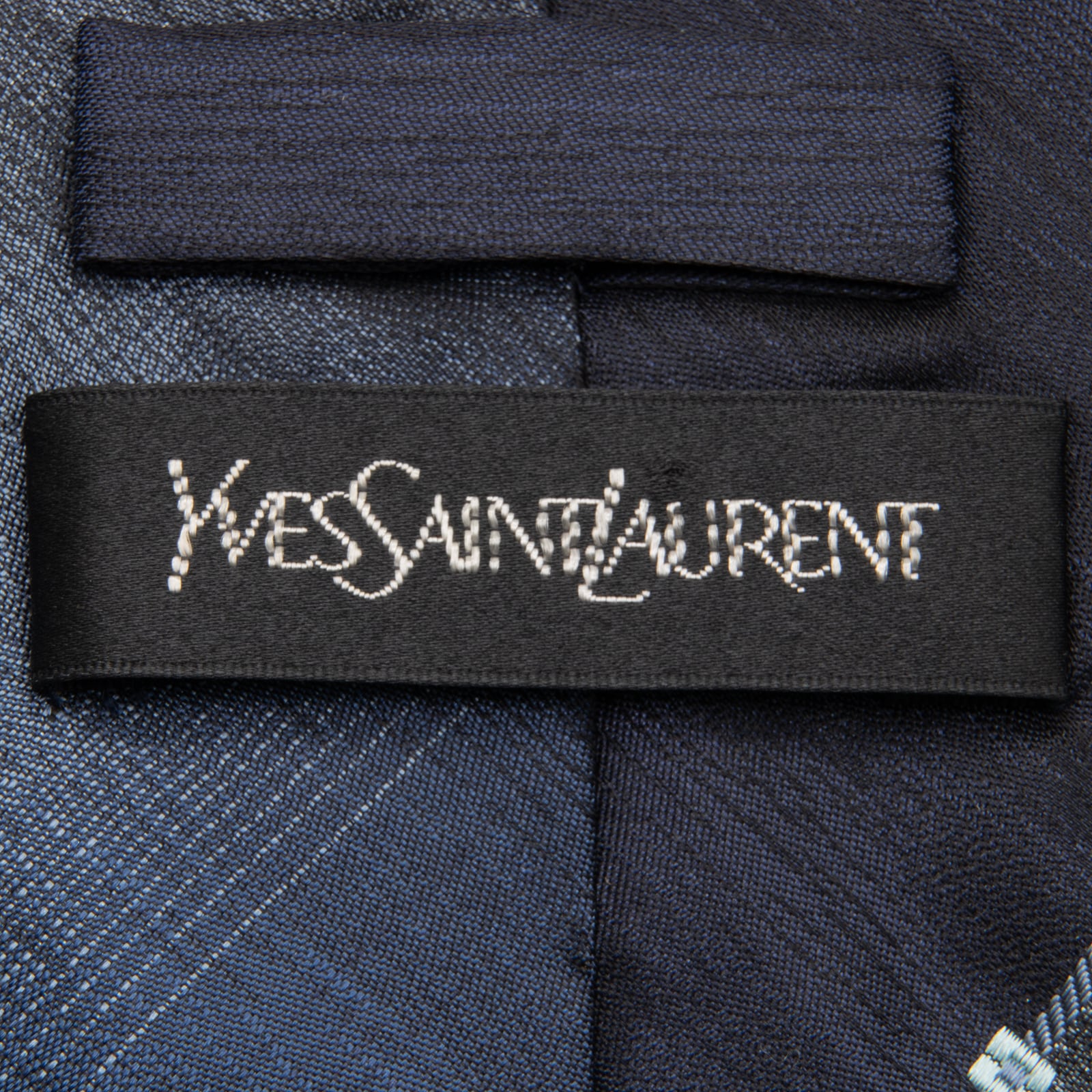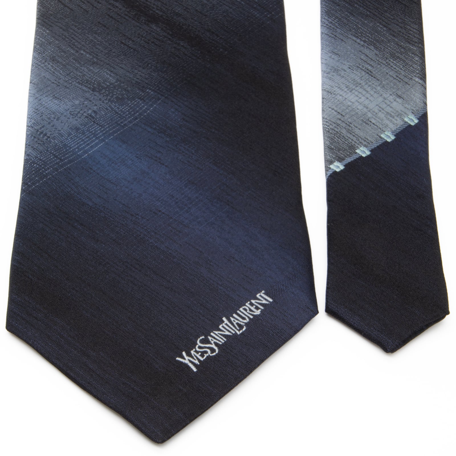送料無料 サンローラン ネクタイ ジャガードタイ 新品同様 シルク ネイビーブルー 黒 グレー 水色 ロゴ グラデーション 光沢 珍しい P165
