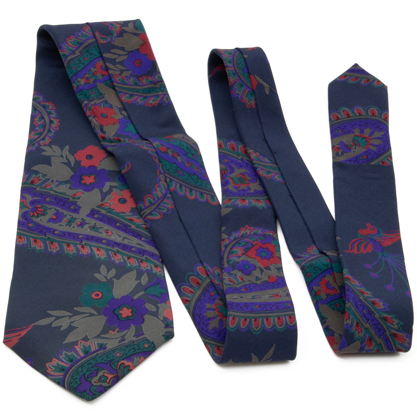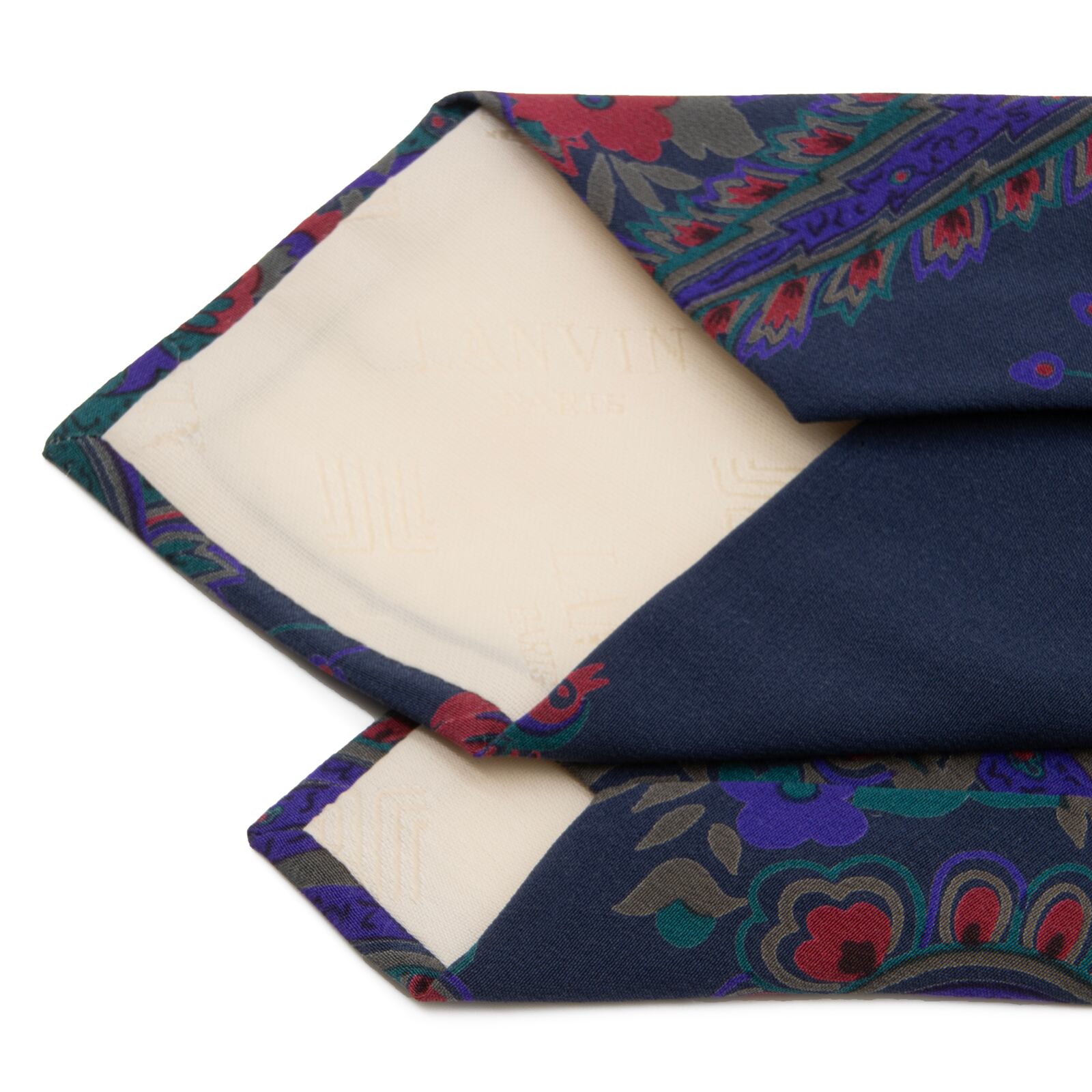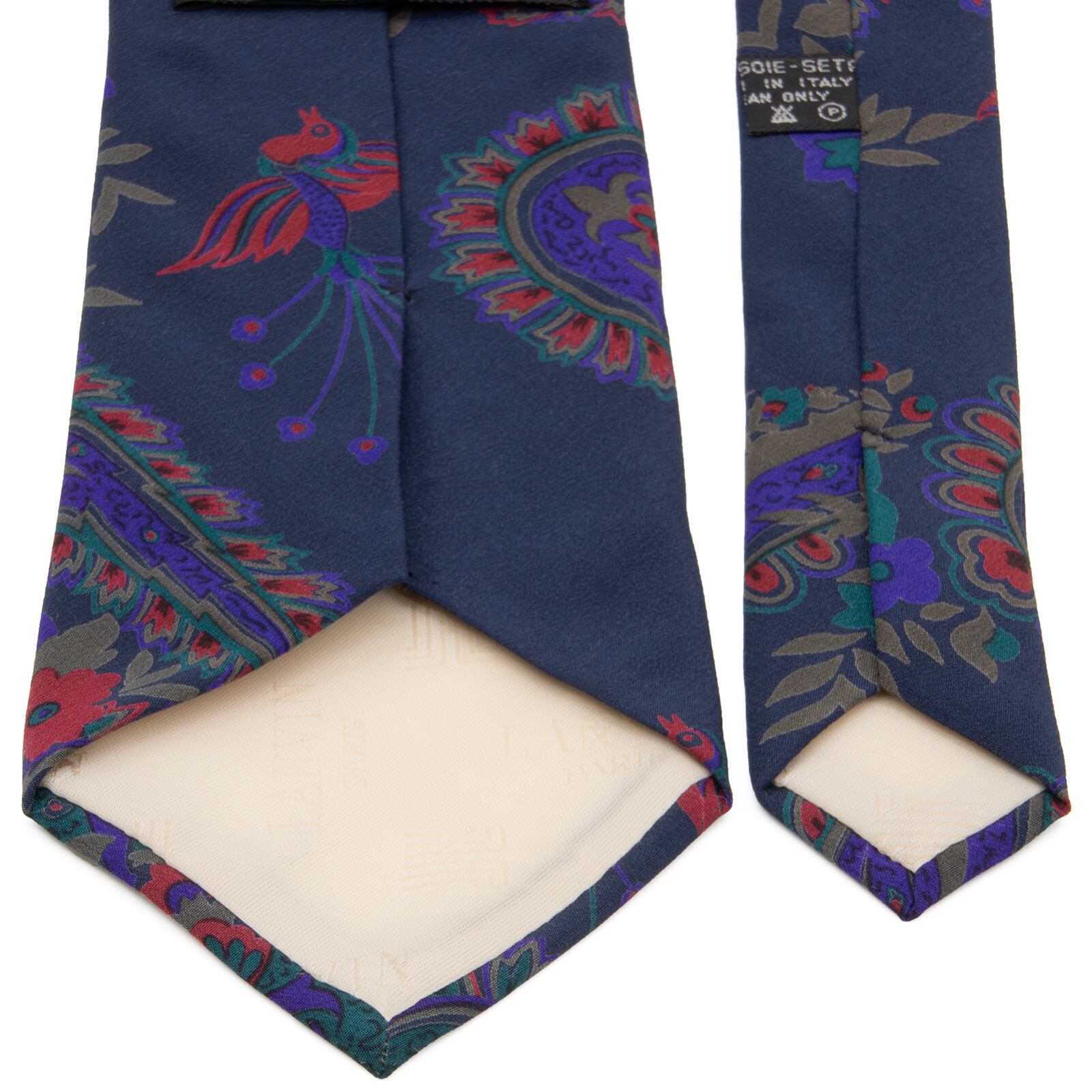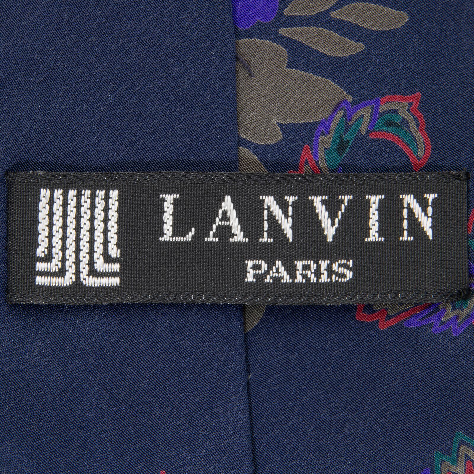 送料無料 ランバン ネクタイ レギュラータイ 新品同様 シルク ネイビーブルー グレー 紫 赤 緑 ペイズリー 花 鳥 ブランド イタリア製 P169