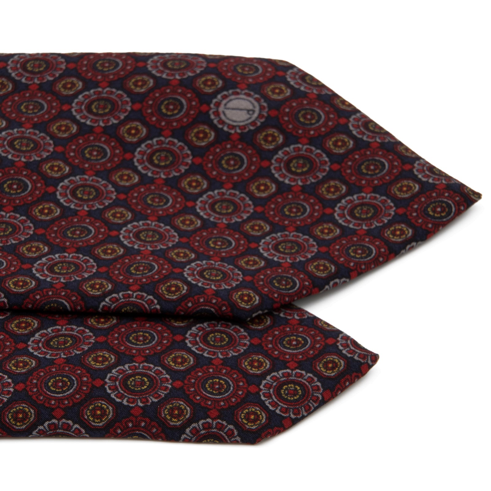 まるで貴族の紋章のように、クラシカルで緻密なメダリオン柄が、ネクタイ全体に規則正しく配置されております。