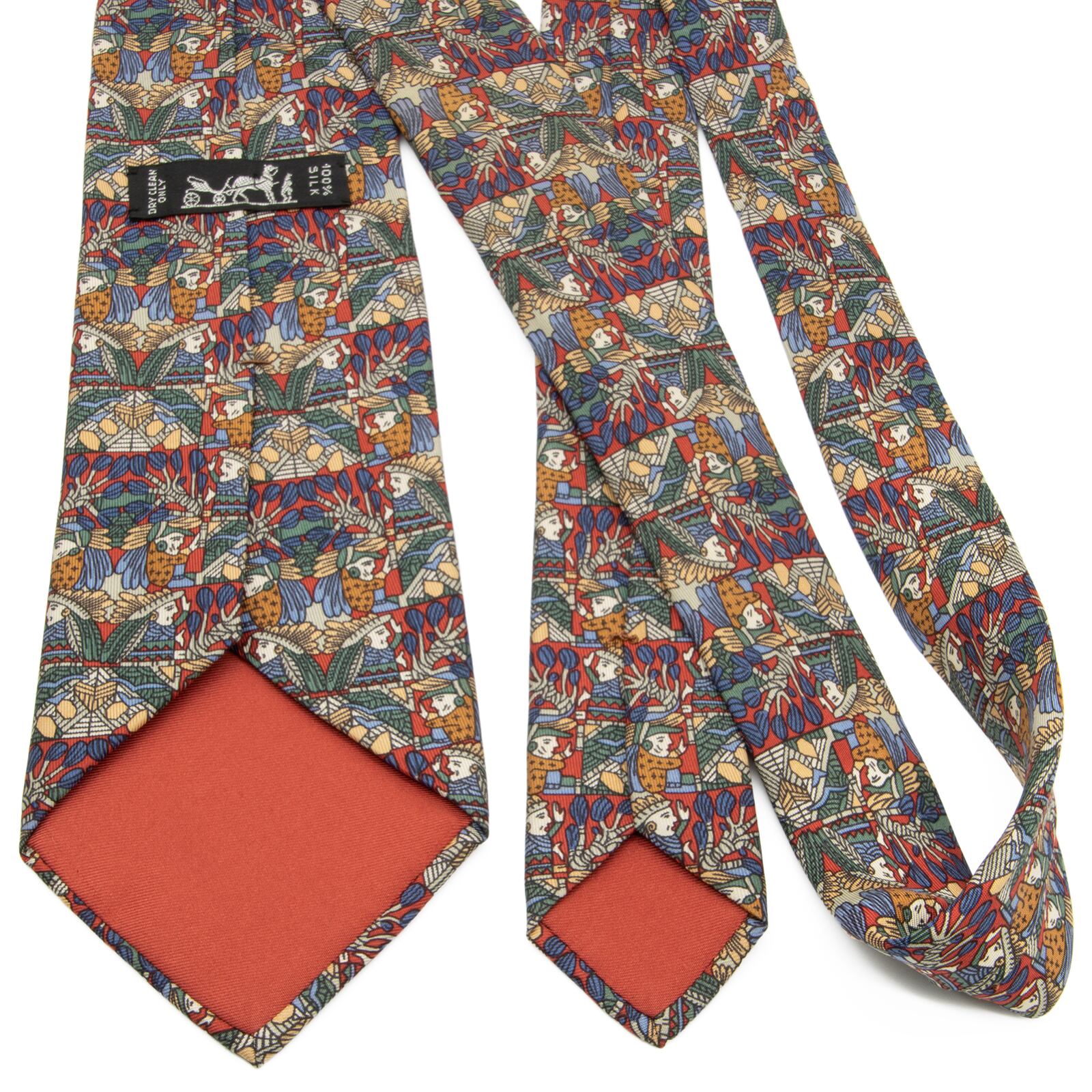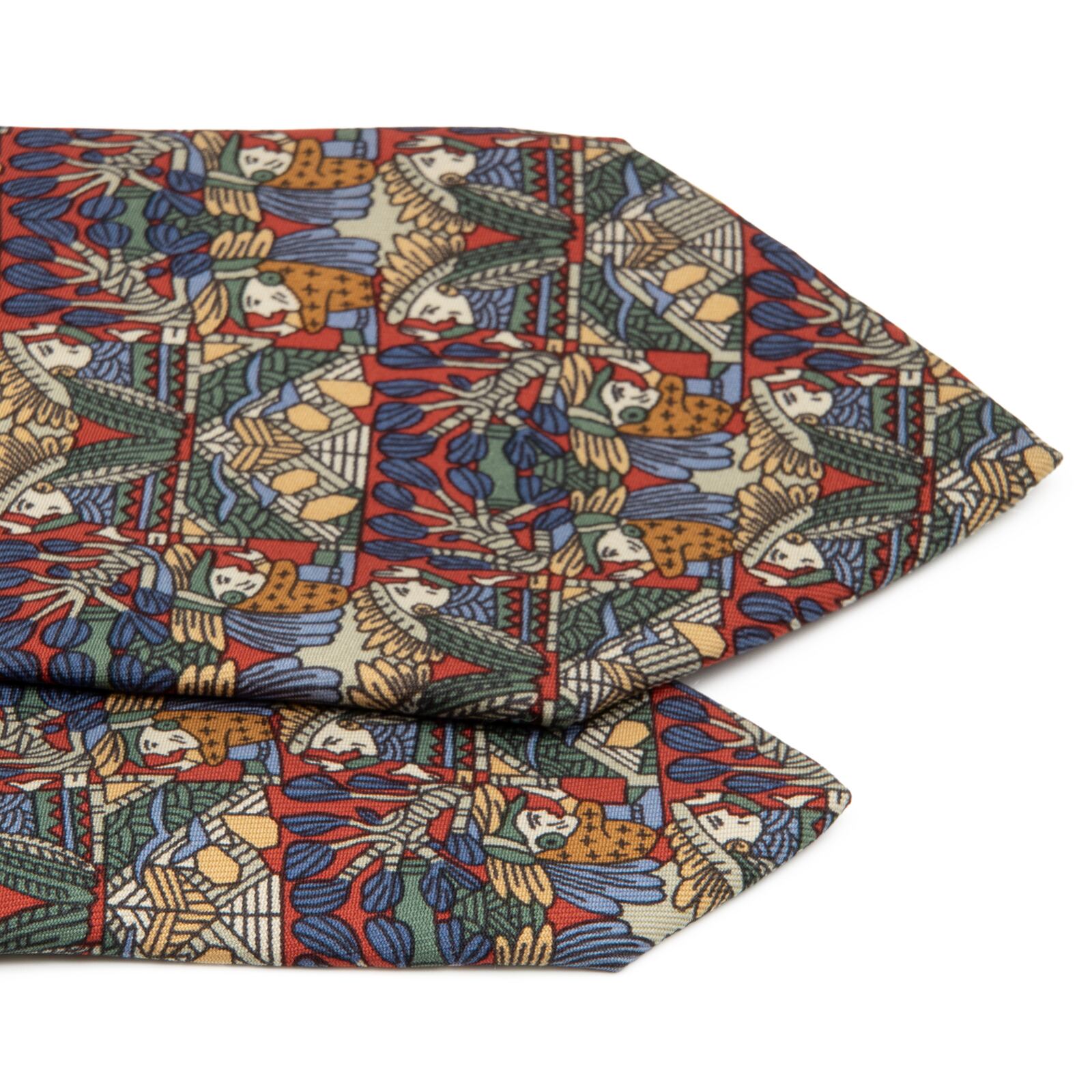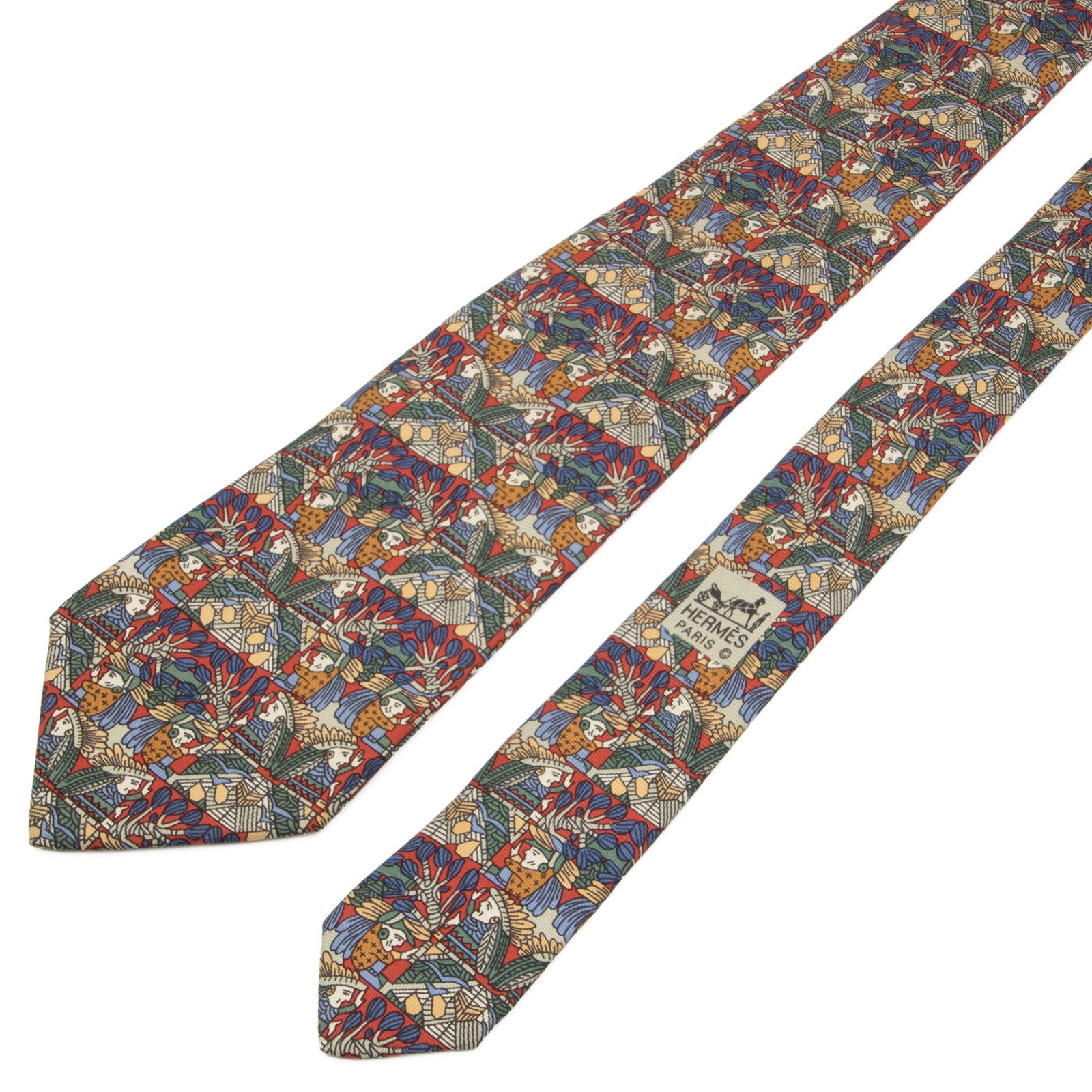 送料無料 エルメス ネクタイ レギュラータイ シルク 緑 赤 ネイビーブルー 黄土色 グレー インディアン 葉っぱ リーフ ブランド 綺麗 P246