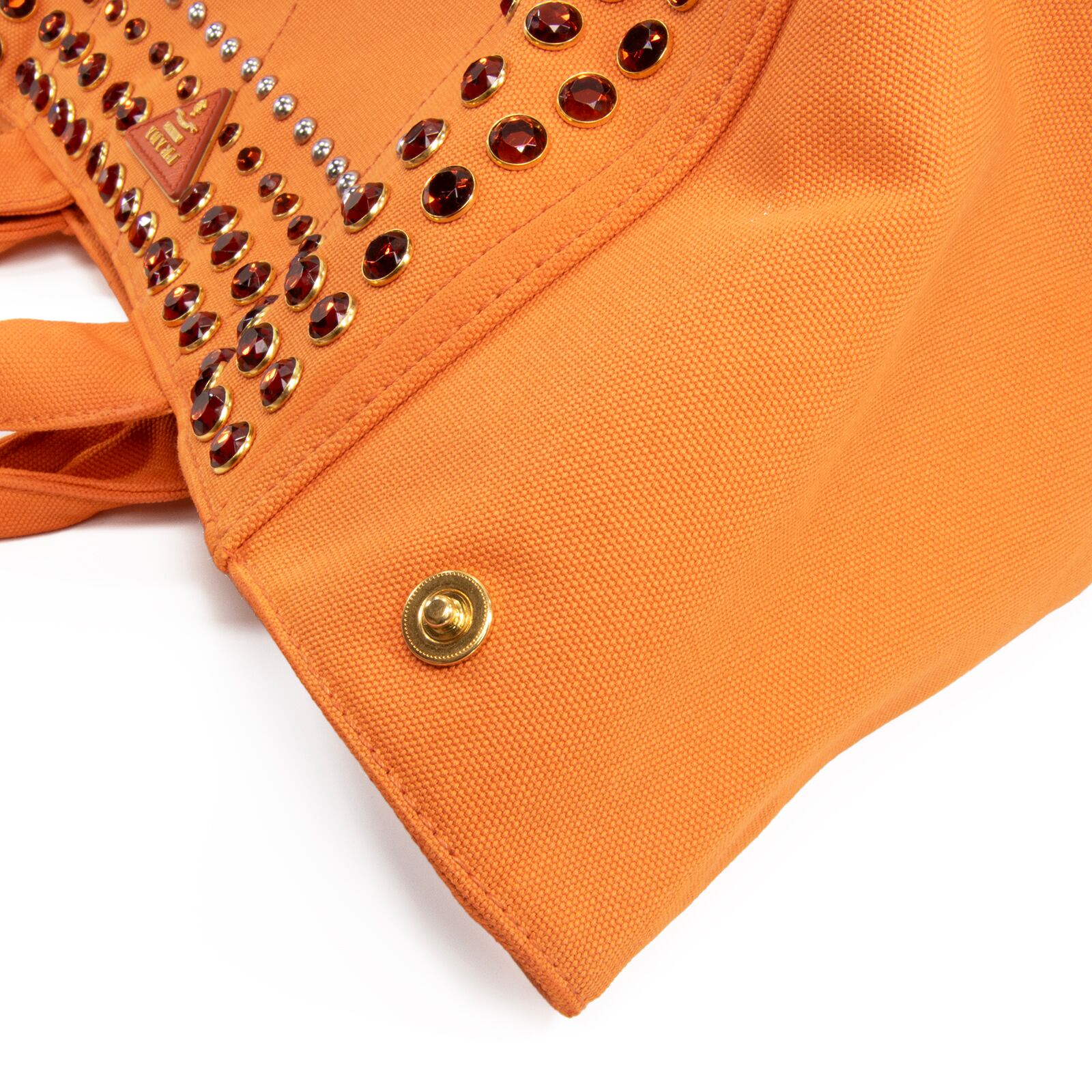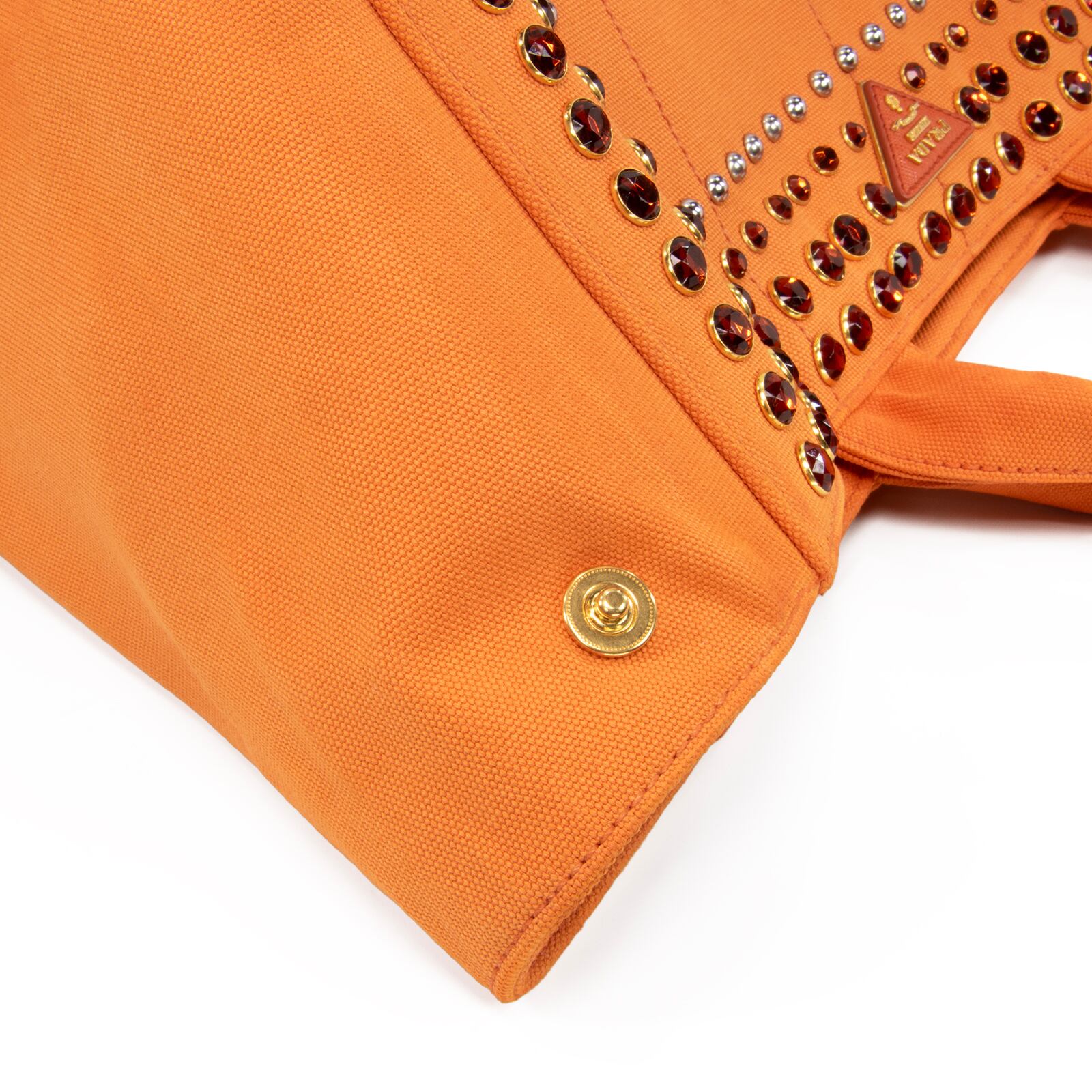 本物 送料無料 プラダ 2WAYショルダーバッグ ハンドバッグ レディース カナパMサイズ オレンジ 斜め掛け スタッズ 三角ロゴ 鞄 バック I246