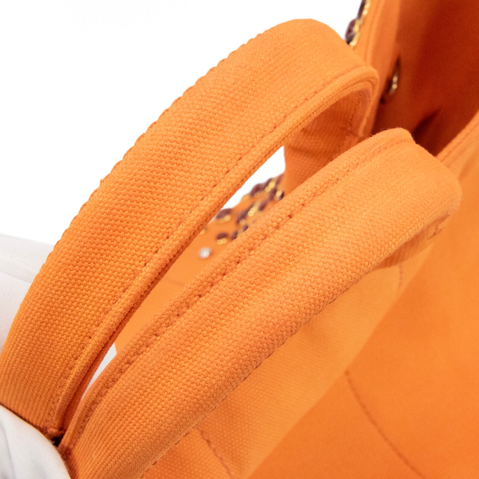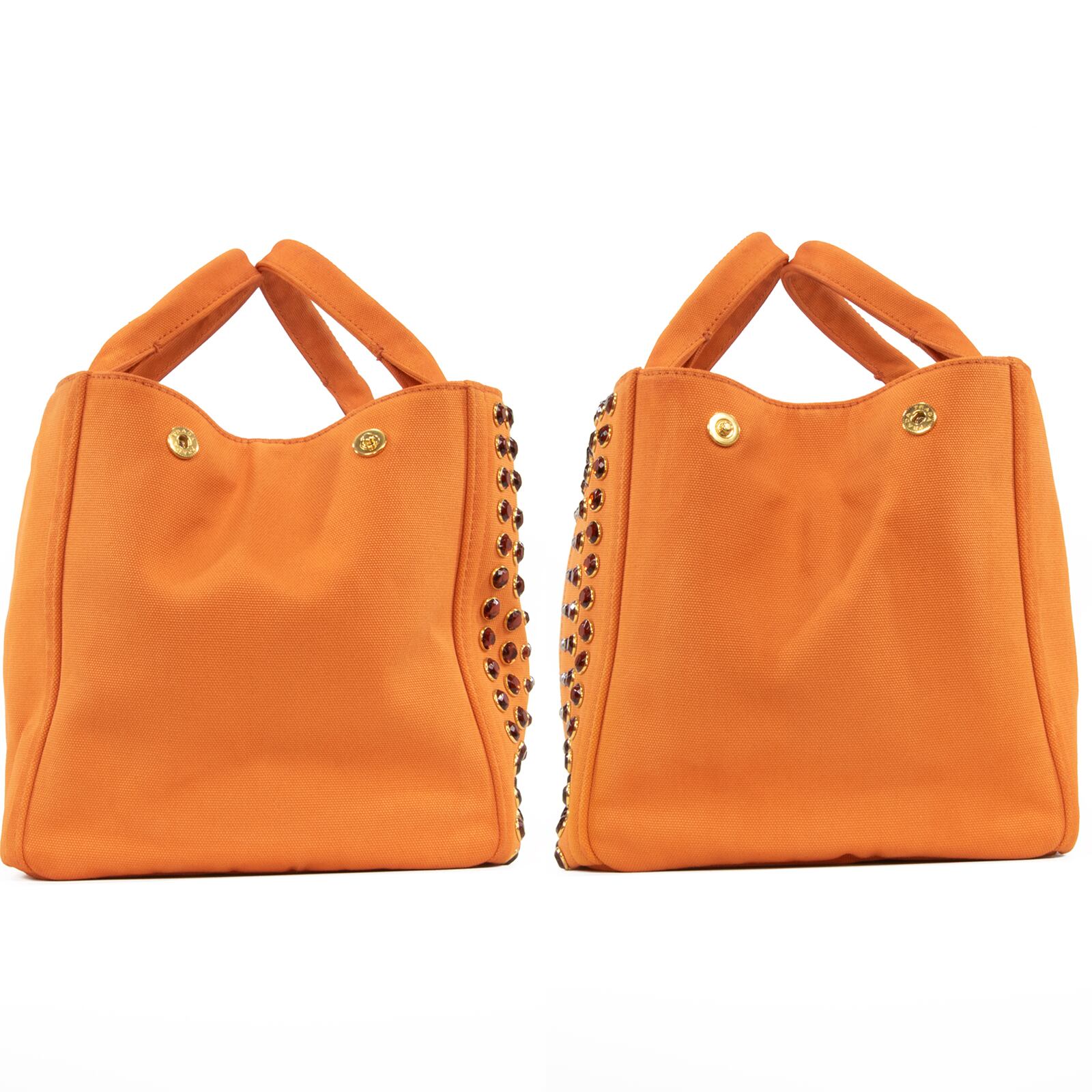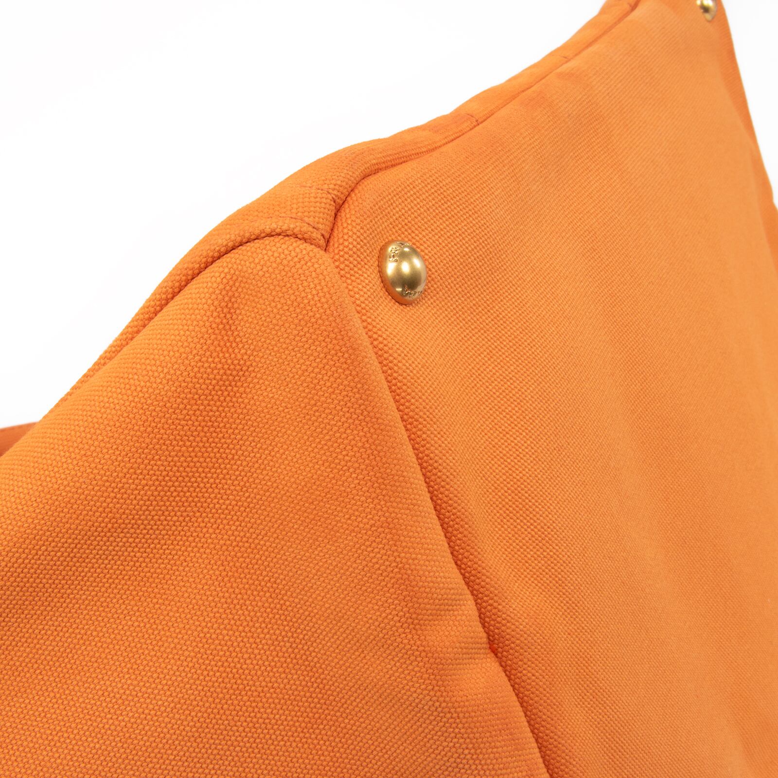 鮮やかなオレンジのキャンバス地に、大小様々なスタッズがきらびやかに輝き、リッチなアクセントを添えます。