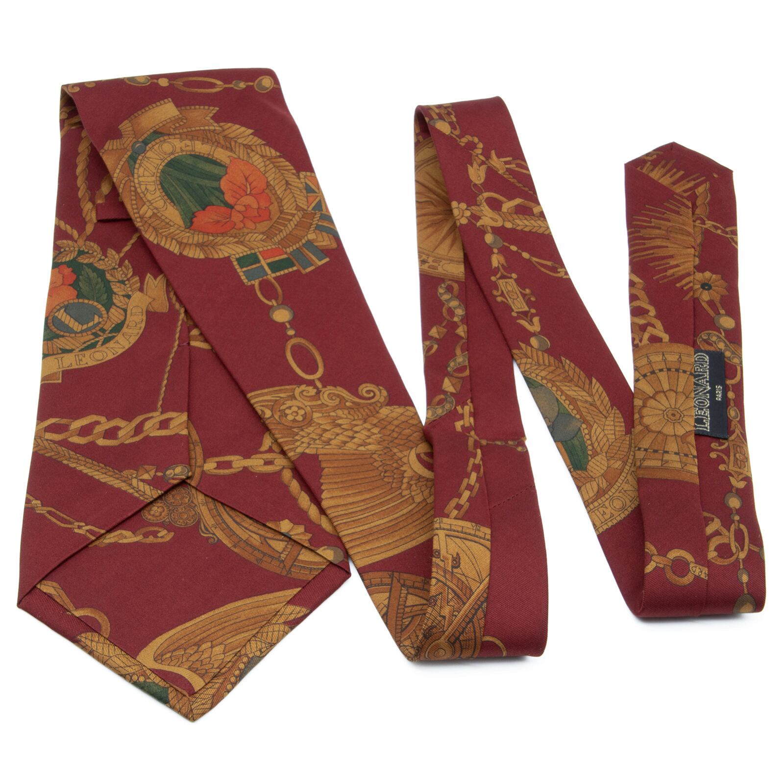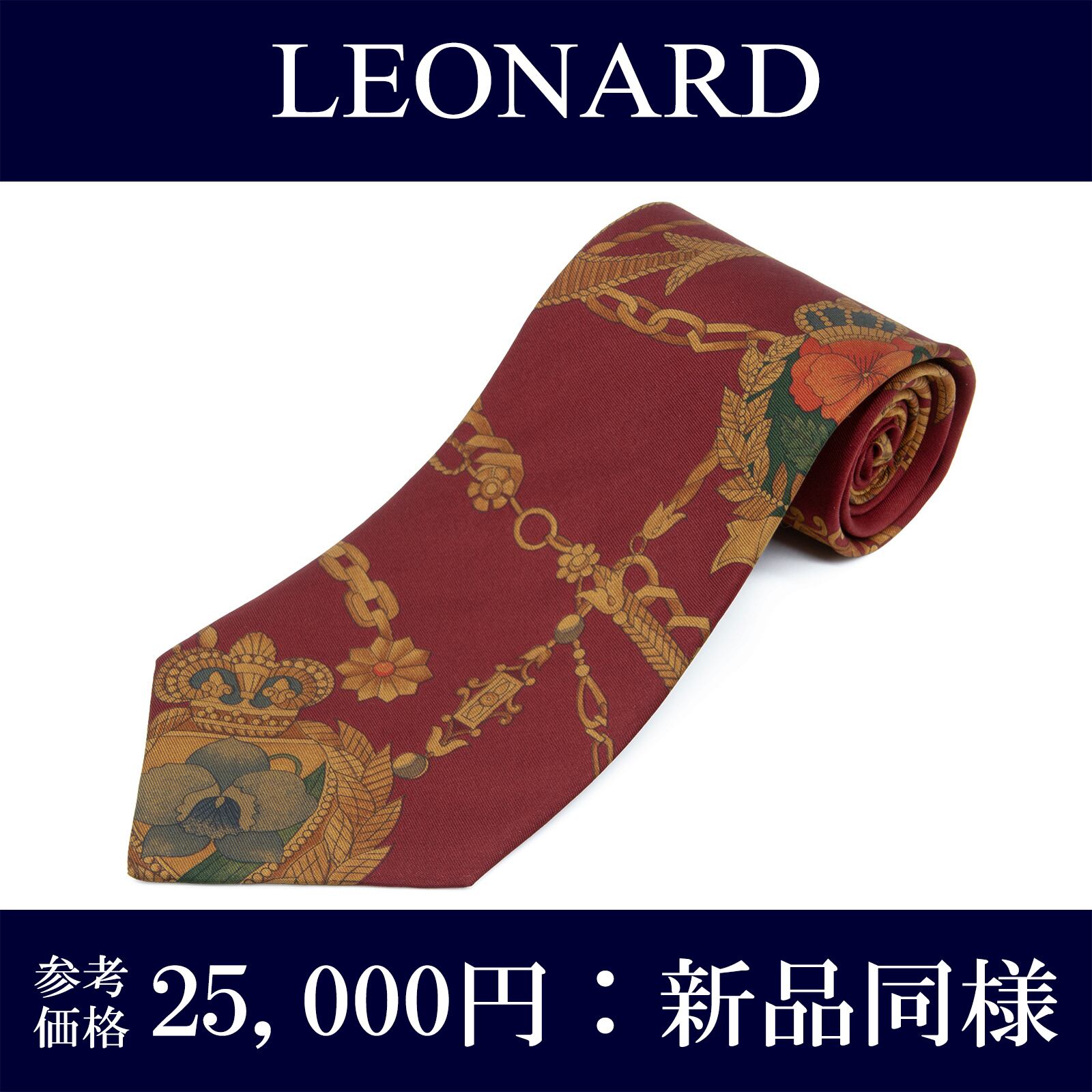送料無料 レオナール ネクタイ 新品同様 シルク 赤茶色 黄土色 緑 グリーン オレンジ チェーン ペンダント ブランド イタリア製 綺麗 N798