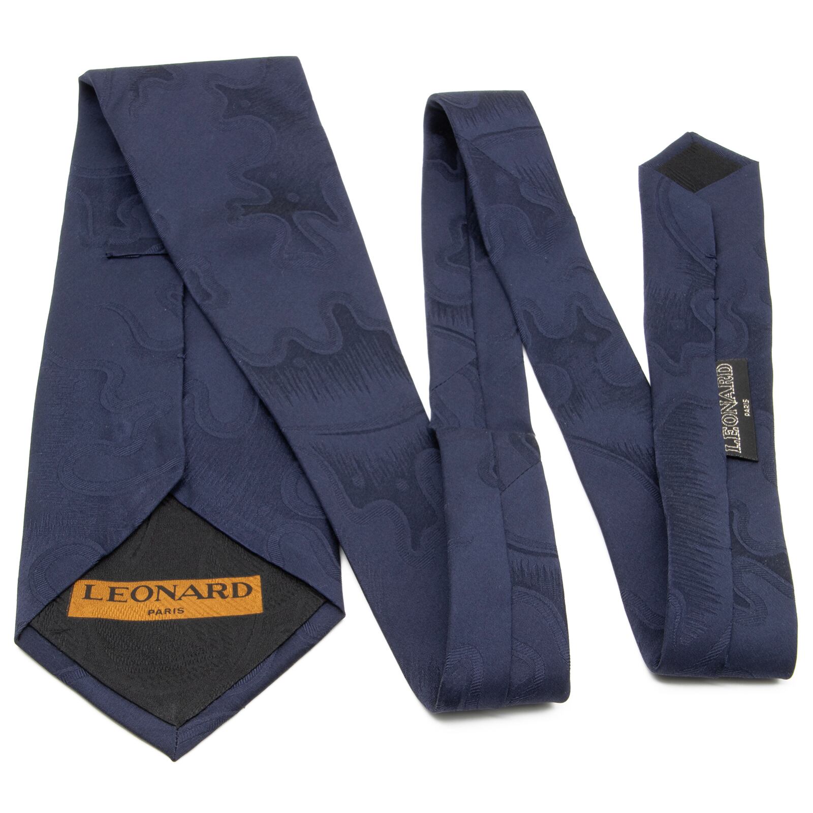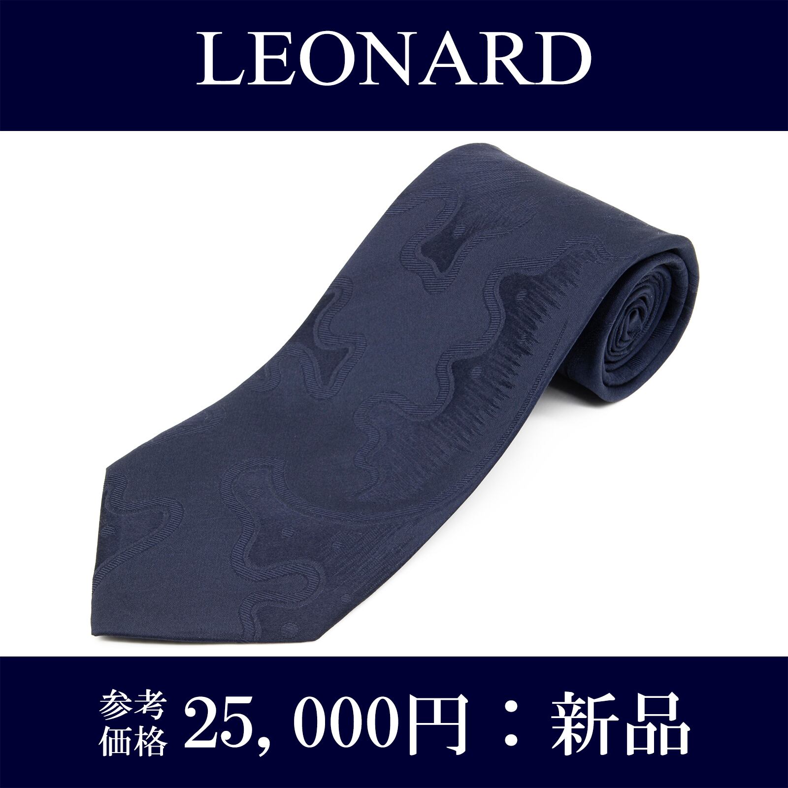 送料無料 レオナール ネクタイ レギュラータイ ジャガード 新品 シルク 青 ネイビーブルー 光沢 アメーバ ブランド イタリア製 綺麗 N799