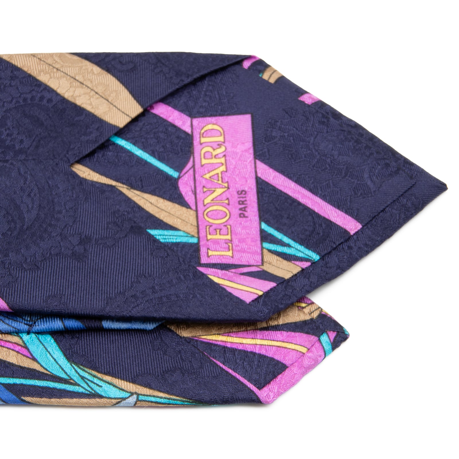 こちらは胸元から華やかな存在感を放つことができる、レオナールのネクタイでございます。