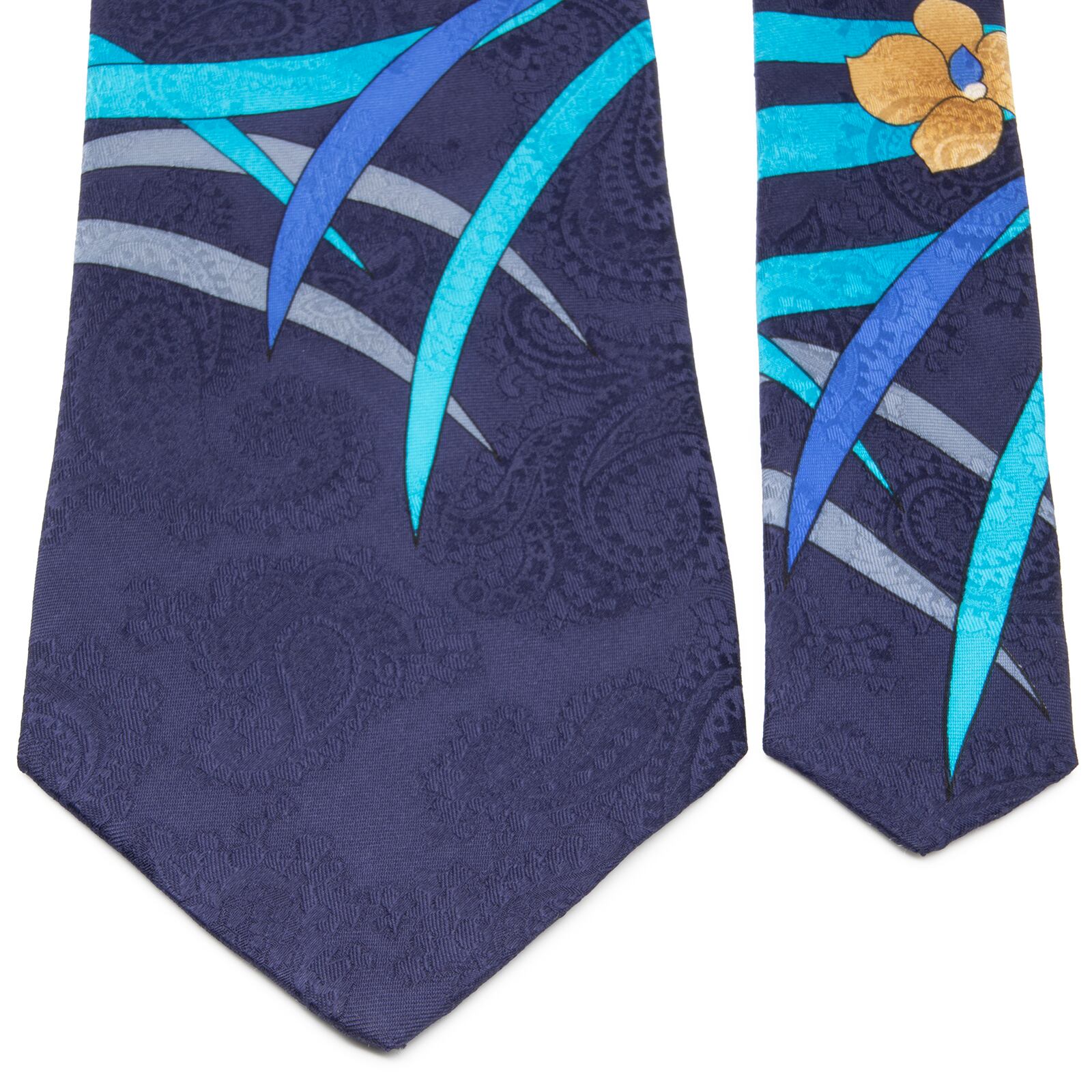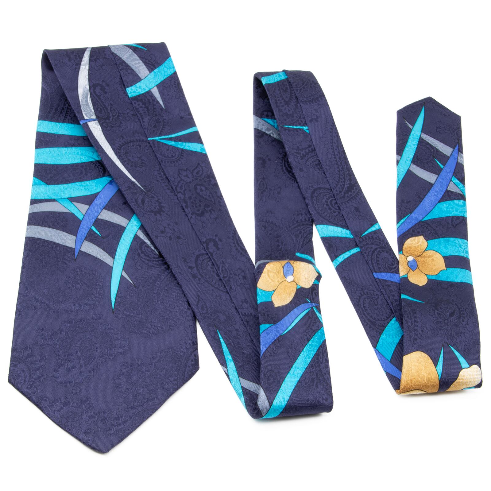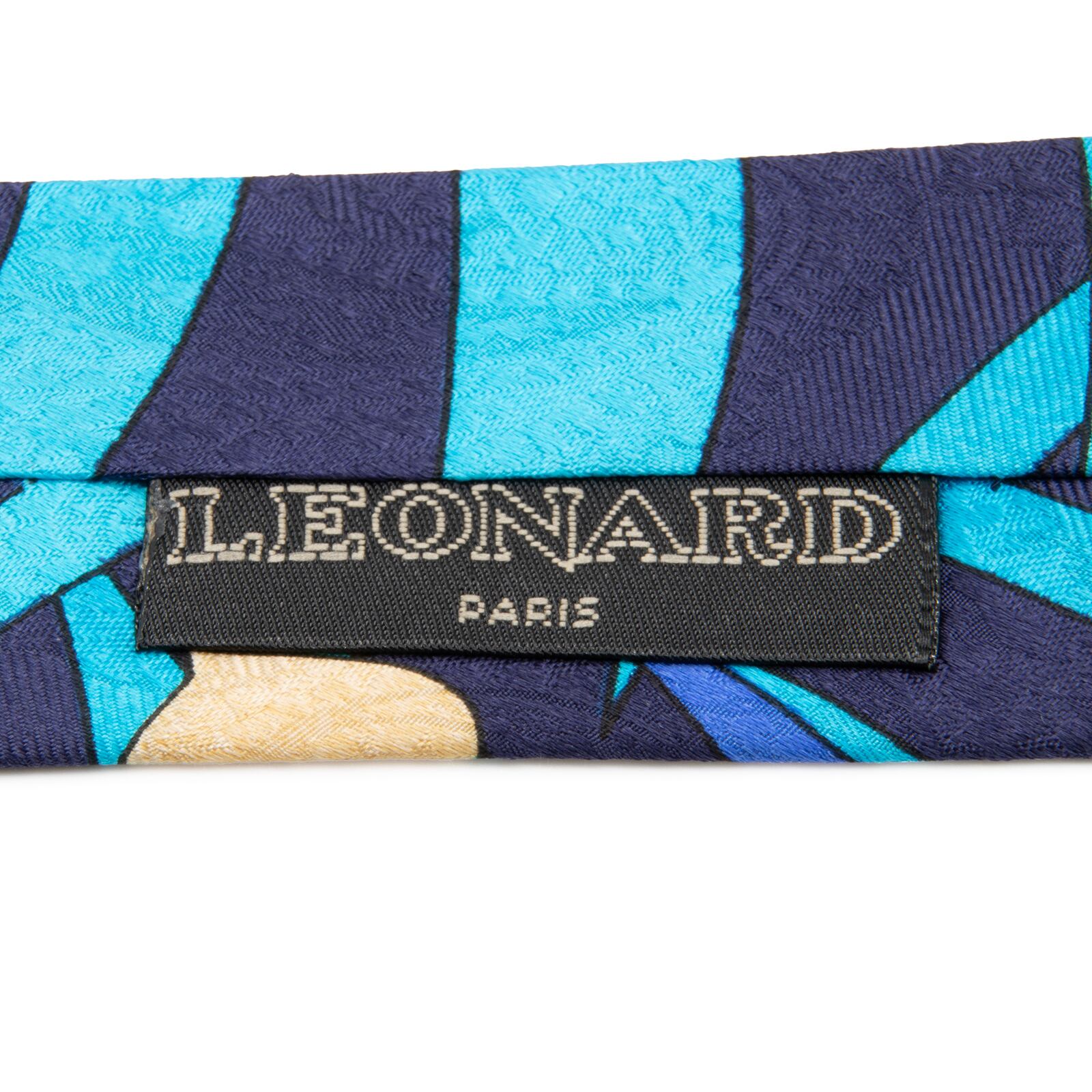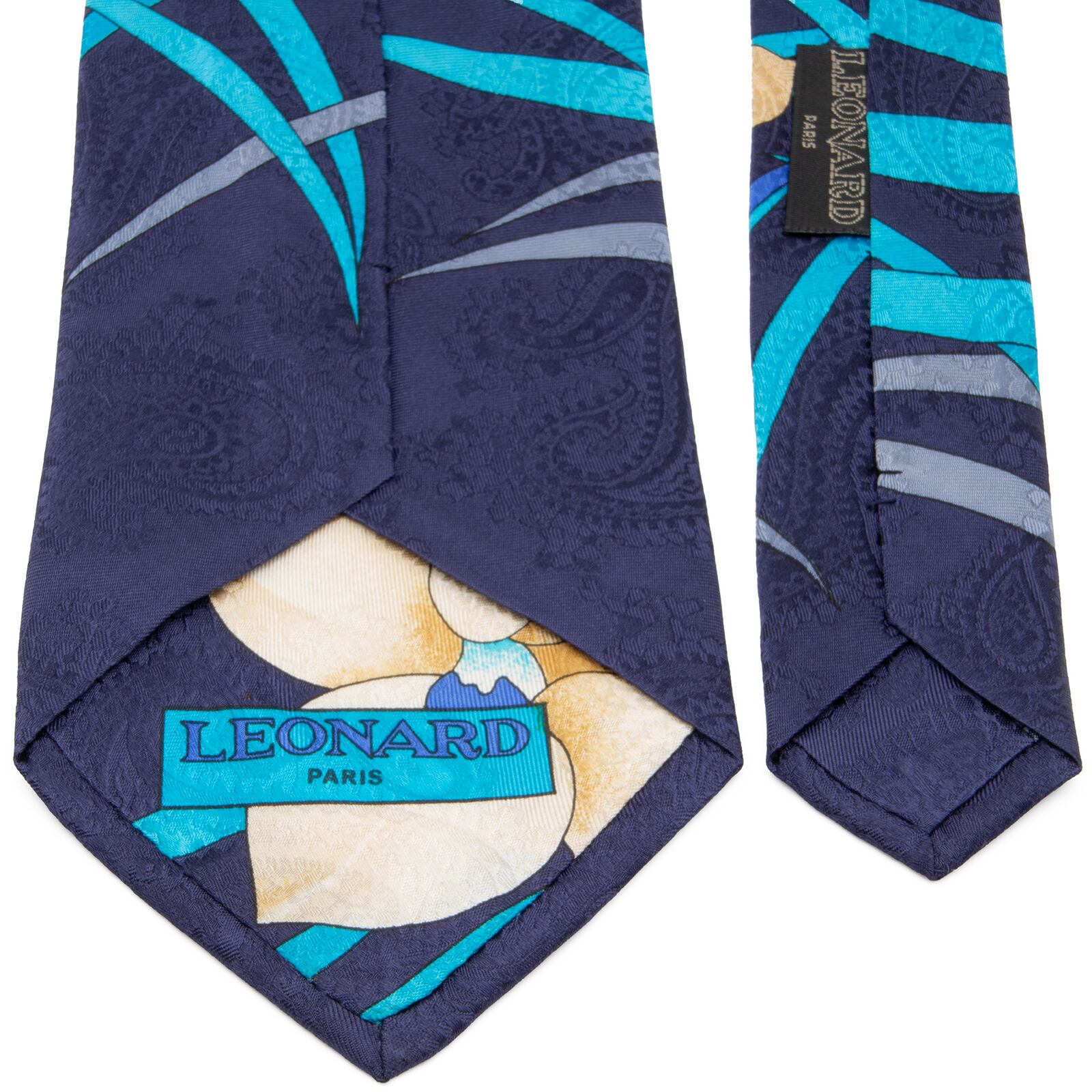 送料無料 レオナール ネクタイ レギュラータイ 新品 シルク ネイビーブルー 水色 ゴールド ペイズリー 花 光沢 ブランド イタリア製 N858
