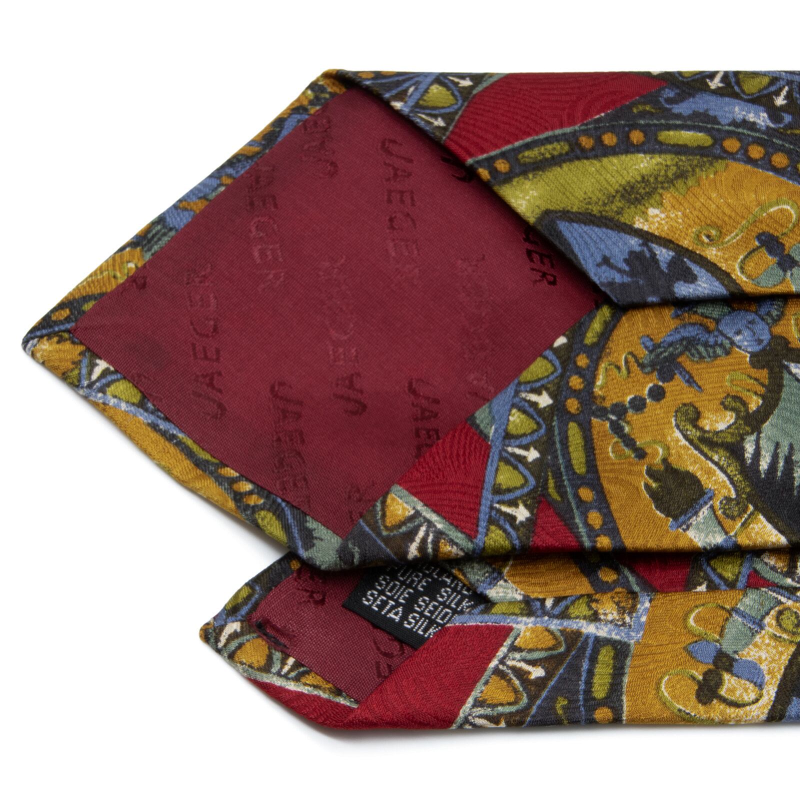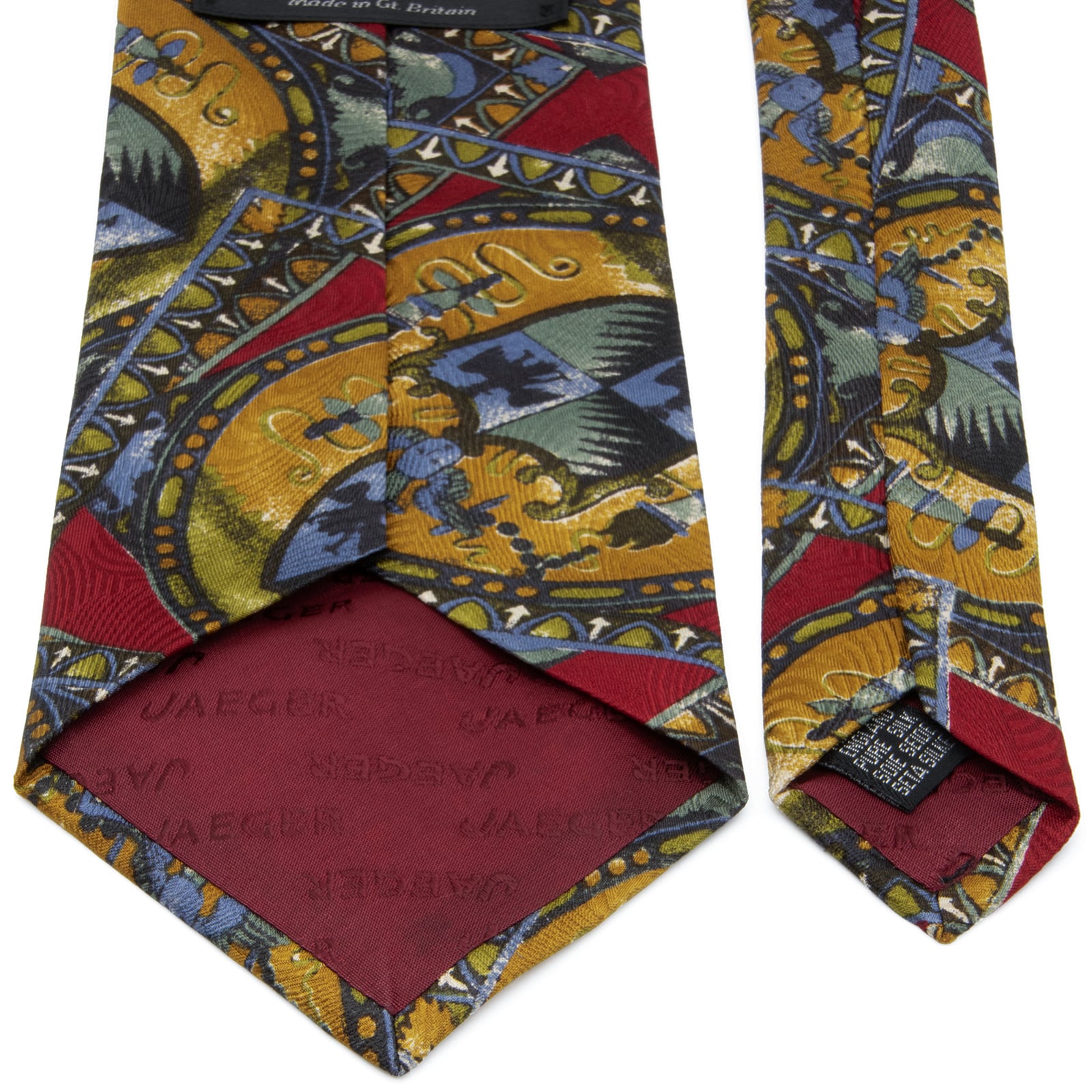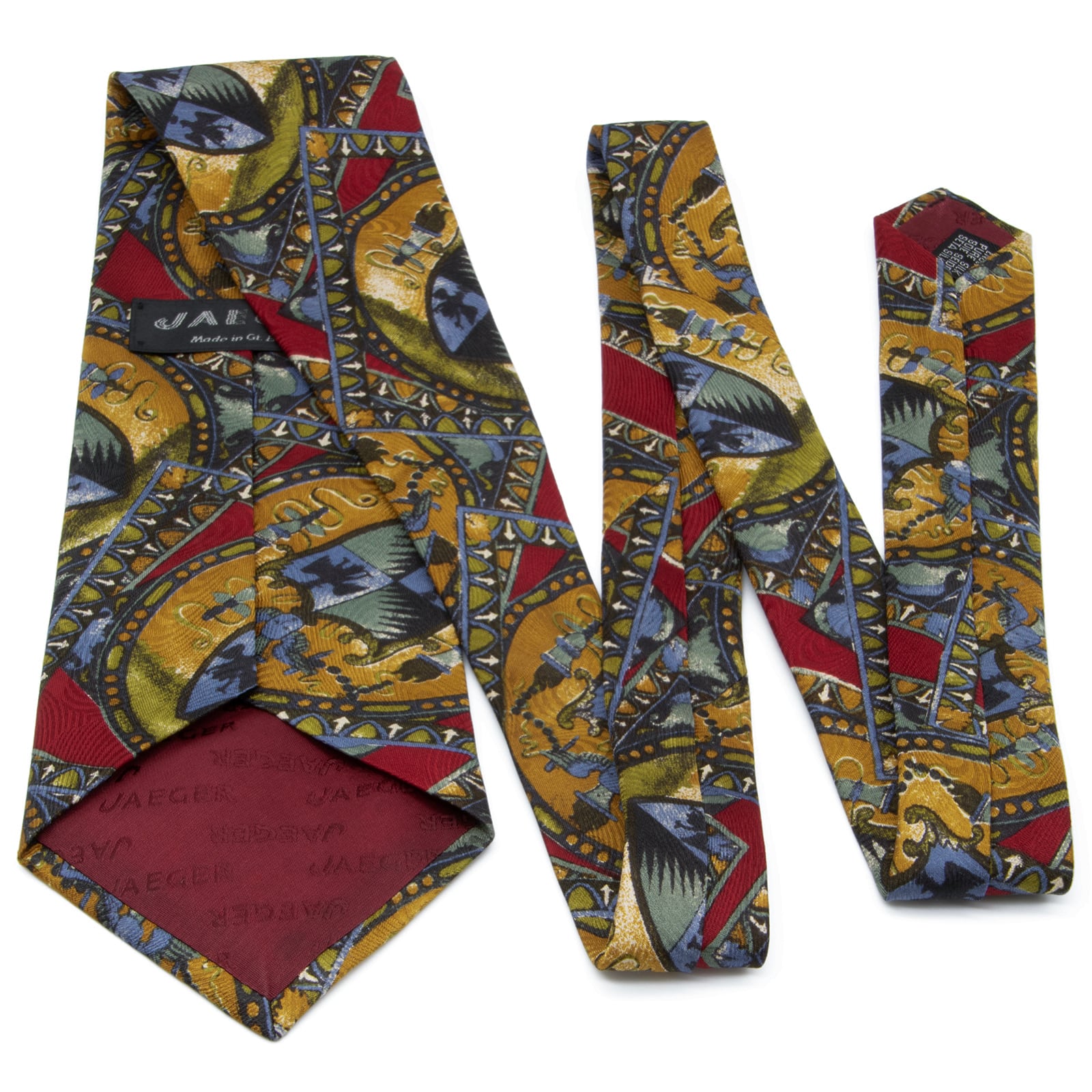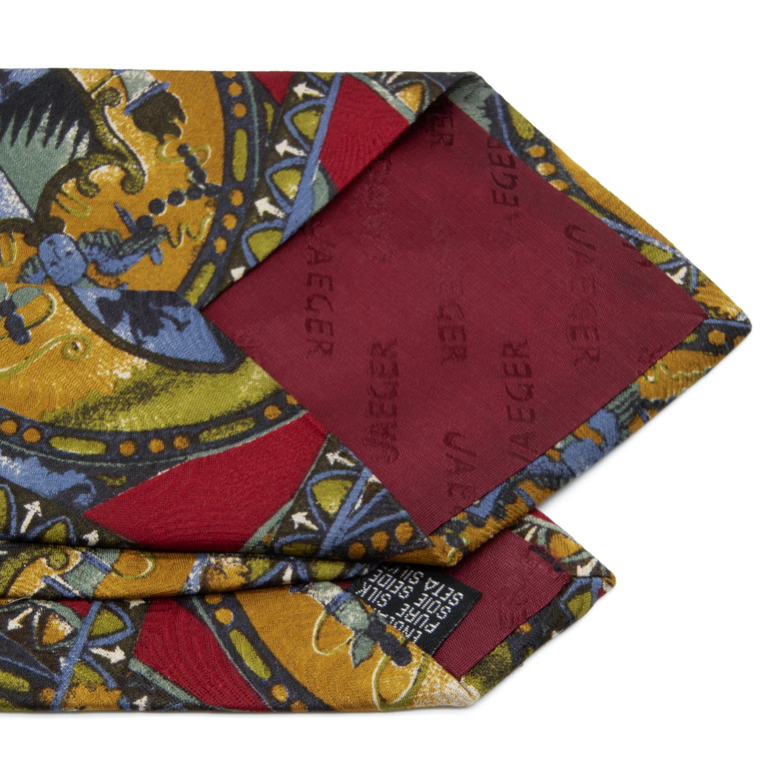 送料無料 イェーガー ネクタイ 新品同様 シルク 黄土色 赤 ワインレッド 青 ネイビーブルー ビジネス カジュアル 紋章 ブランド 綺麗 P151