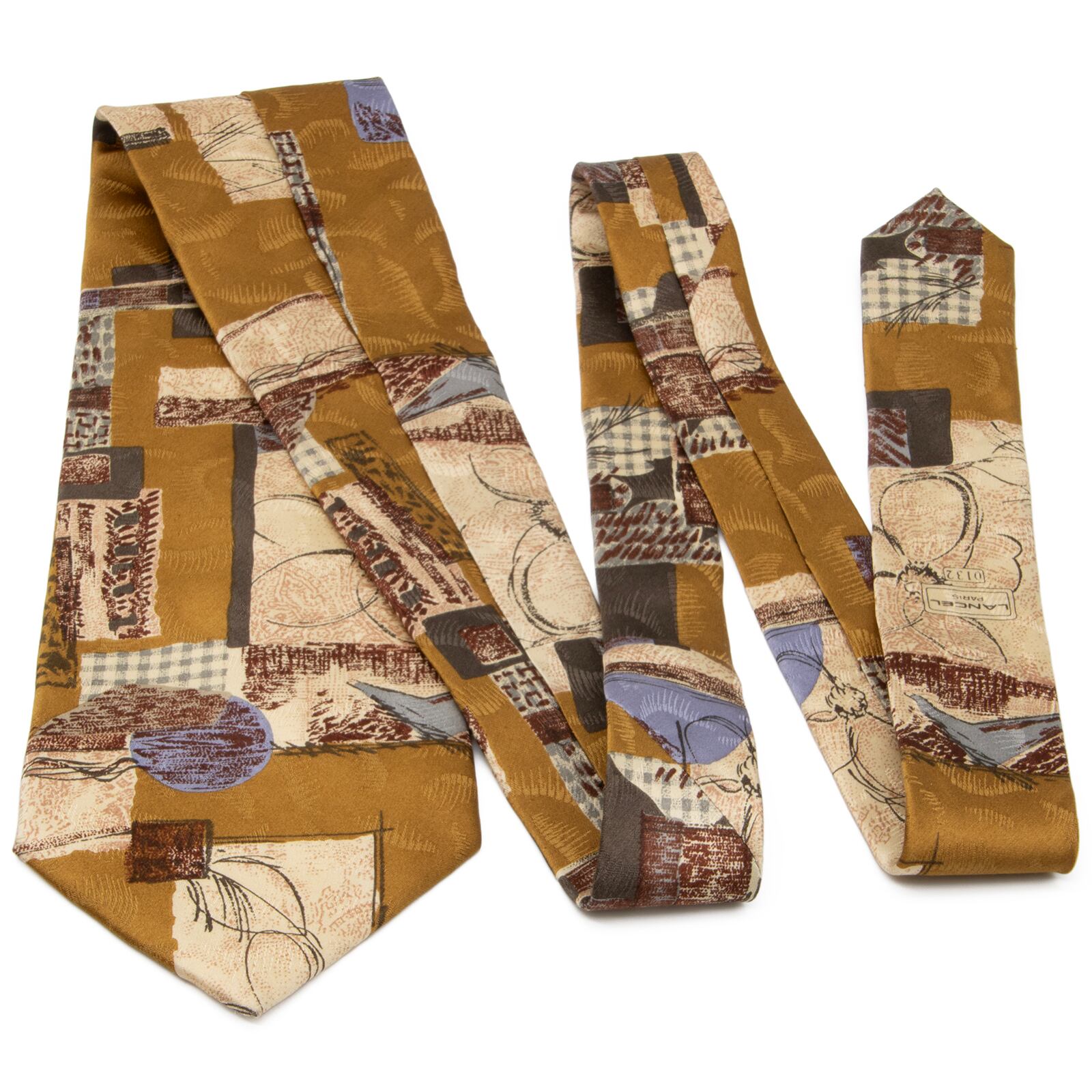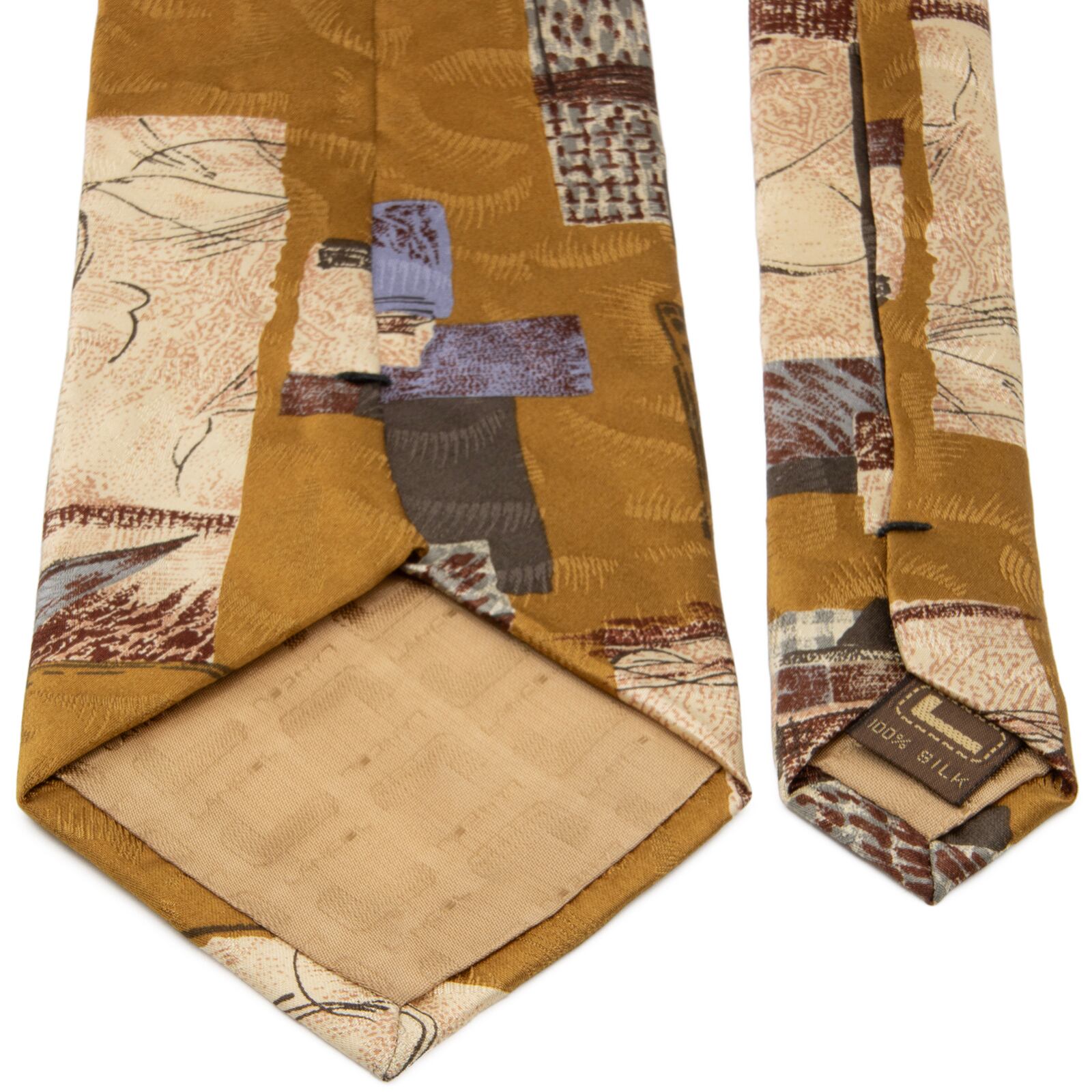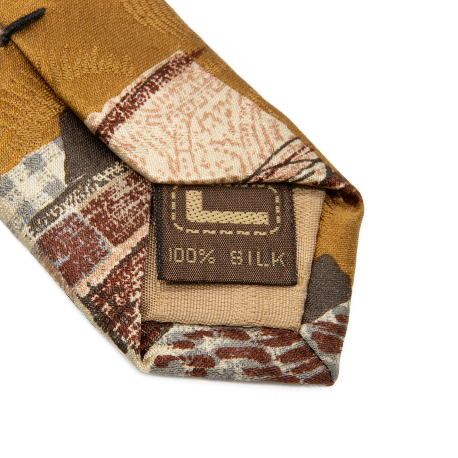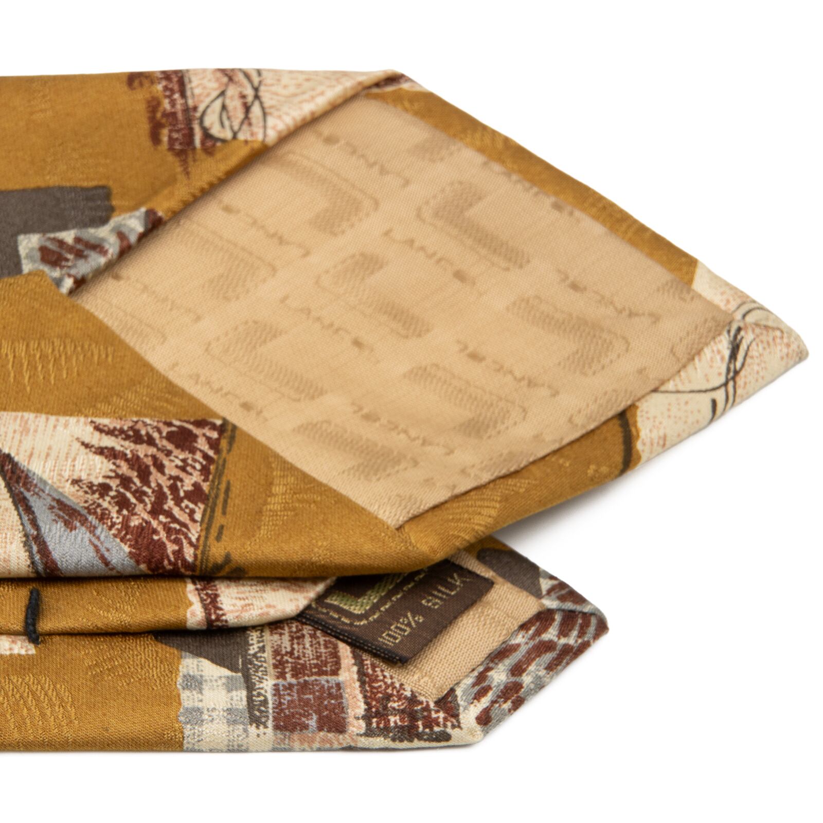 送料無料 ランセル ネクタイ シルク ゴールド エクリュ 茶色 ブラウン グレー 水色 ビジネス タイル 花 フラワー 光沢 ブランド 綺麗 P153