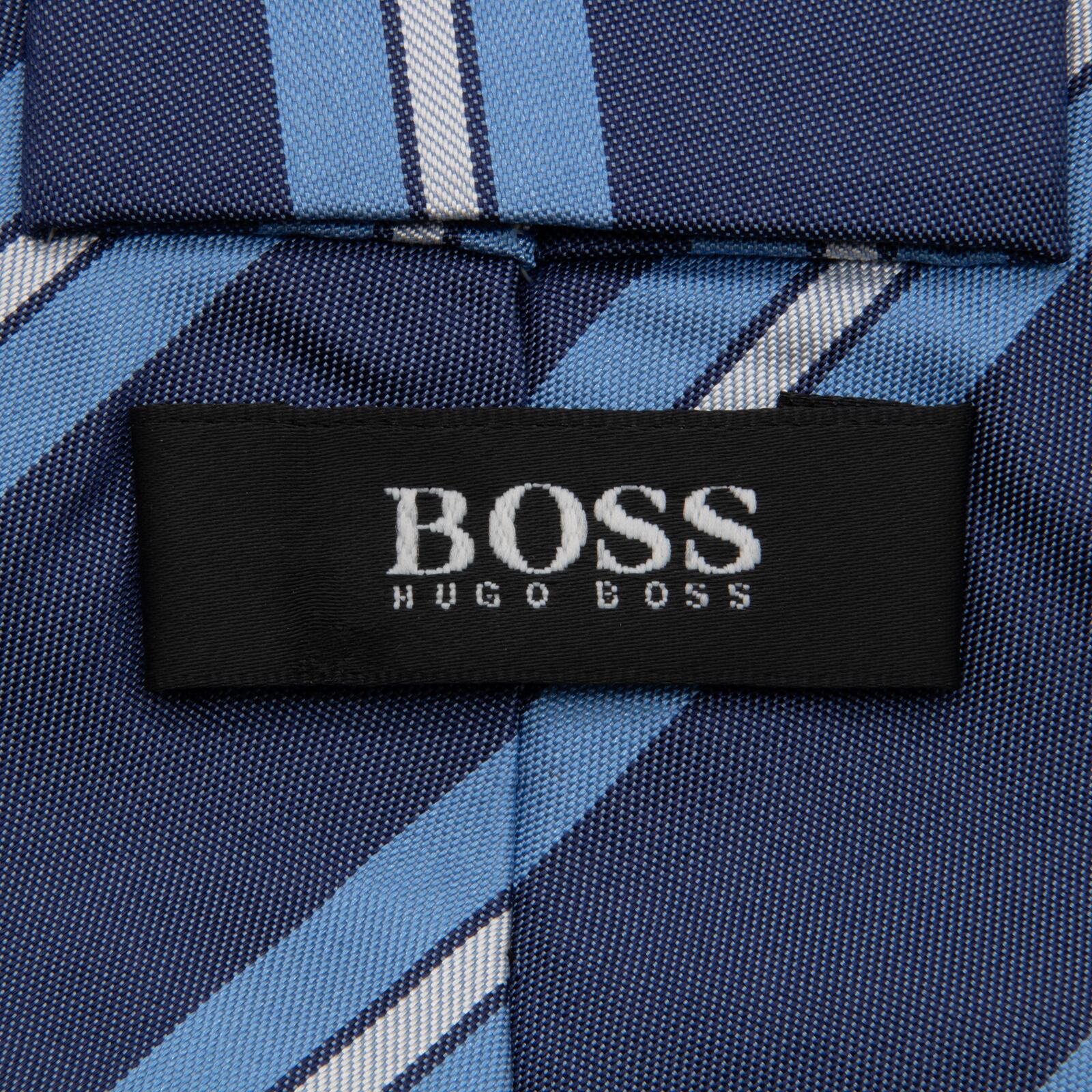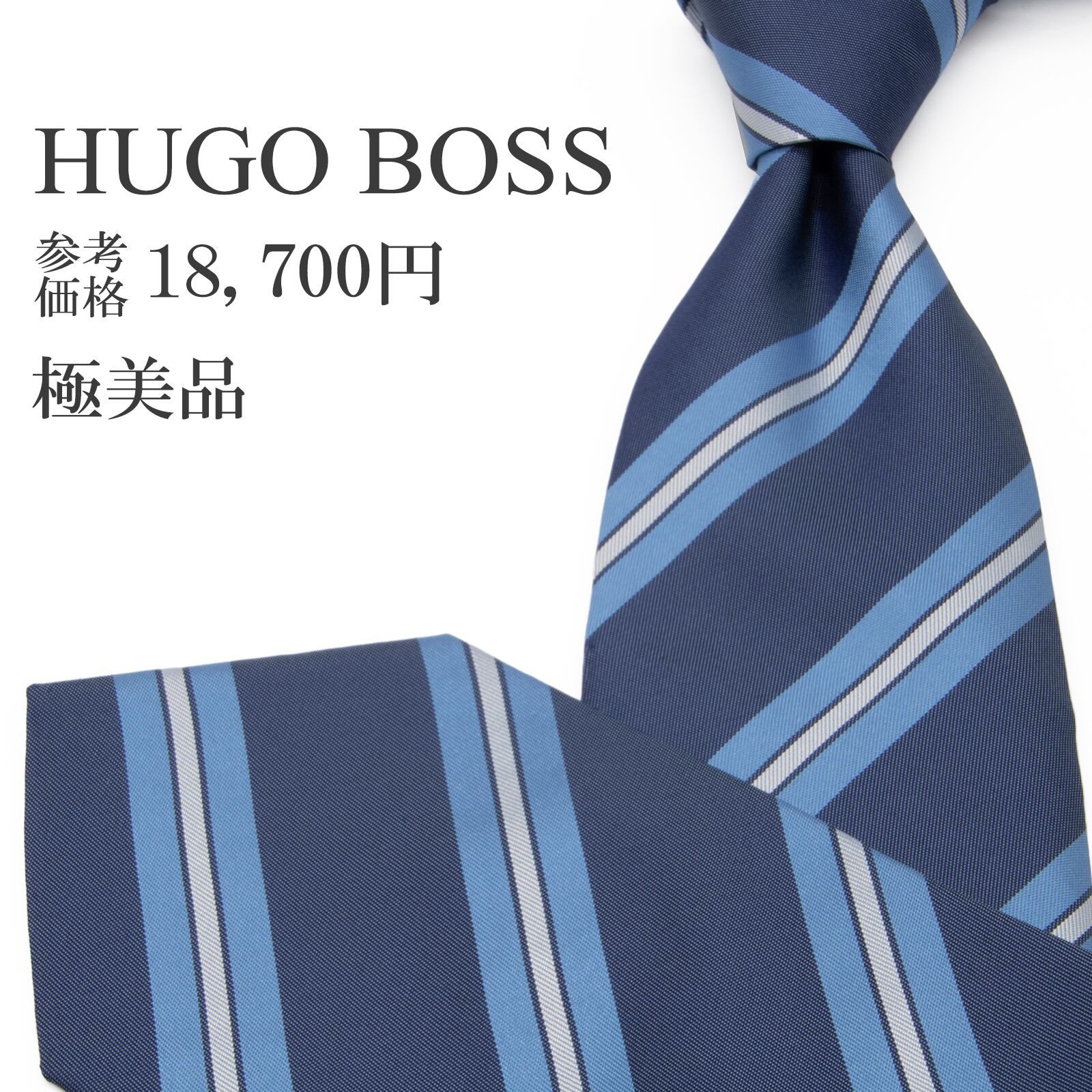 送料無料 ヒューゴボス ネクタイ レギュラータイ ジャガードタイ シルク 青 ブルー 水色 グレー ストライプ ブランド イタリア製 綺麗 P196