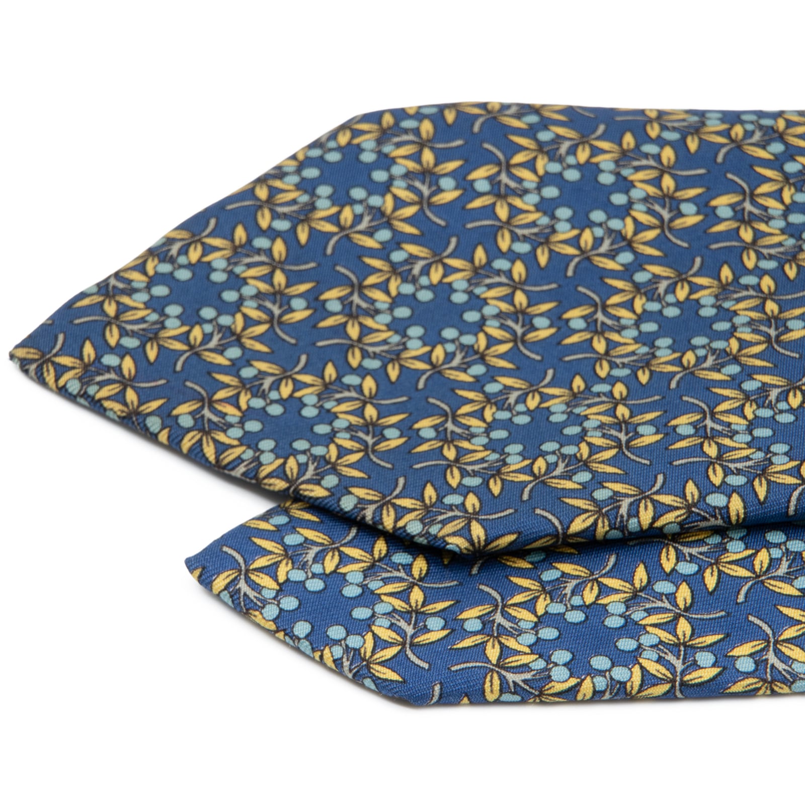 澄んだ空のようなブルーの地に、黄金色の葉と、瑞々しい木の実がデザインされた、大変ナチュラルで、気品あふれる一本です。