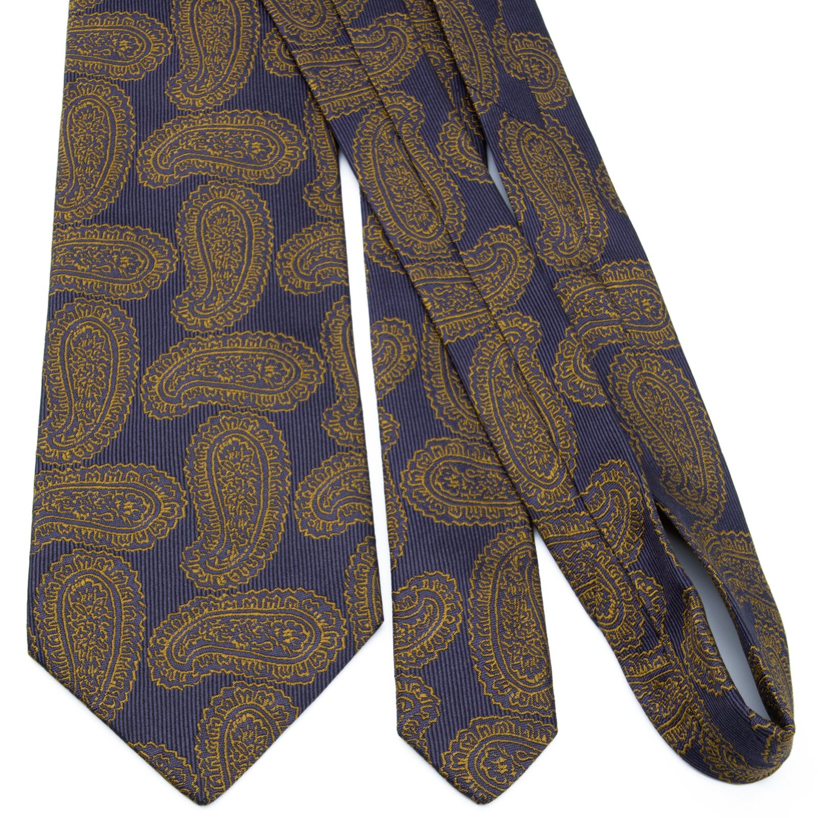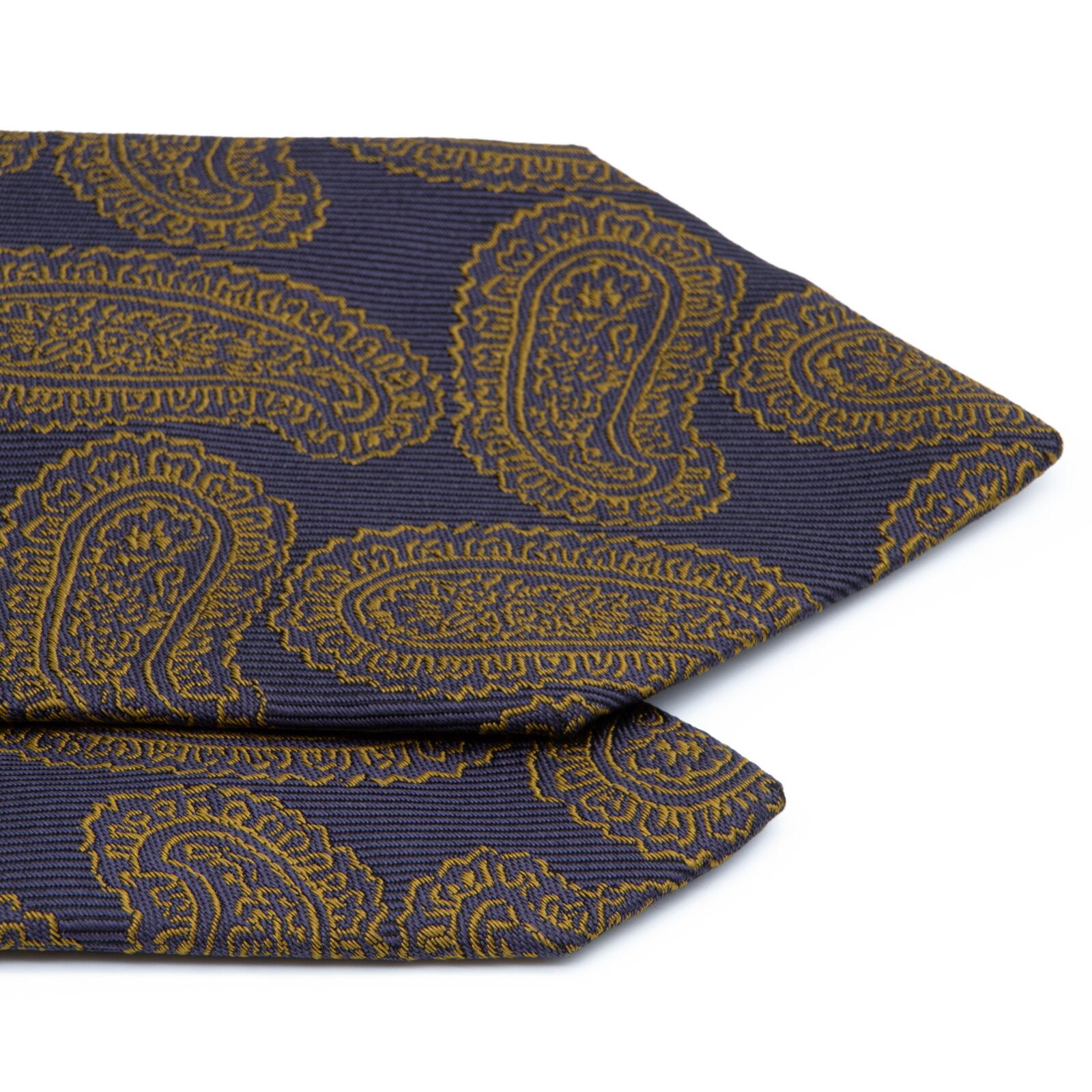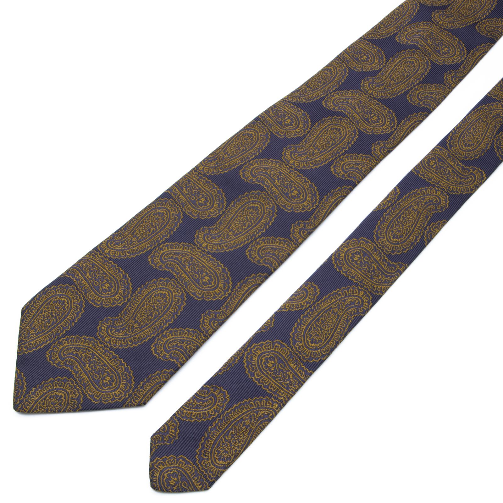 知的で、落ち着きのあるネイビーブルーの地に、成功の象徴であるペイズリーが、大変力強く、そして豪華に描かれております。