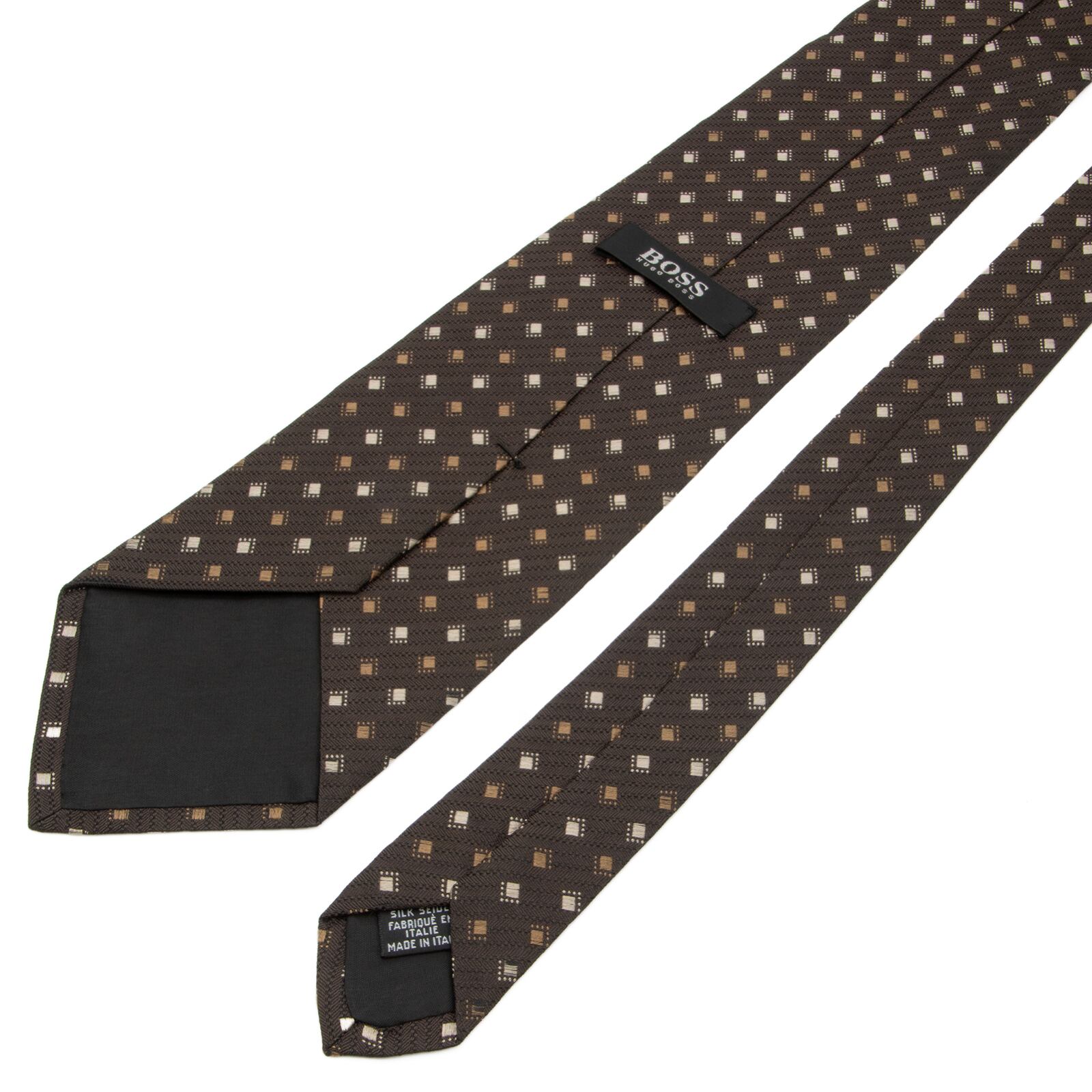 送料無料 ヒューゴボス ネクタイ ジャガードタイ 新品同様 シルク 茶色 ブラウン ベージュ ビジネス 四角 ブランド イタリア製 綺麗 P217