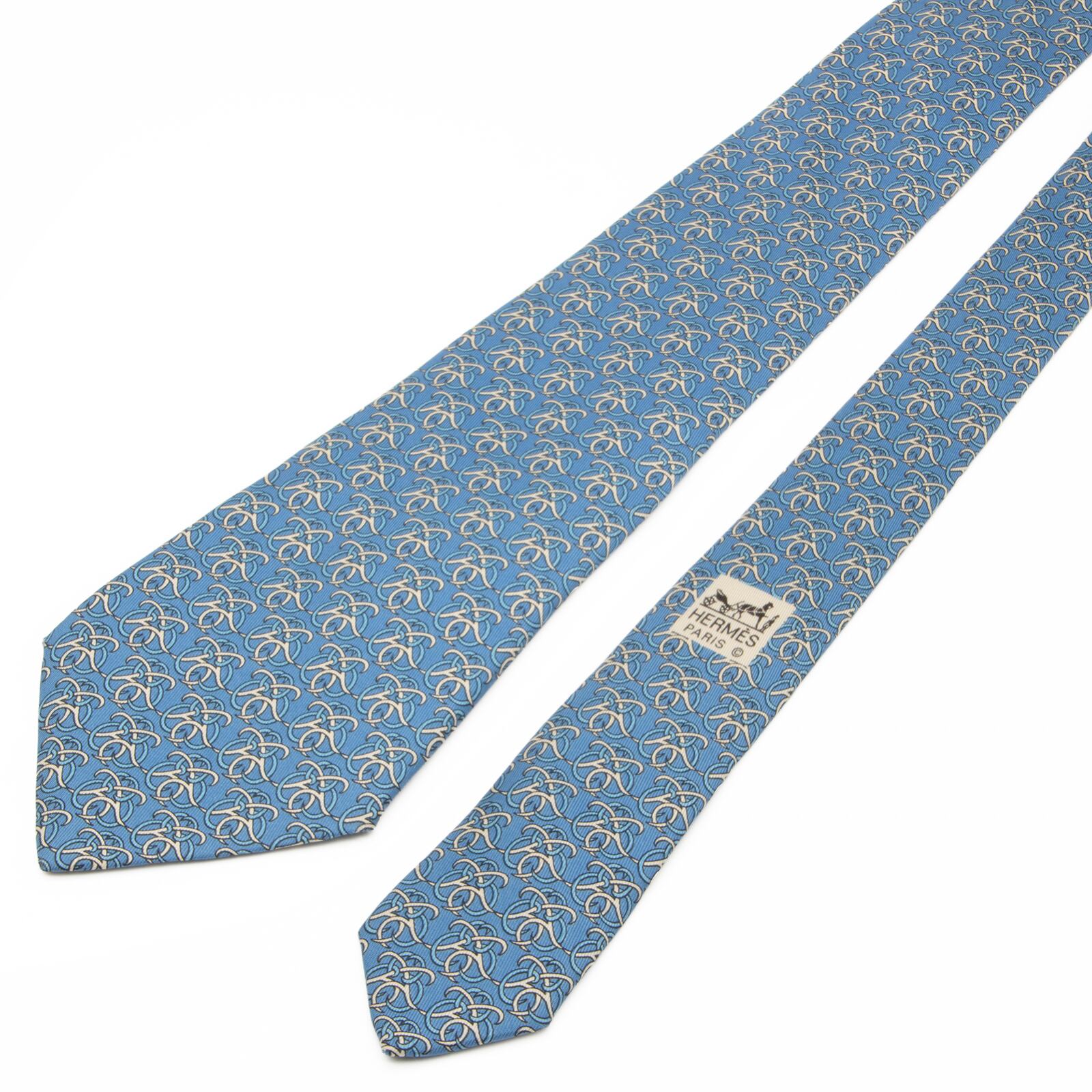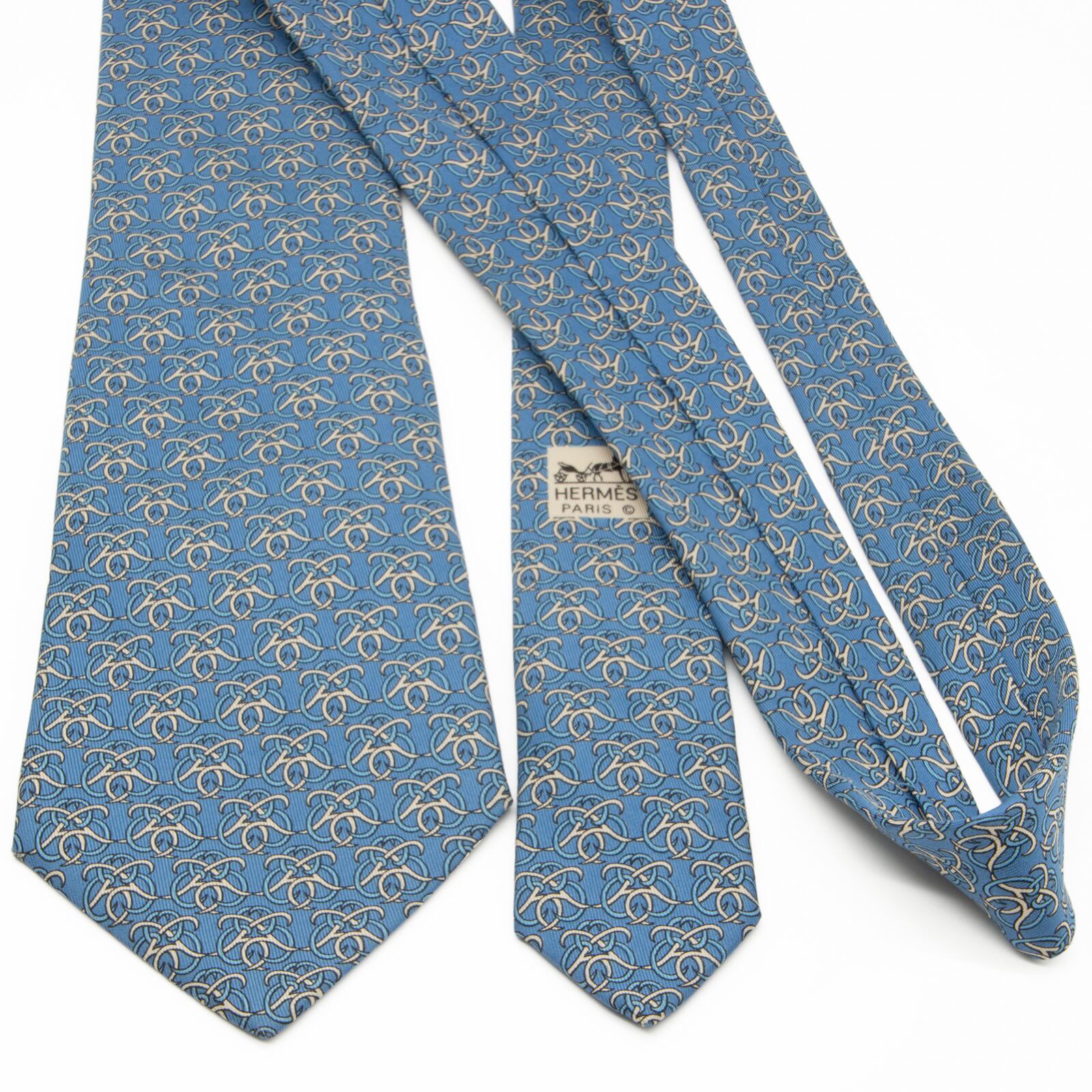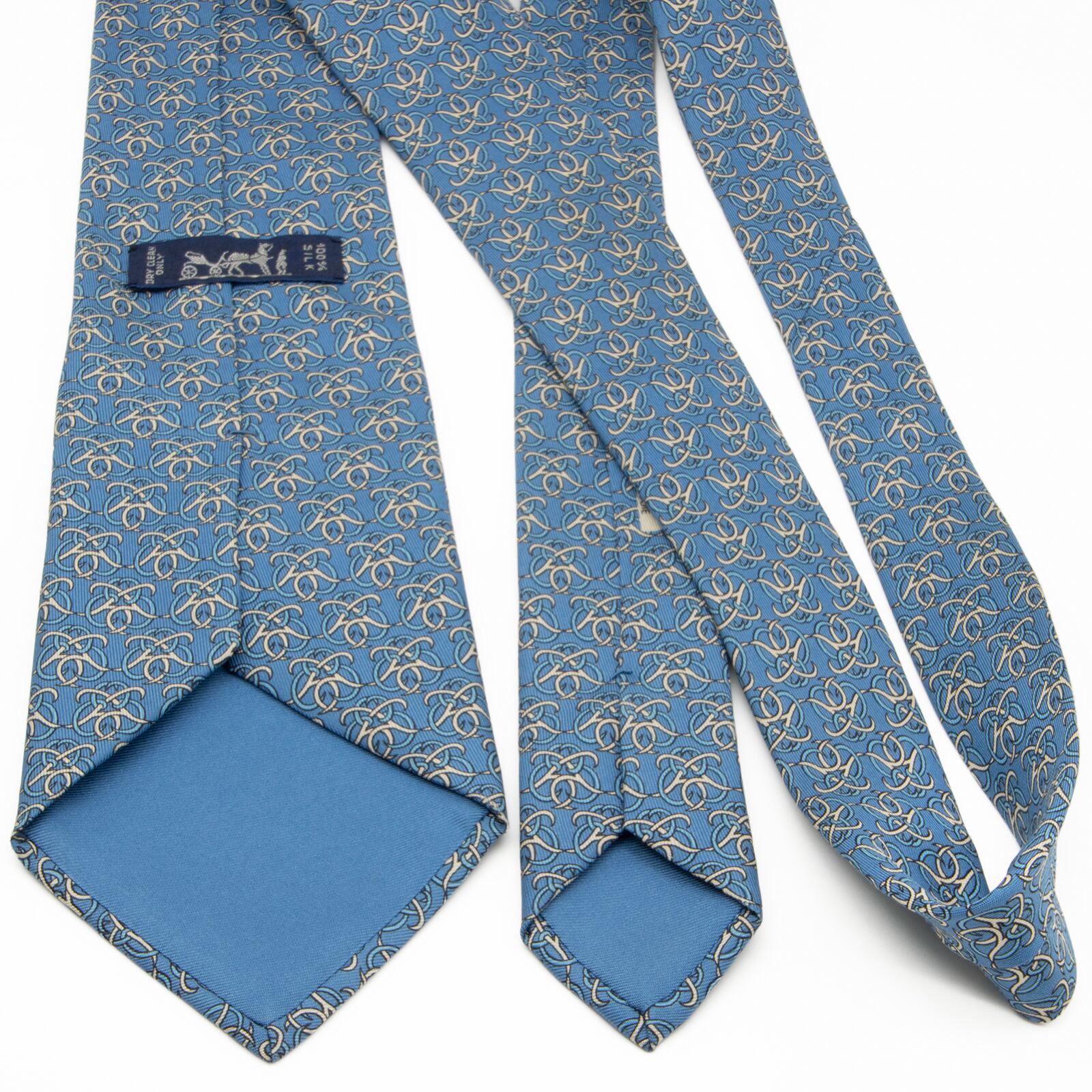 送料無料 エルメス ネクタイ シルク 青 ブルー 白 オフホワイト ビジネス カジュアル 総柄 ブランド 珍しい おしゃれ フランス製 綺麗 P223