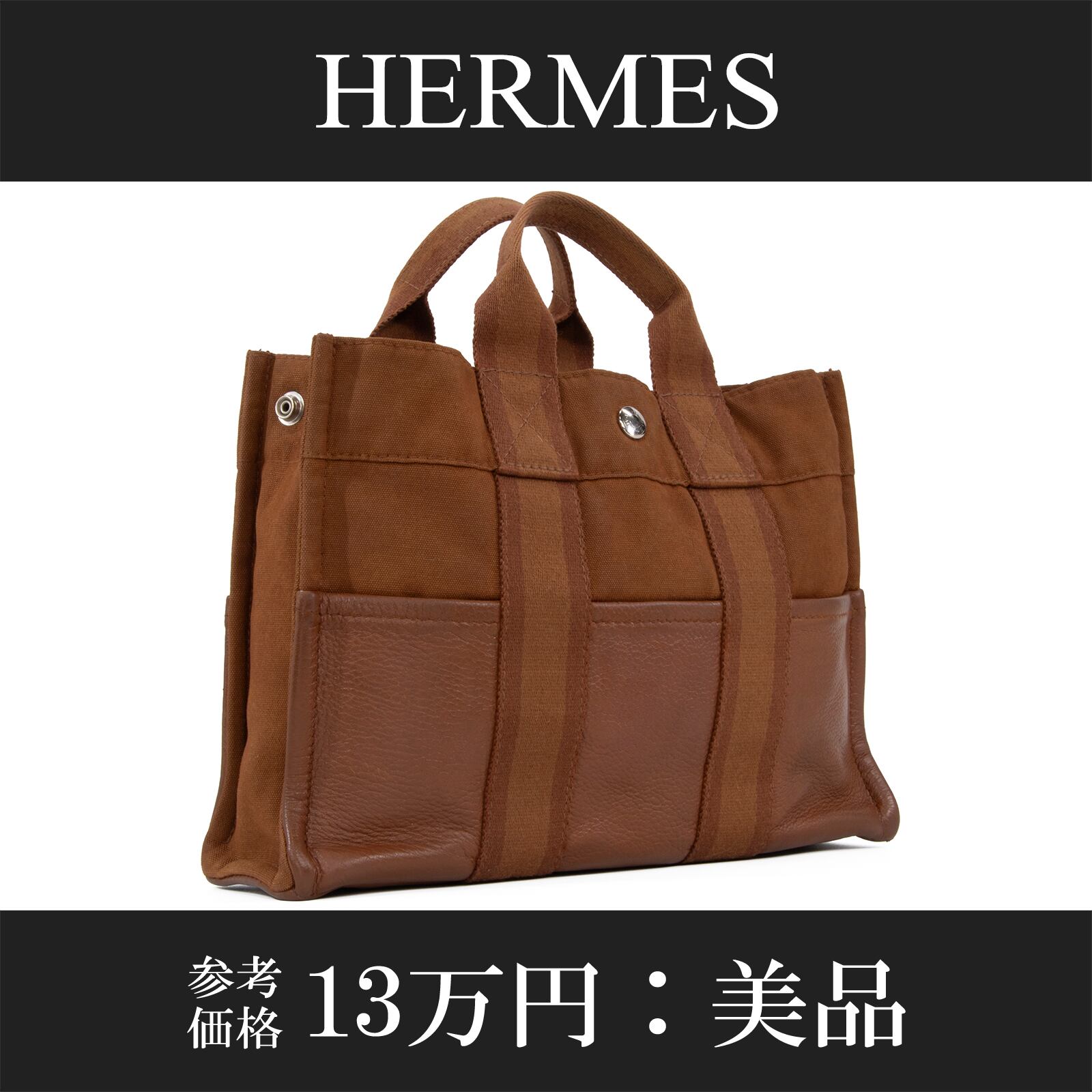 本物 送料無料 エルメス ハンドバッグ トートバッグ メンズ レディース フールトゥPM ハーフレザー 茶色 ロゴ マーク 鞄 バック 綺麗 B295