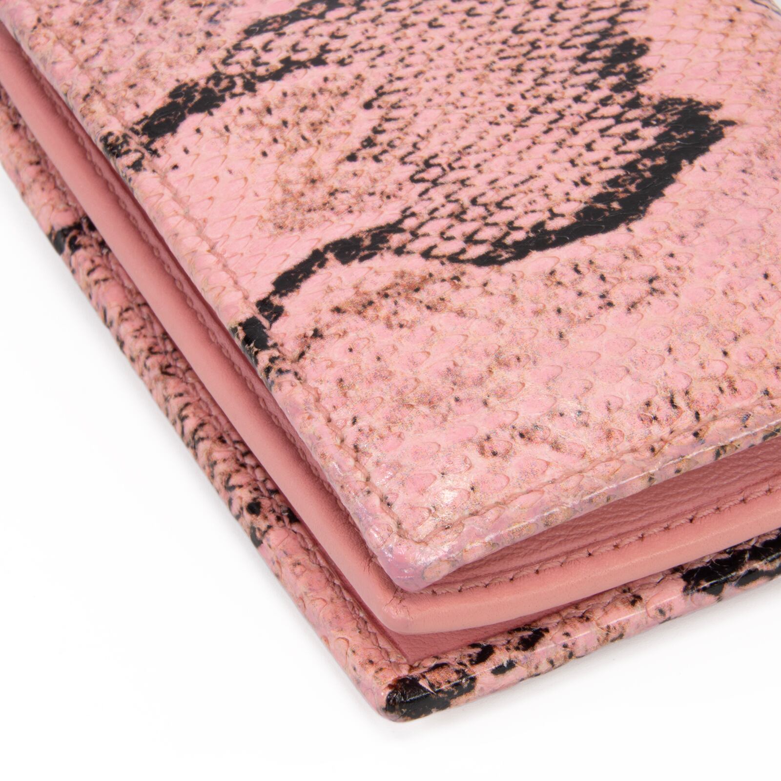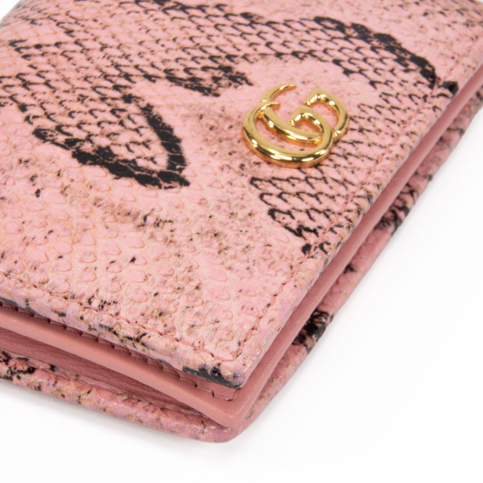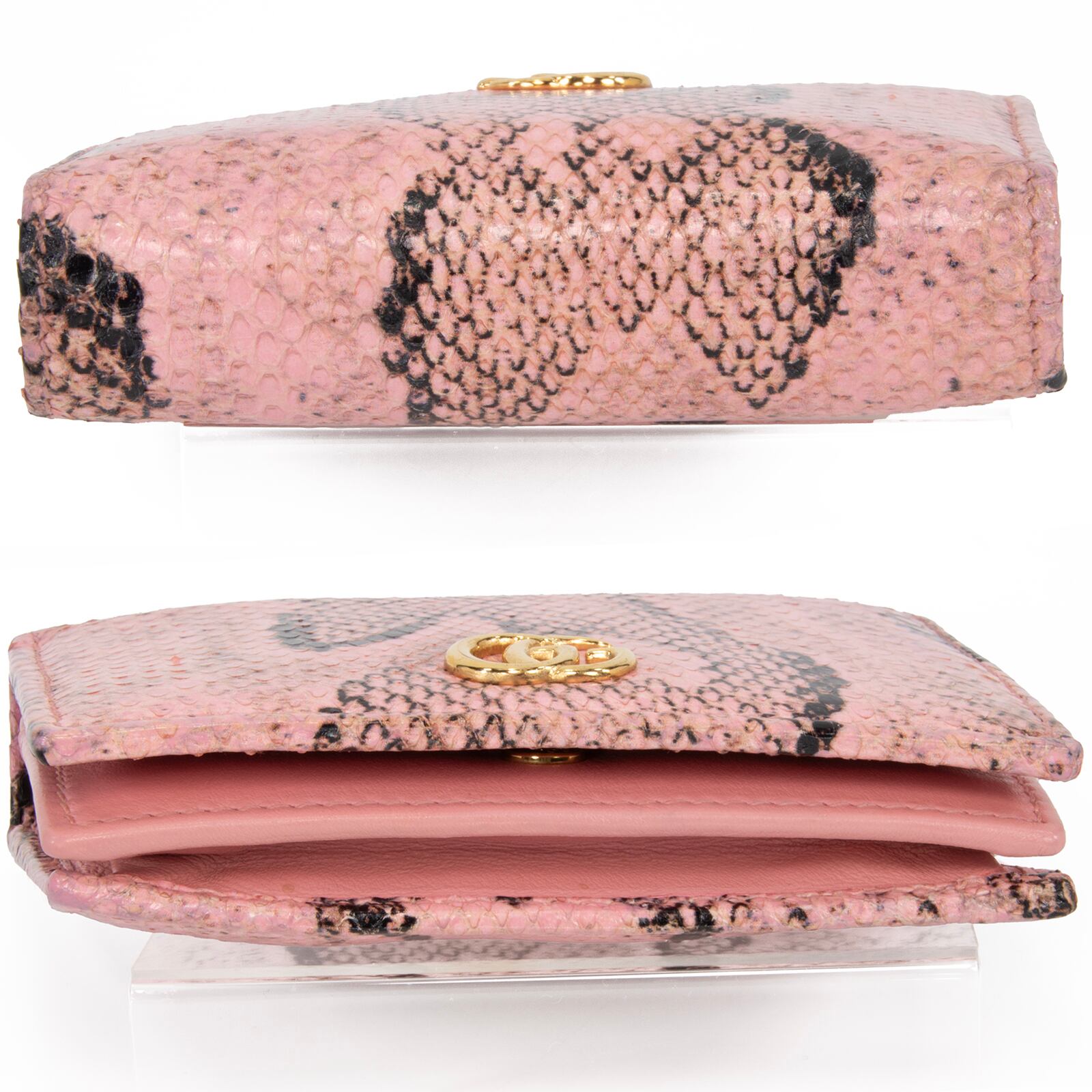 本物 送料無料 グッチ 二つ折り 短財布 レディース パイソン GGマーモント ピンク 黒 革 エキゾチックレザー ミニ 小さい ロゴ マーク D190