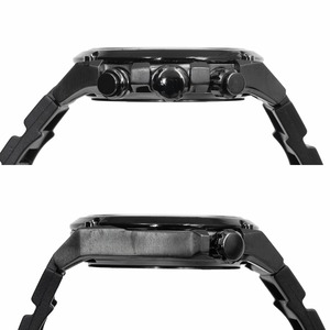 オールブラックで統一された、その精悍でスポーティーな佇まいは、腕元から力強い男らしさを演出いたします。