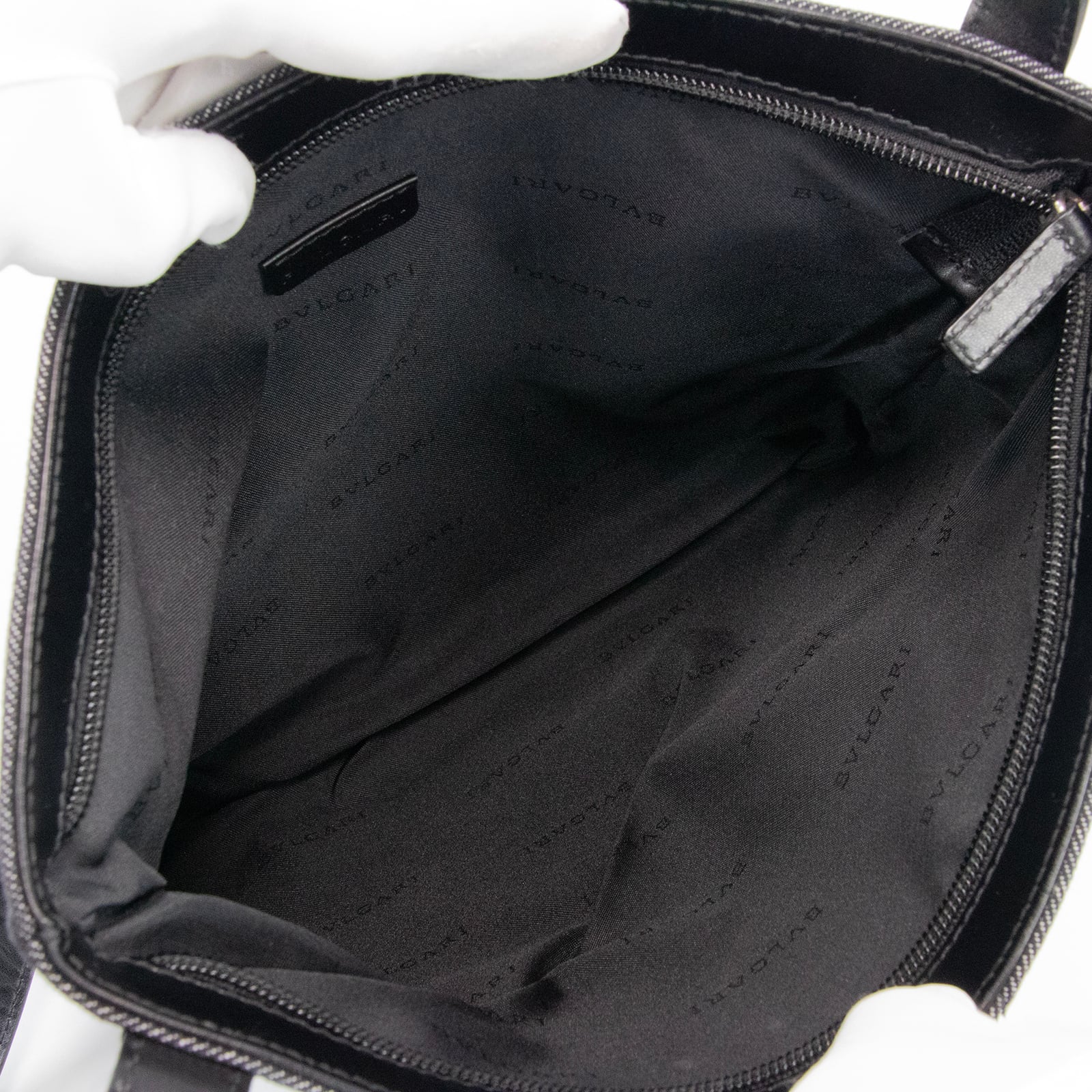 こちらはブランドの特徴が全面にデザインされました、ブルガリのショルダーバッグでございます。