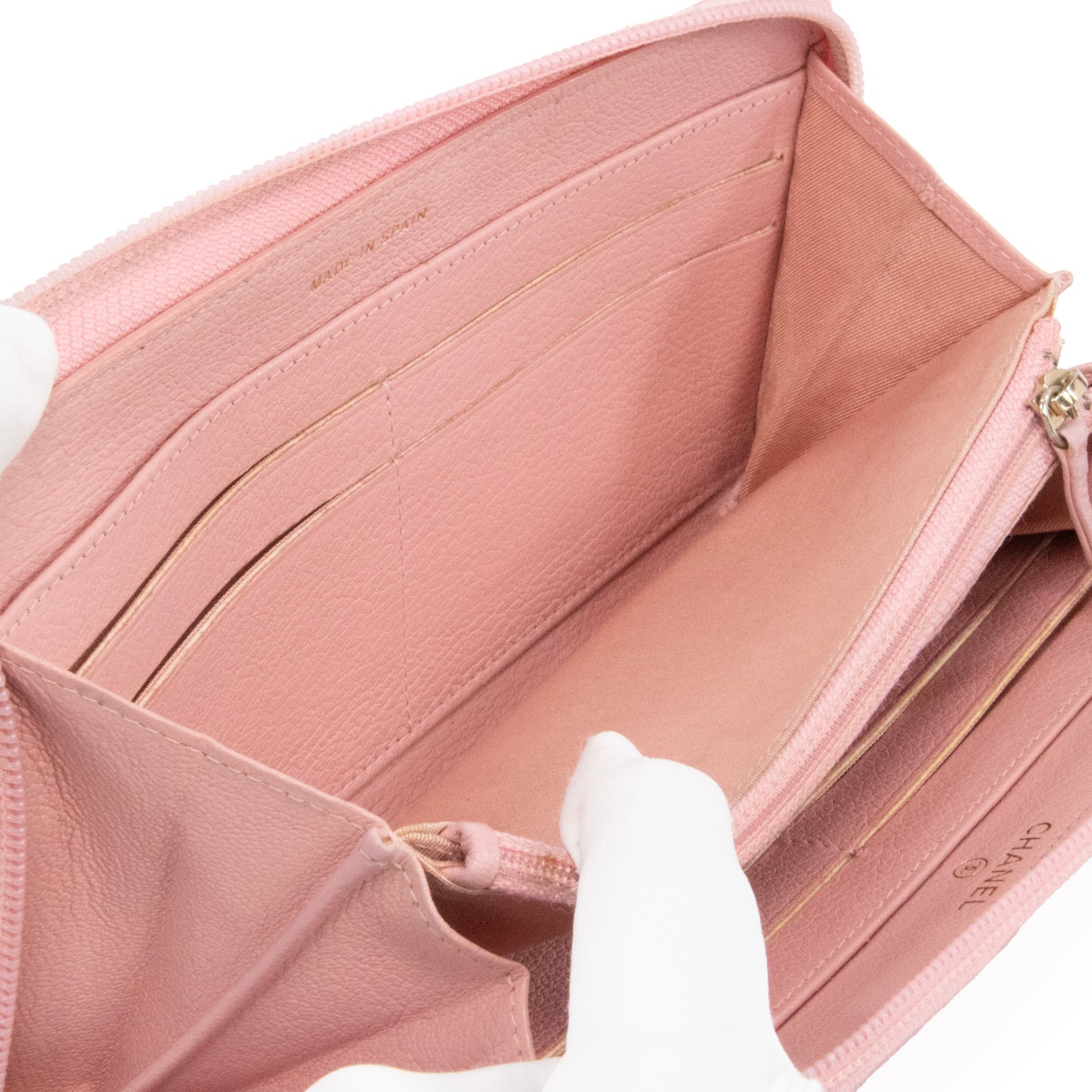 本物 送料無料 シャネル 長財布 ラウンドファスナー ジップタイプ レディース ピンク 特大CCロゴ ココマーク ゴールド金具 かわいい G111
