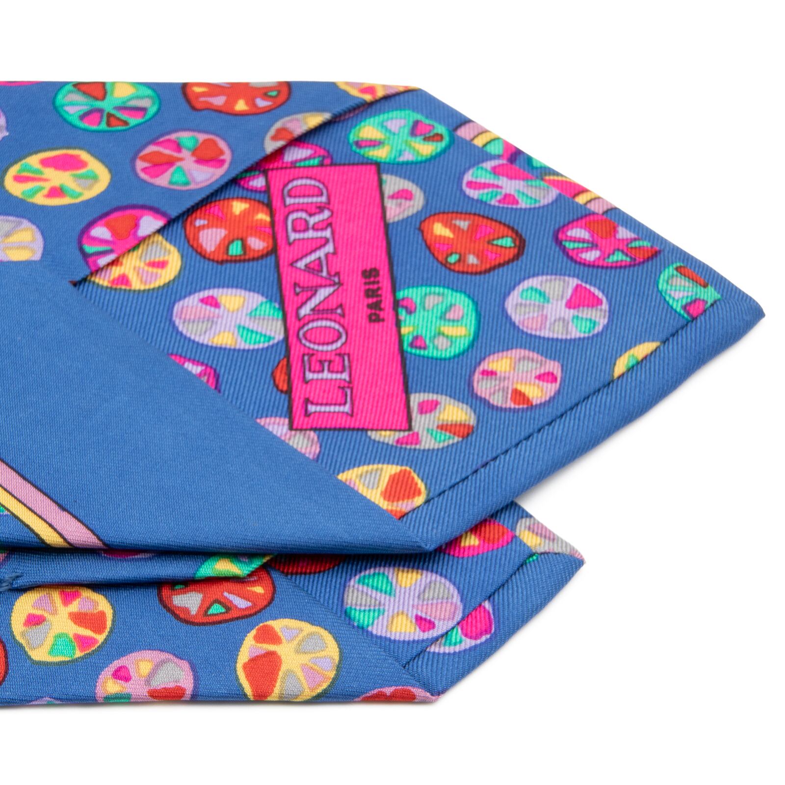 送料無料 レオナール ネクタイ レギュラータイ 新品 シルク 青 ブルー 赤 黄色 紫 青緑 サークル 果物 カラフル ブランド イタリア製 N791