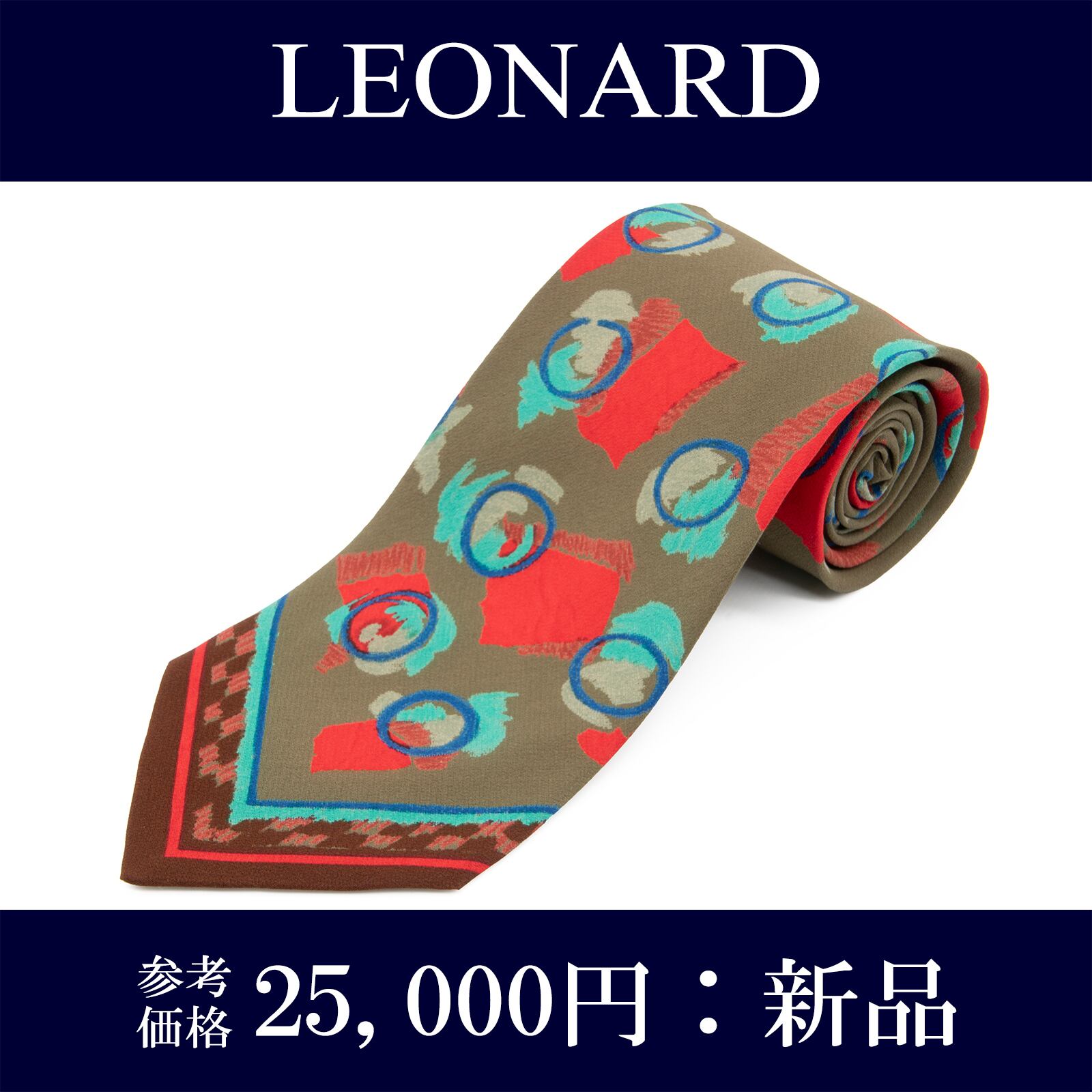送料無料 レオナール ネクタイ レギュラータイ 新品 シルク グレーグリーン 赤 青 水色 グレーベージュ 茶色 ブランド イタリア 綺麗 N805