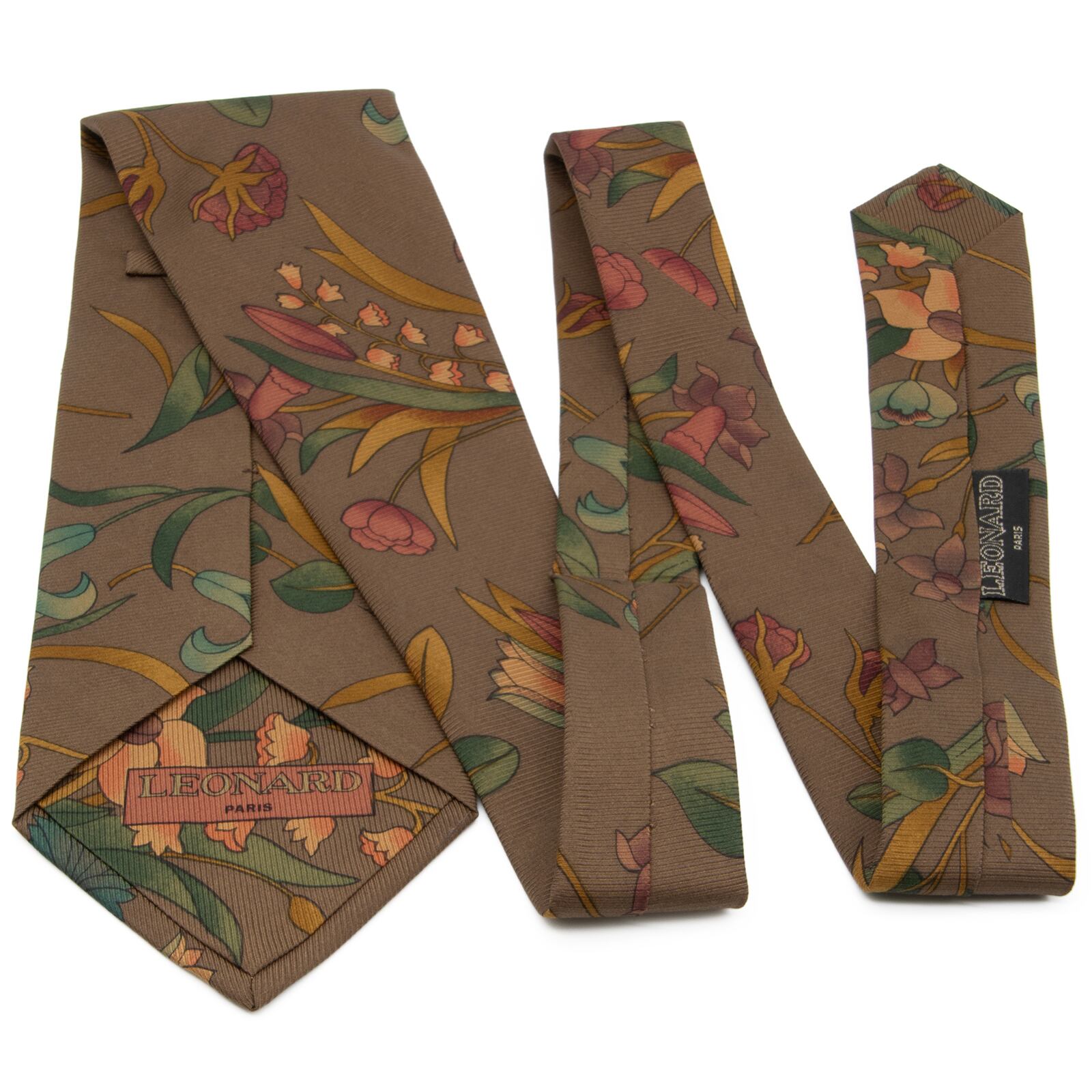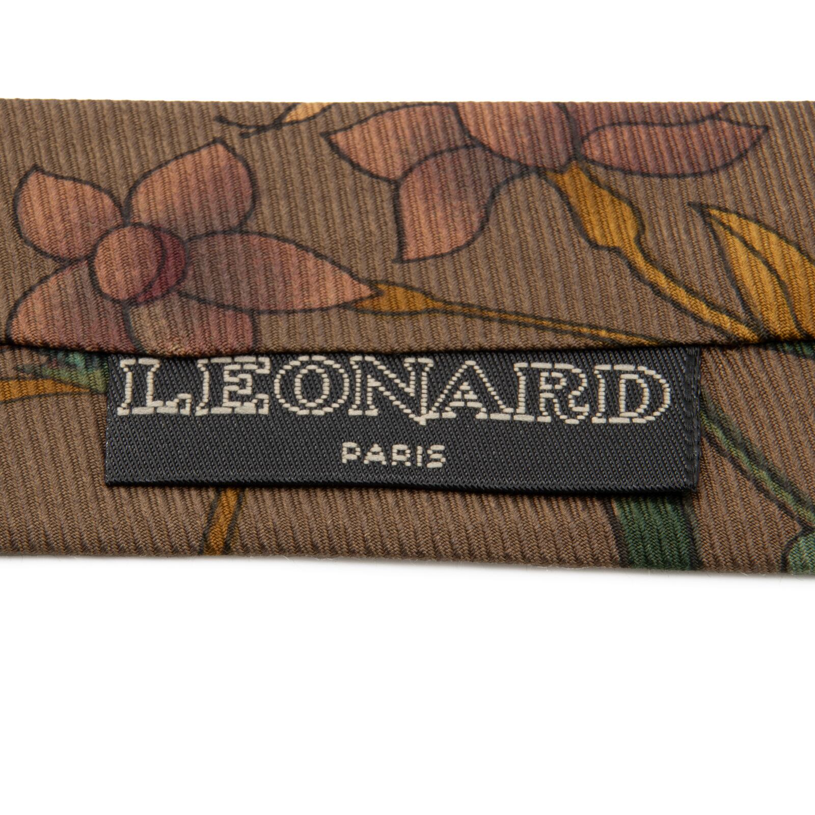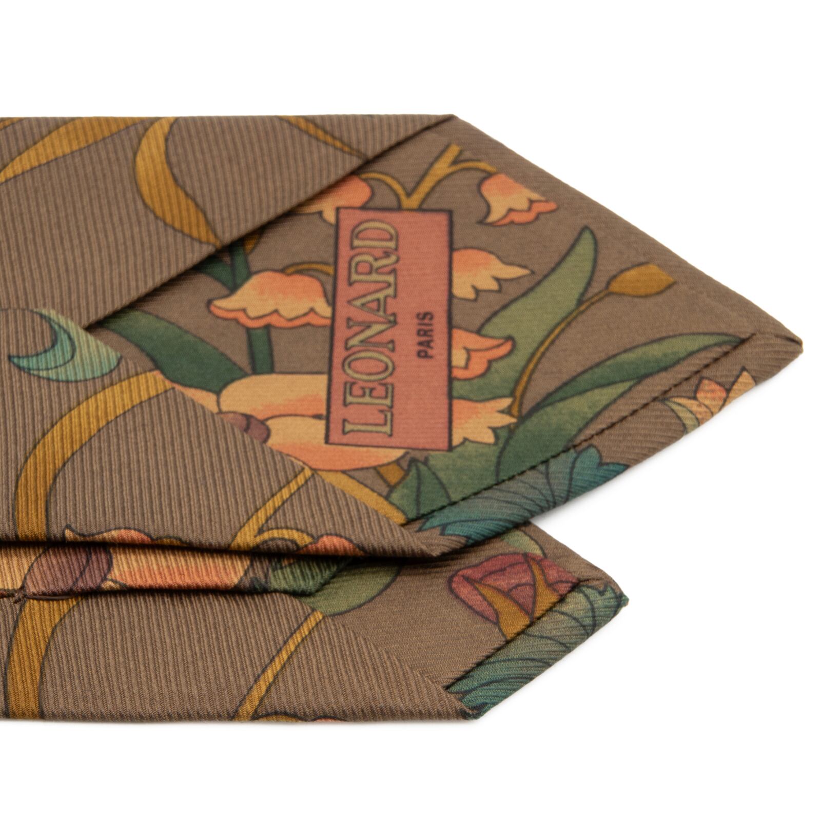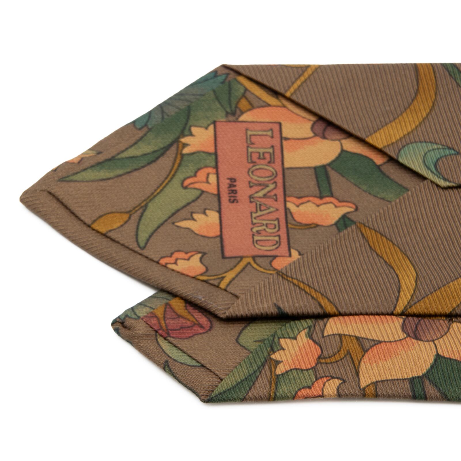 送料無料 レオナール ネクタイ レギュラータイ 新品 シルク 茶色 緑 黄土色 紫 オレンジ 花 フラワー 葉 ブランド イタリア製 綺麗 N850