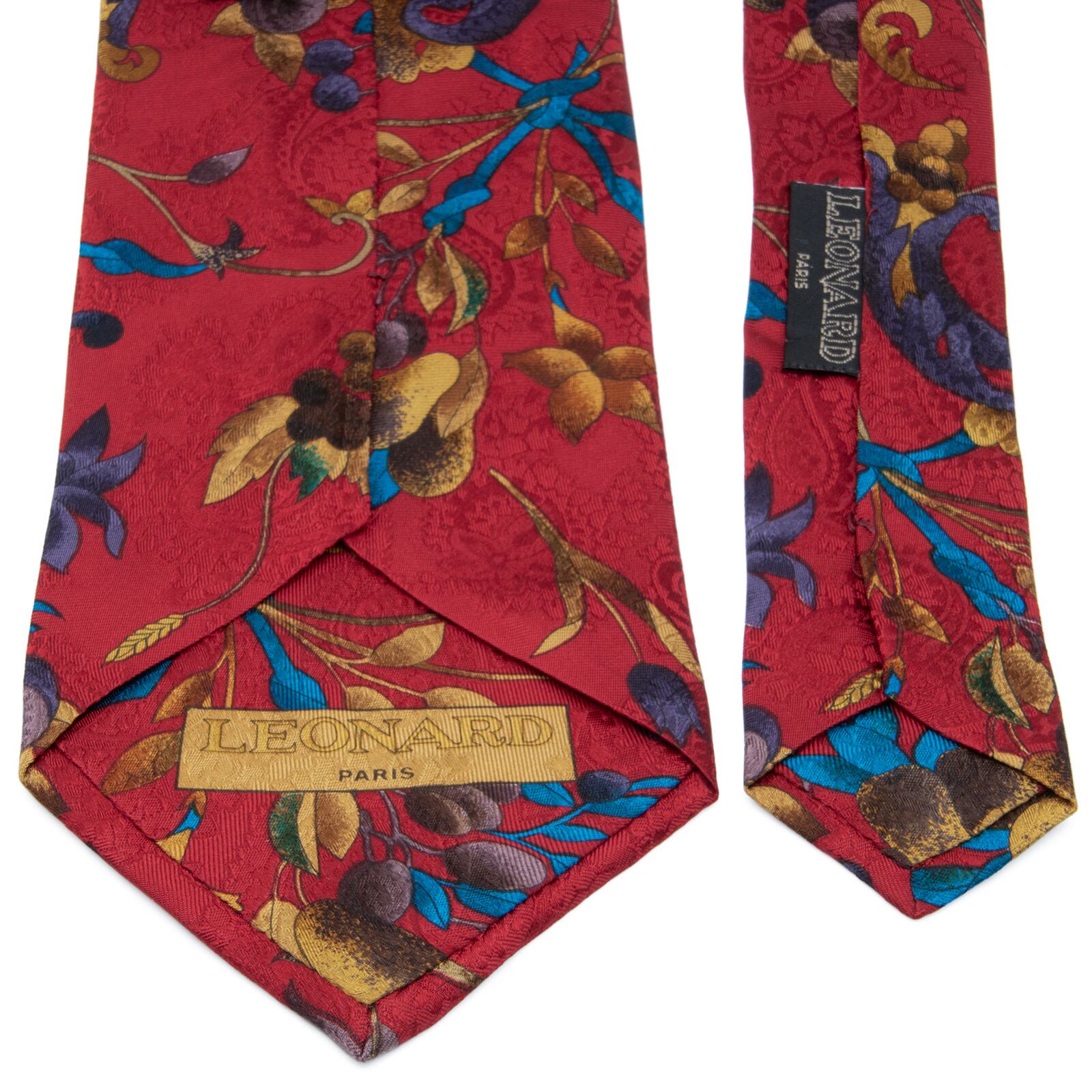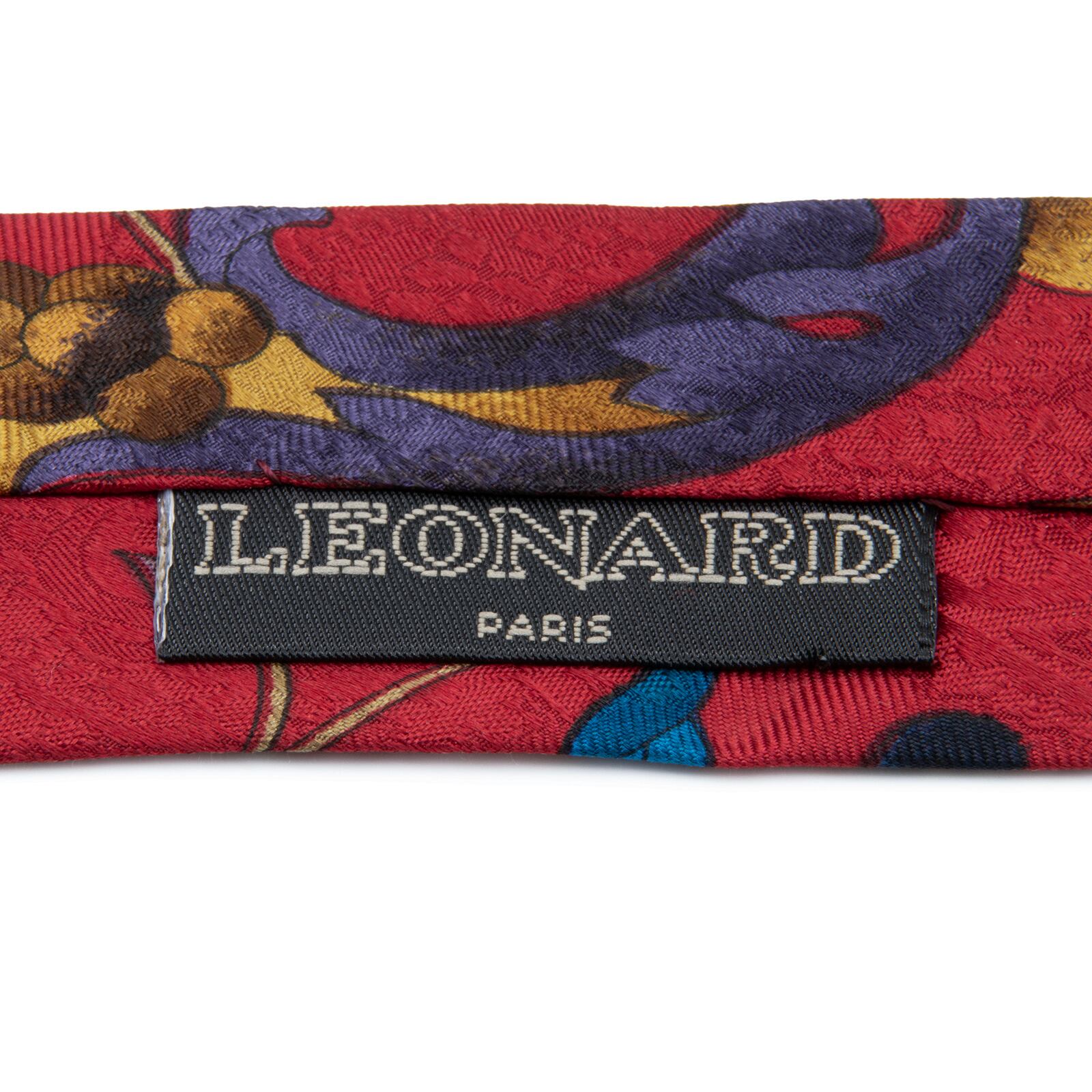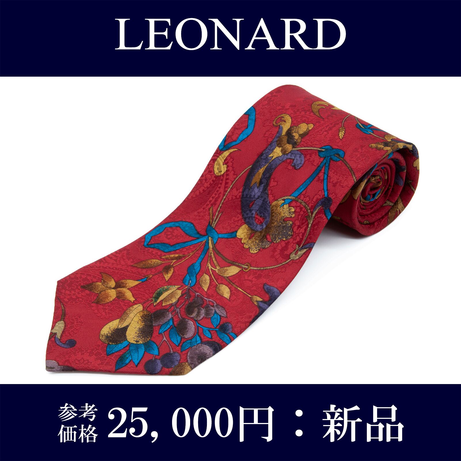 送料無料 レオナール ネクタイ レギュラータイ 新品 シルク 赤 ゴールド 青 茶色 紫 ペイズリー 花 植物 光沢 ブランド イタリア製 N852