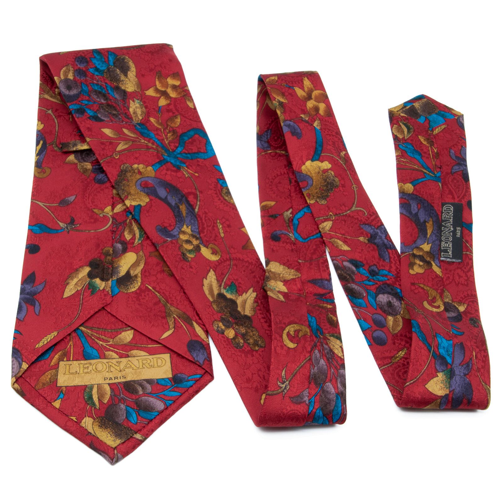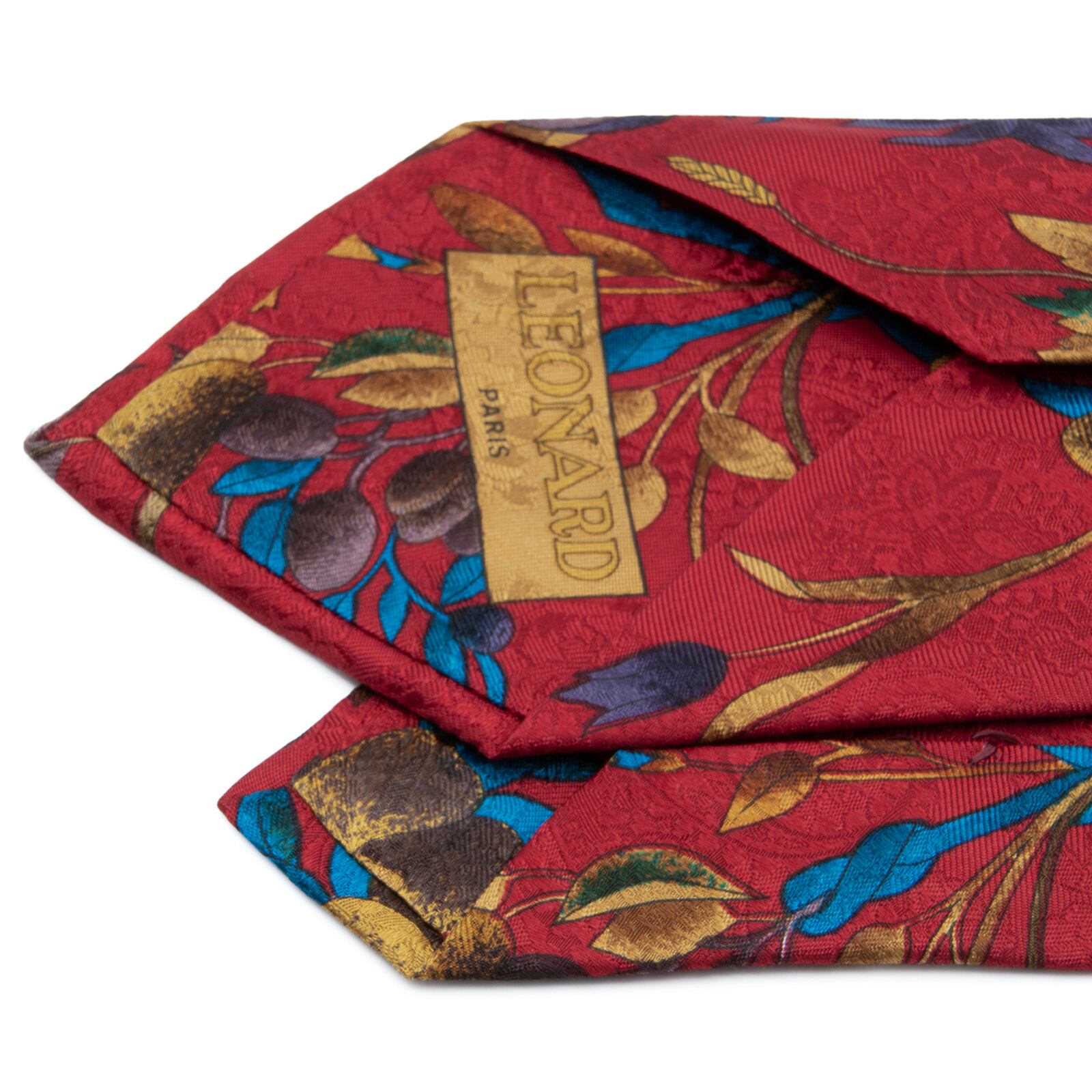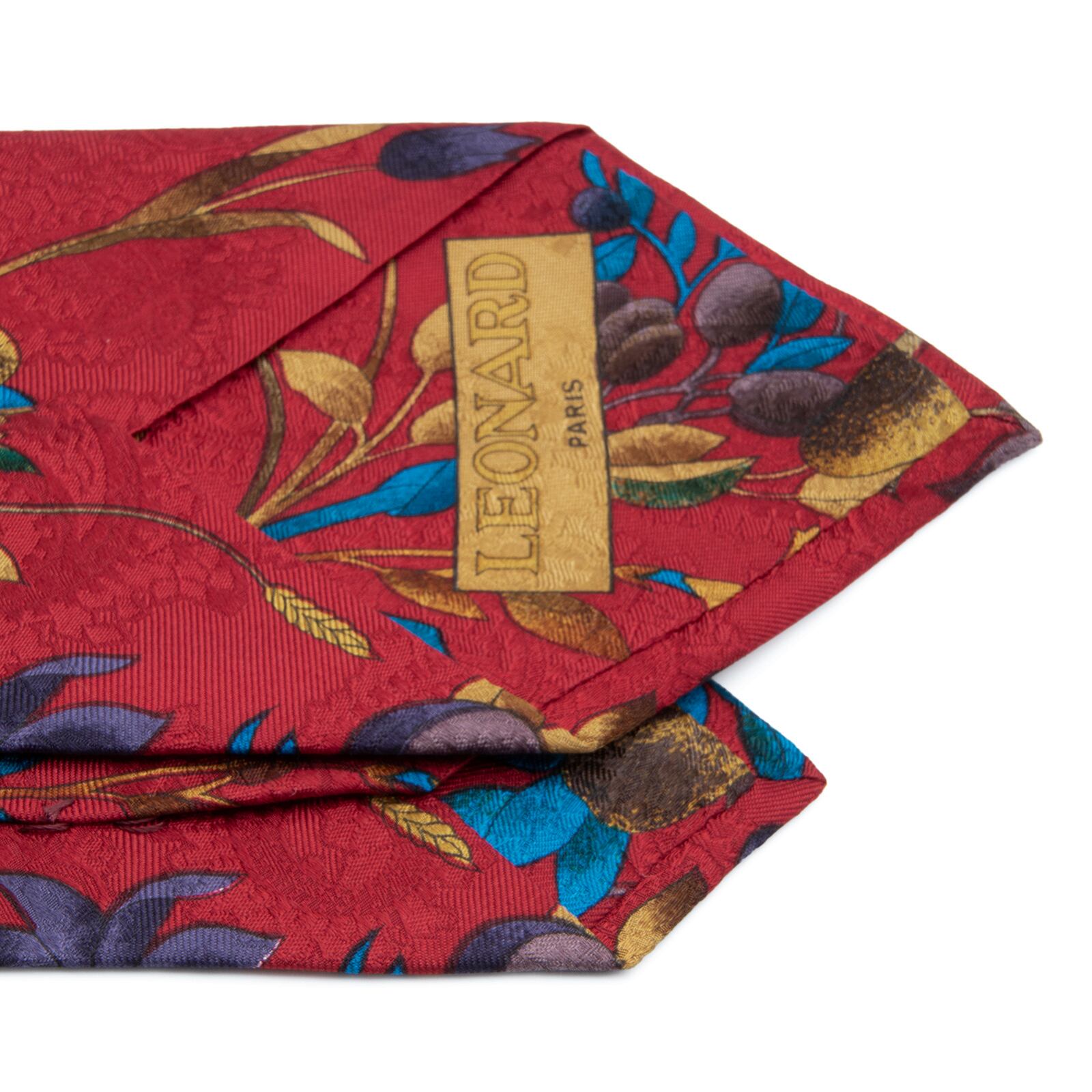 送料無料 レオナール ネクタイ レギュラータイ 新品 シルク 赤 ゴールド 青 茶色 紫 ペイズリー 花 植物 光沢 ブランド イタリア製 N852